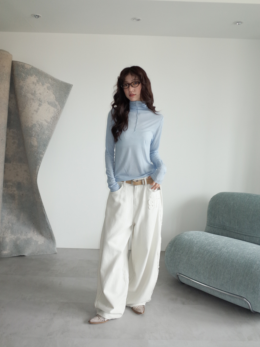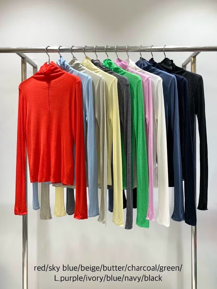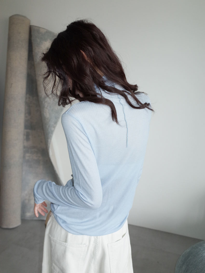 (11colors!) mock neck stitch line soft cotton top