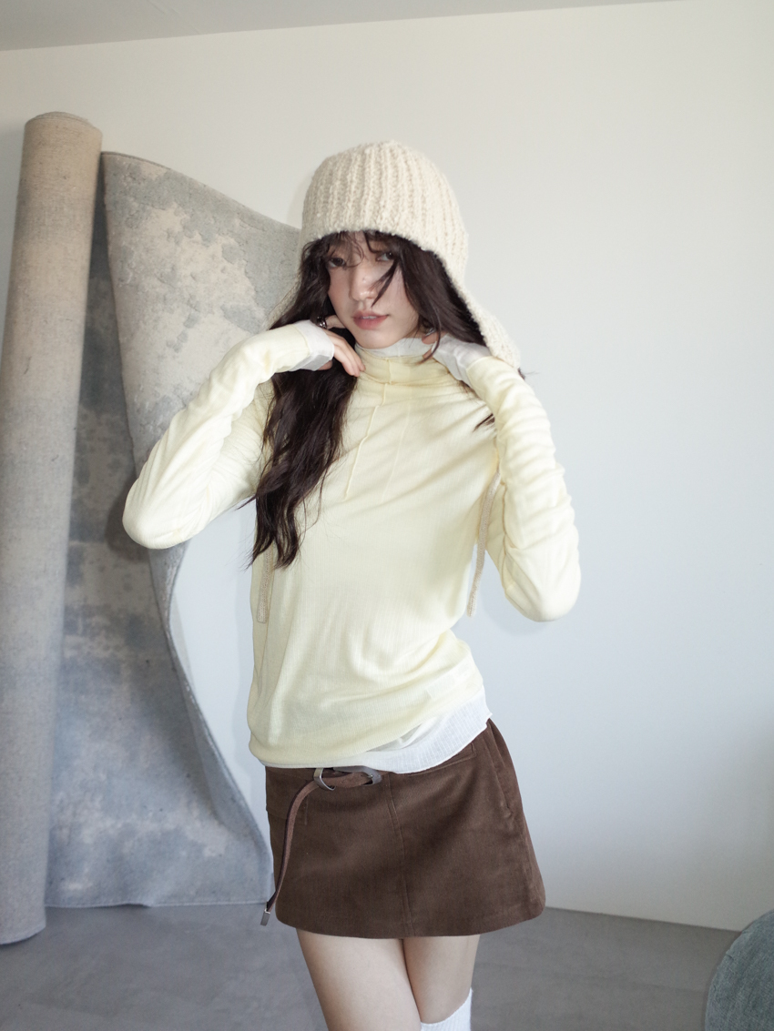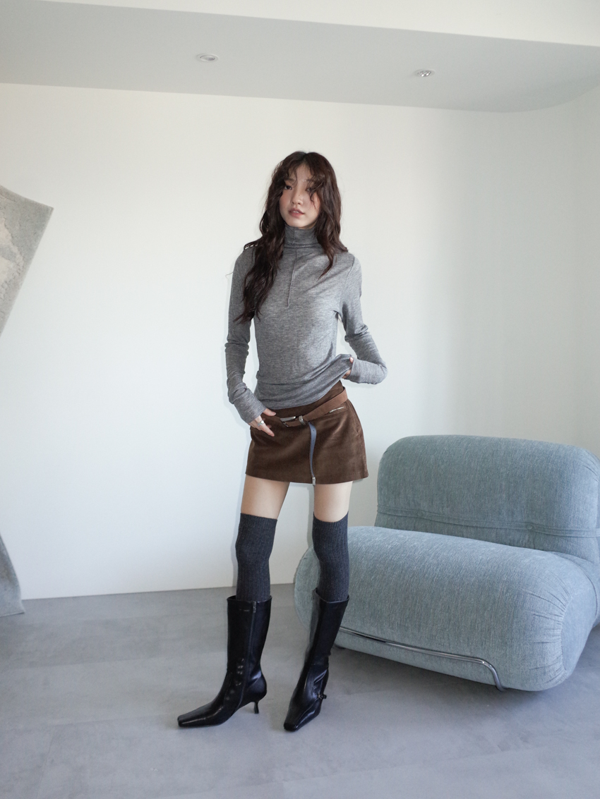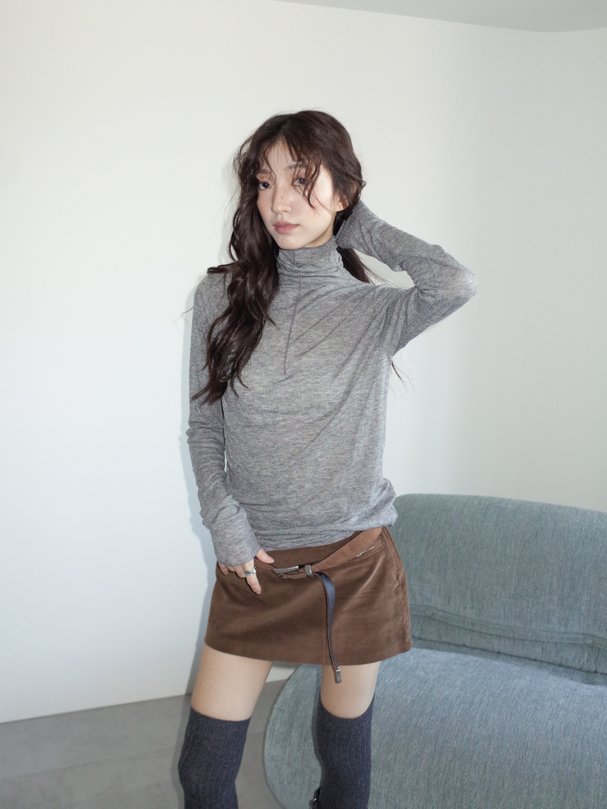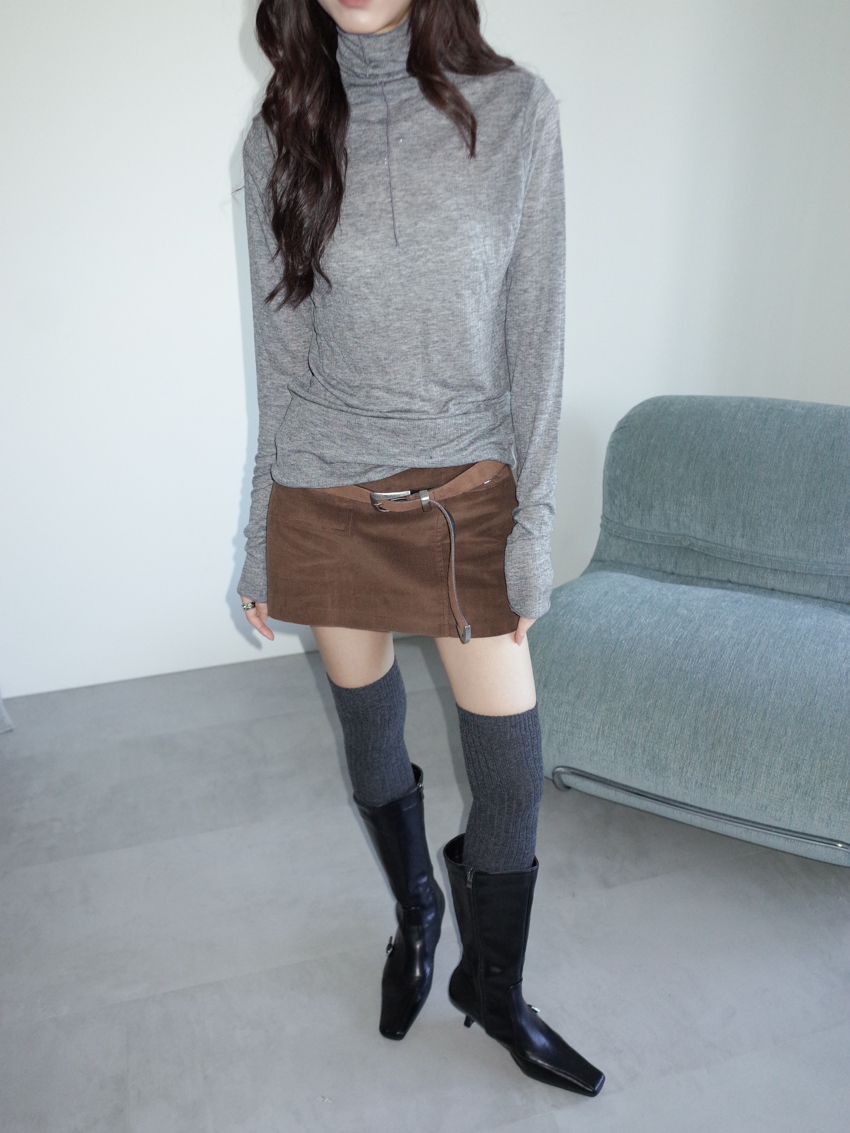 (11colors!) mock neck stitch line soft cotton top