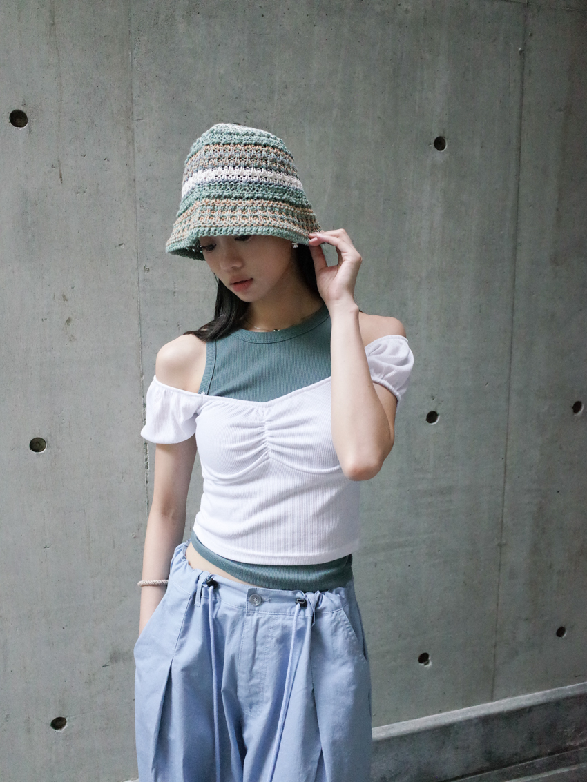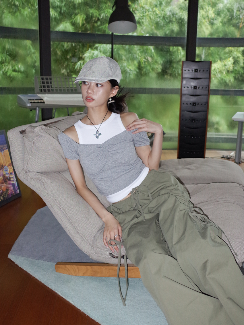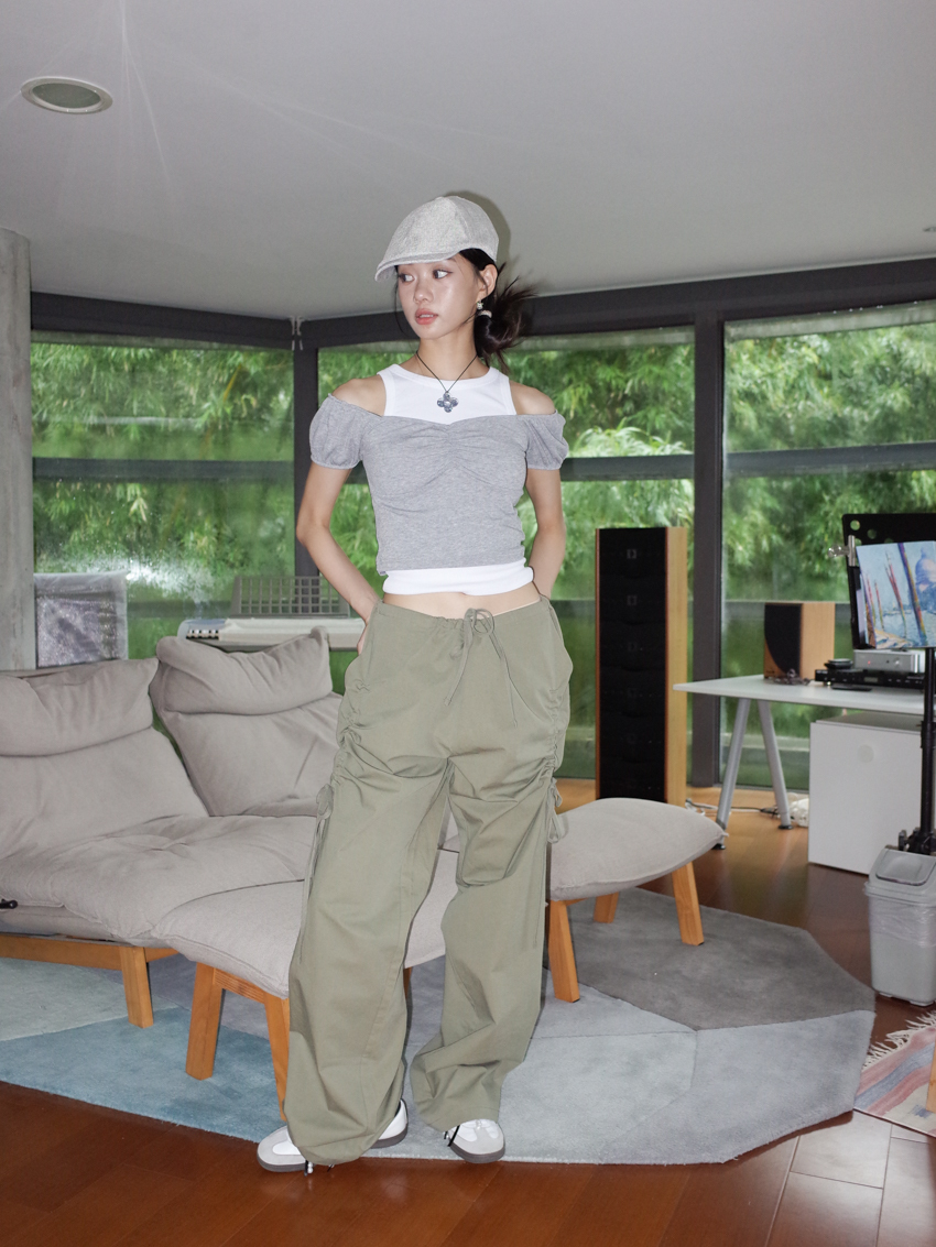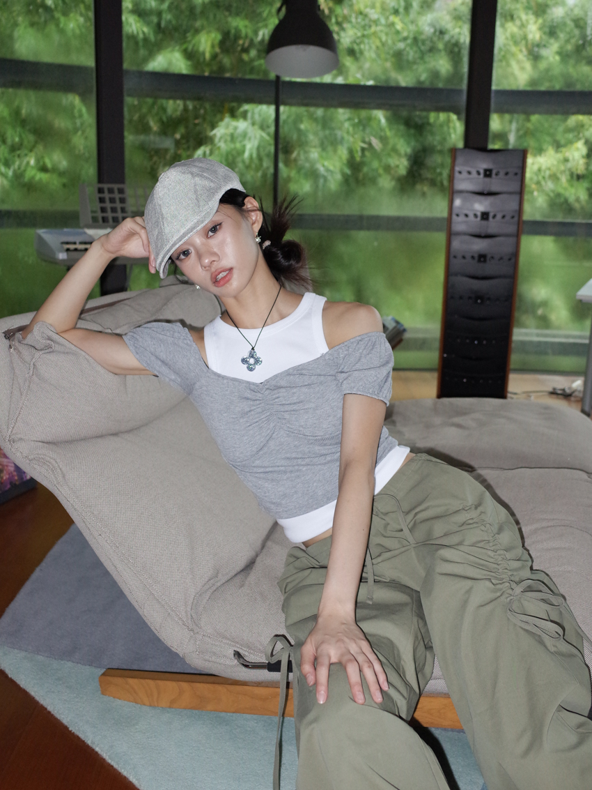 2way Bella ruched chest puffed sleeve top