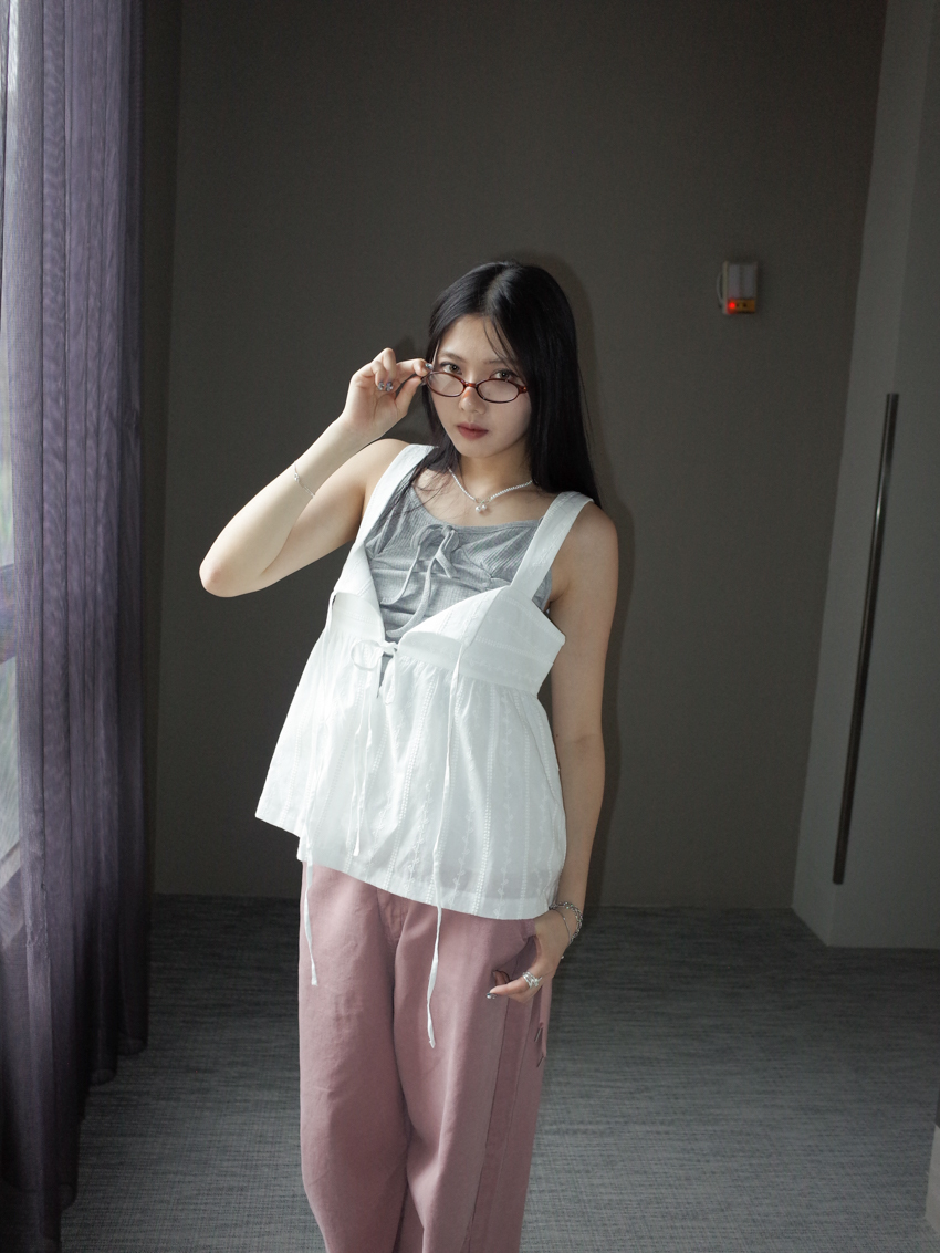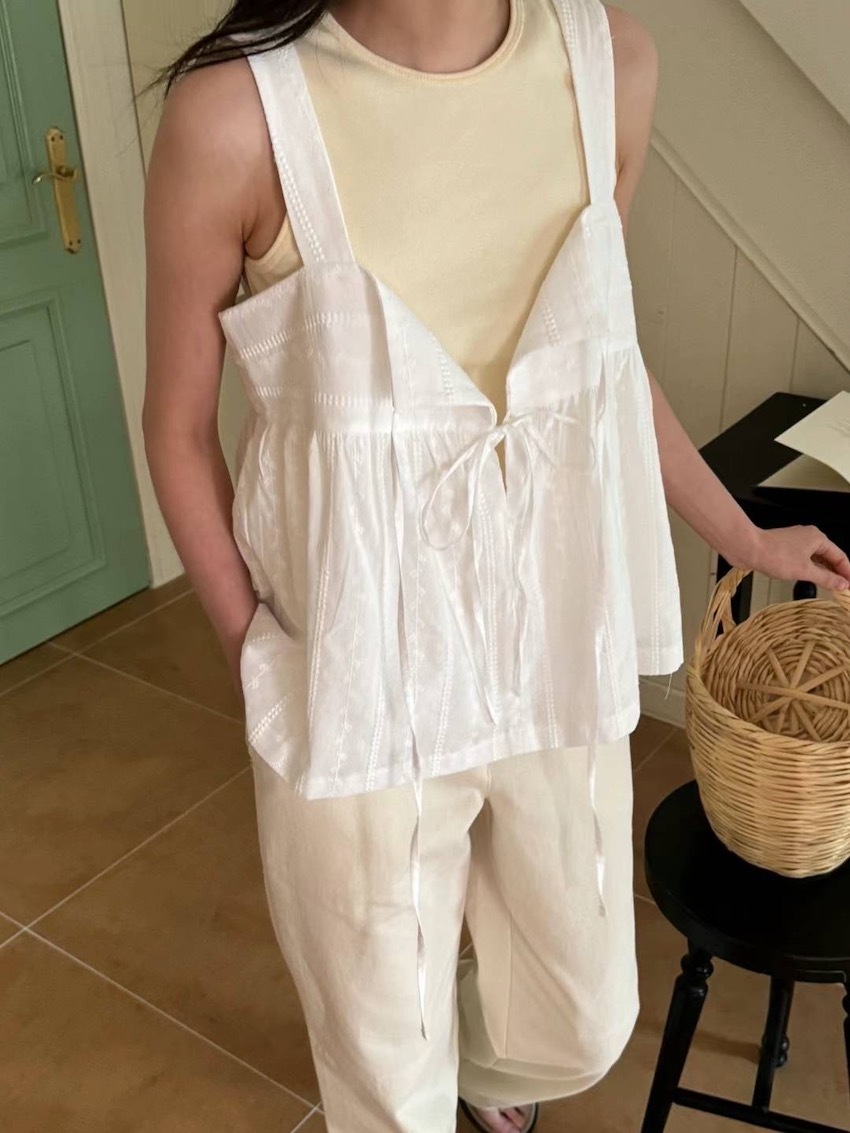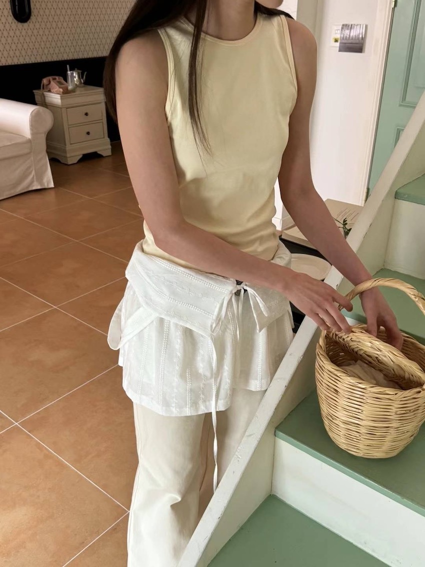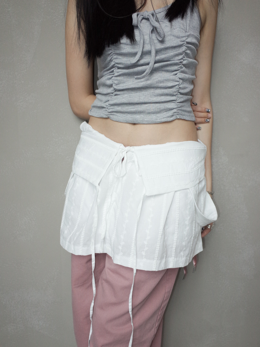 (2way) embroidered carved knotted vest/skirt