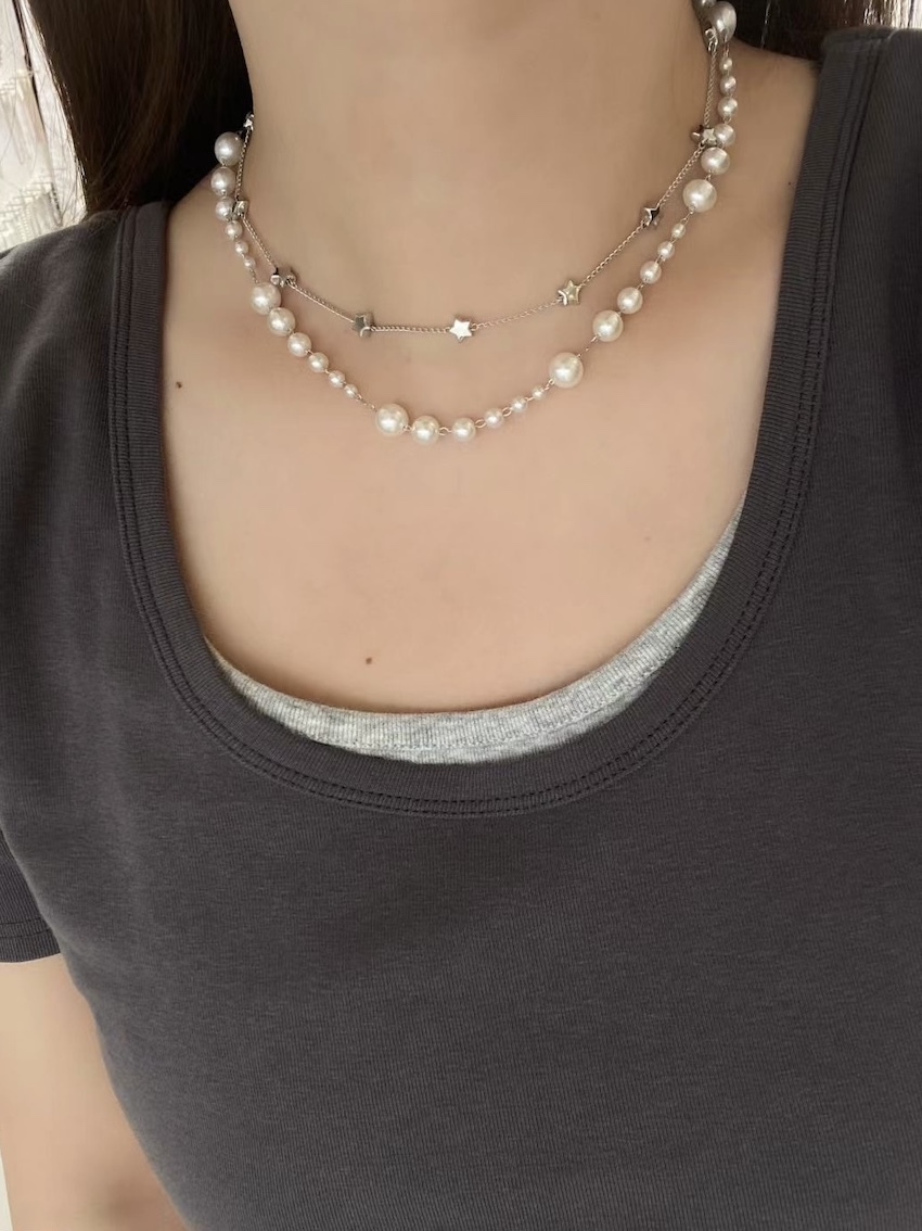 3-way pearl & star fine chain