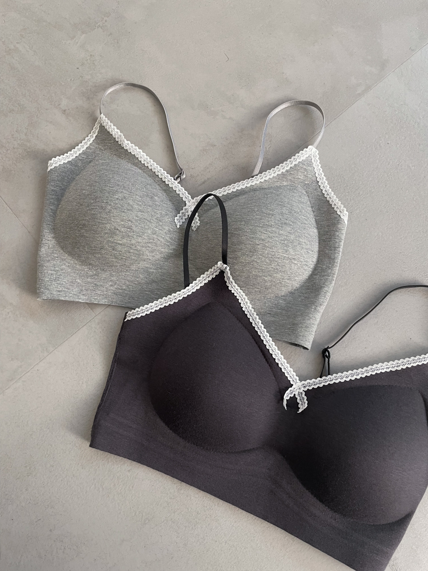 彈性大 透氣又綿柔舒適的面料 內裡U型提托罩杯 讓胸型自然飽滿 極細肩帶跟蕾絲滾邊好搭衣服 露出也不尷尬!包色自留大推薦!