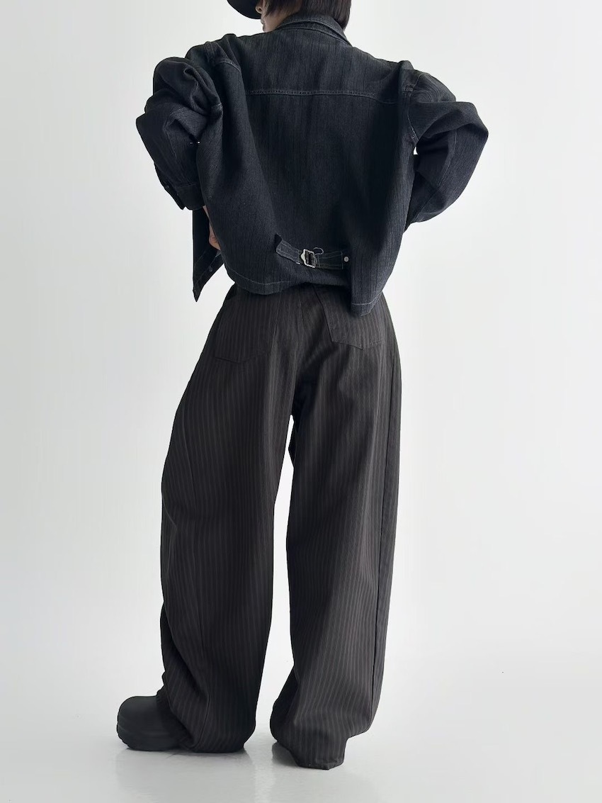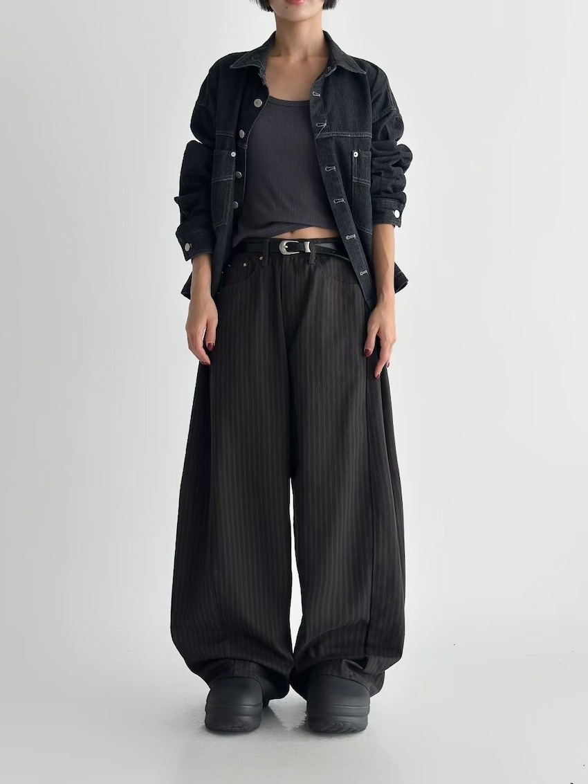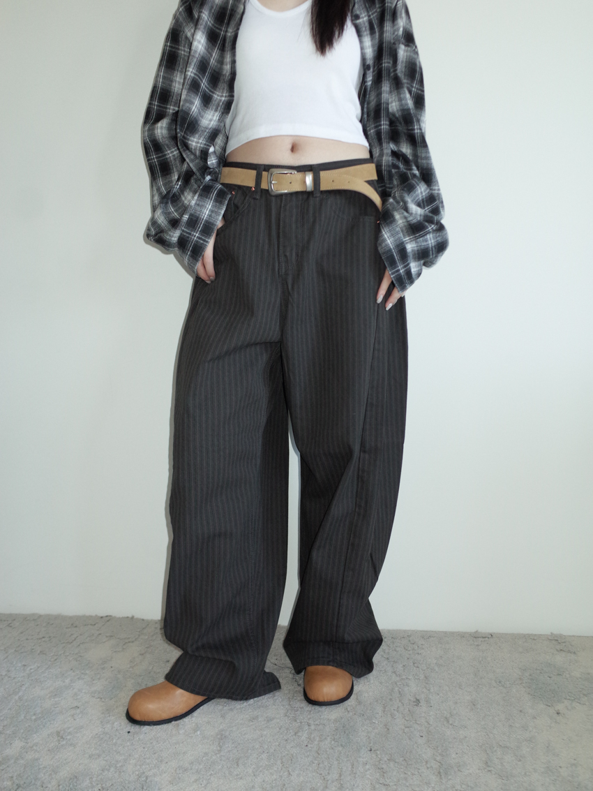 autumn-toned striped wide-leg trousersin BLACK