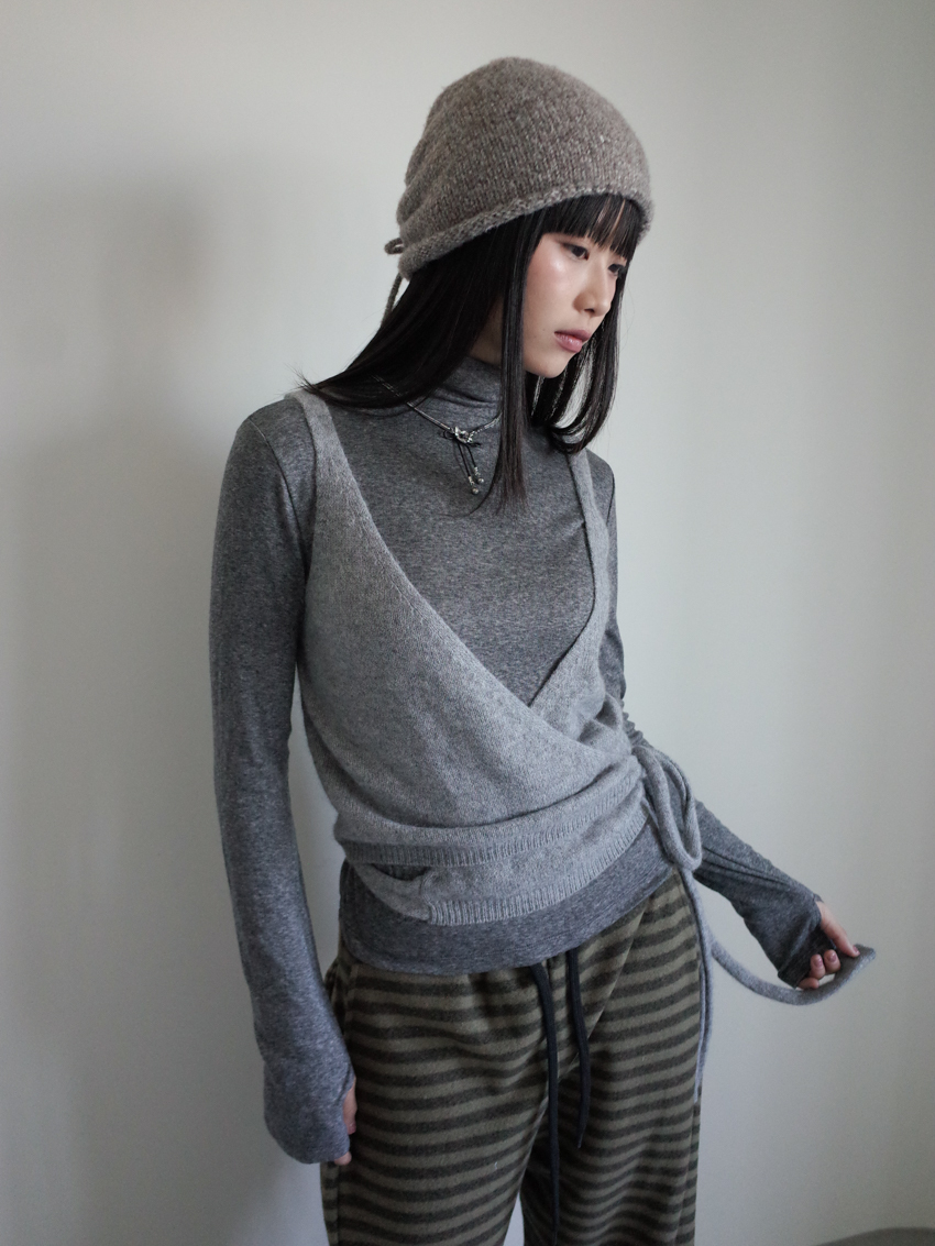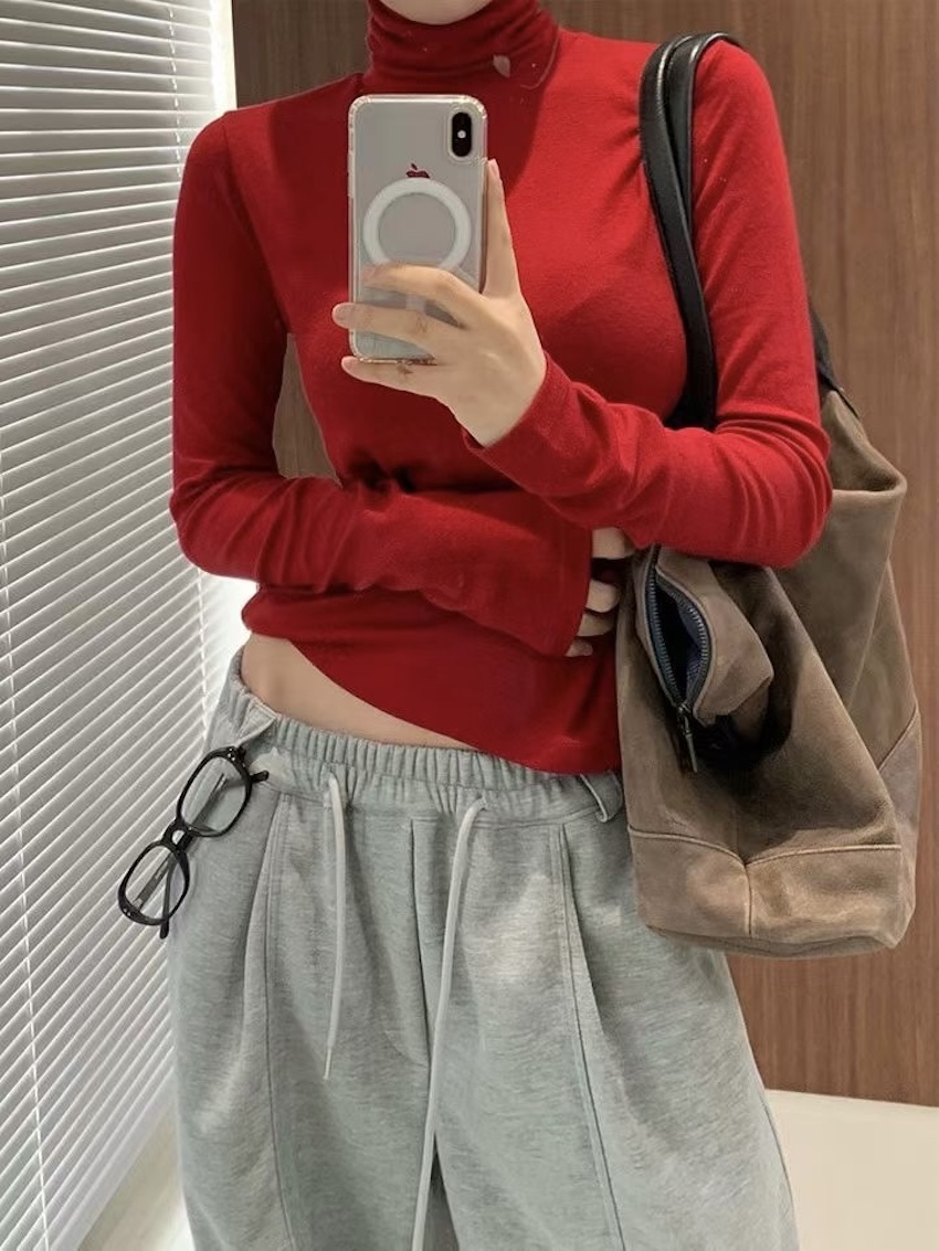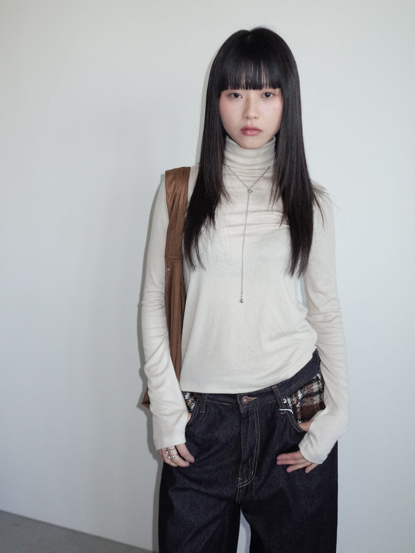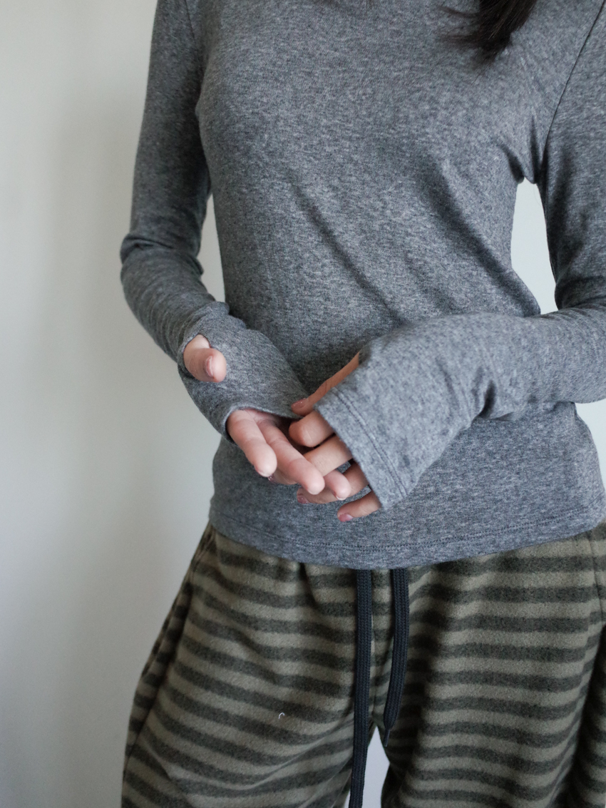 center seam tencel wool mock neck thumbhole base top