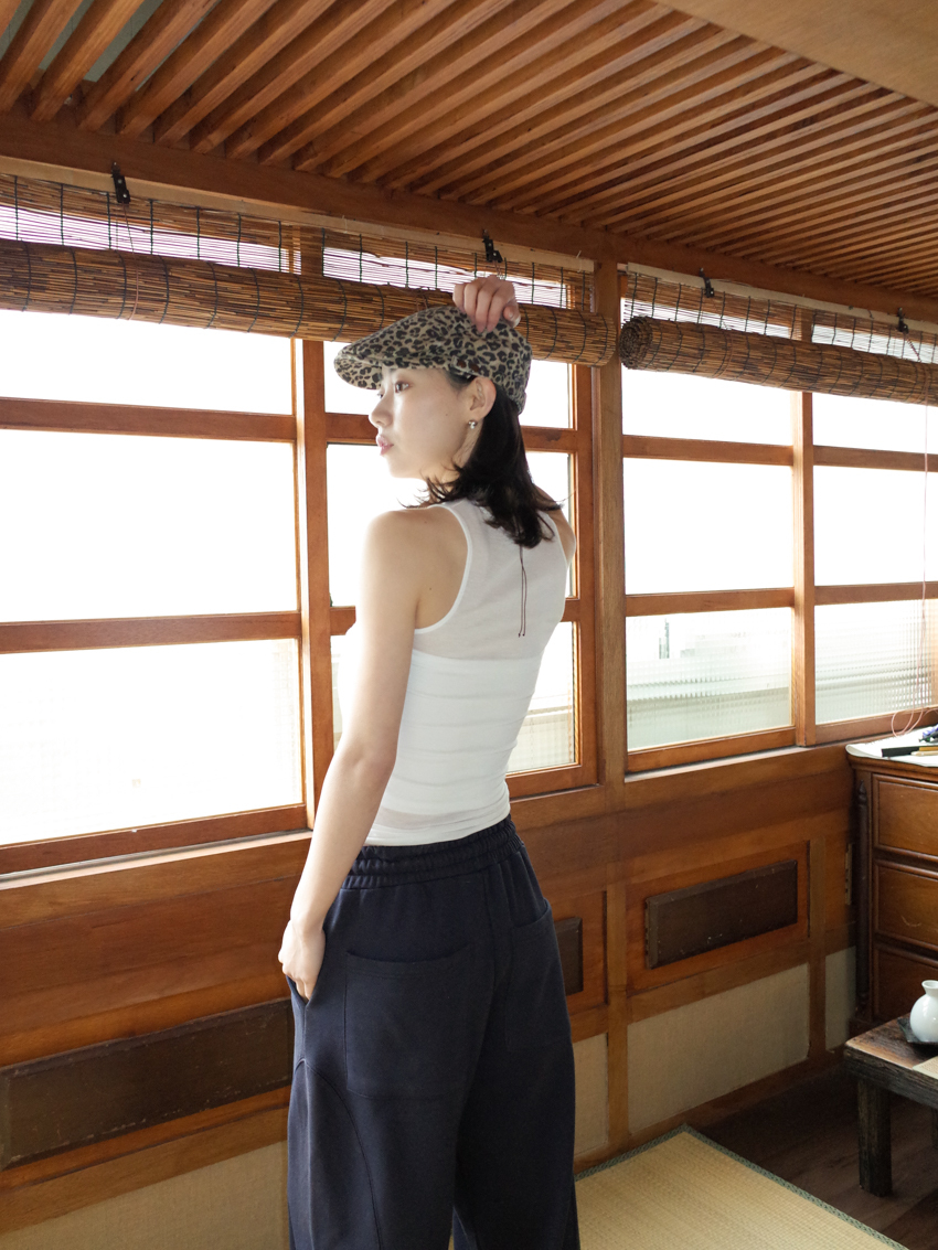 curved design tailored high-quality cotton trousers in NAVY