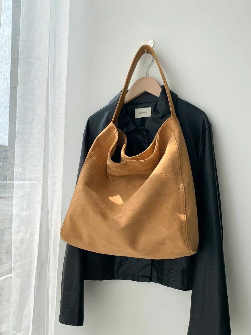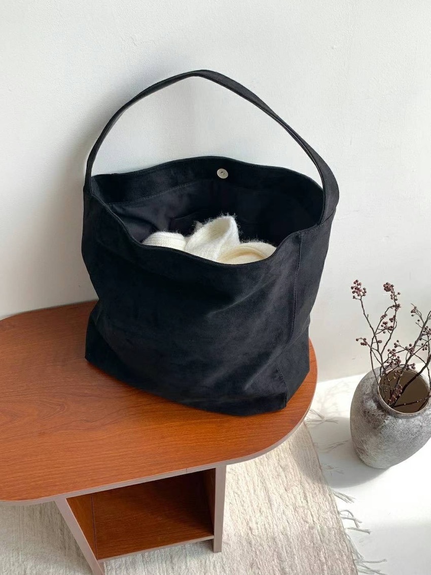 daily suede shoulder concealed button tote bag