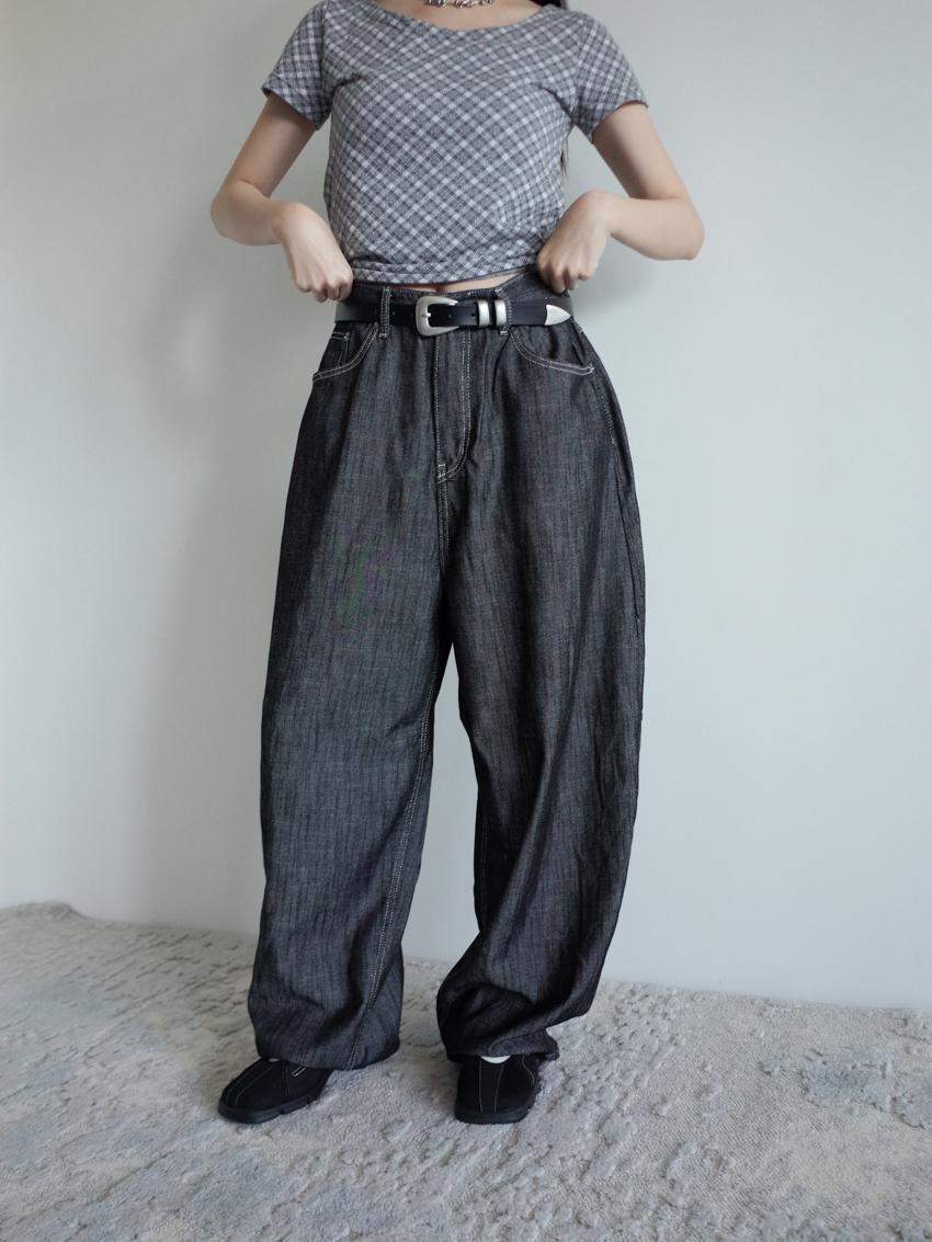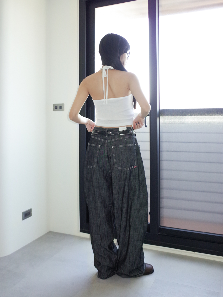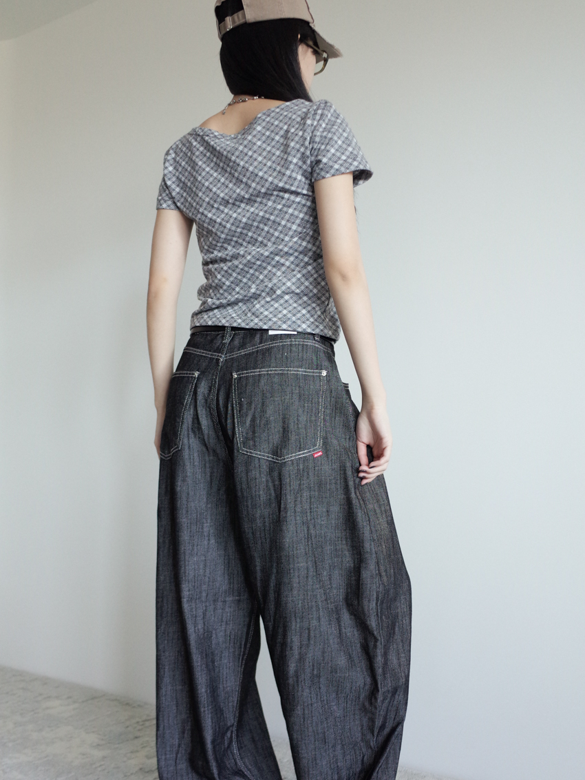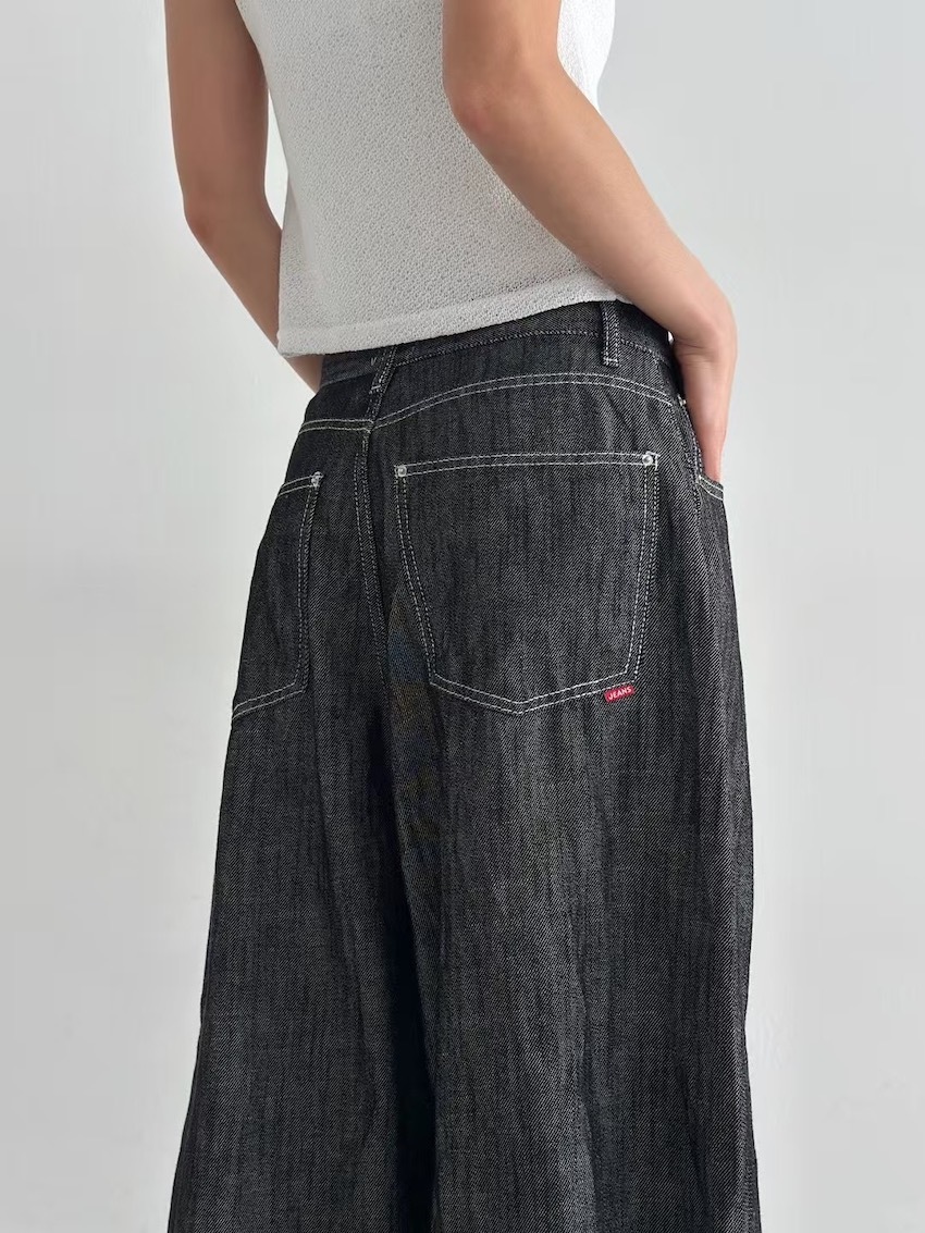 denim-style wide trousers with a soft texture and classic red tag in BLACK
