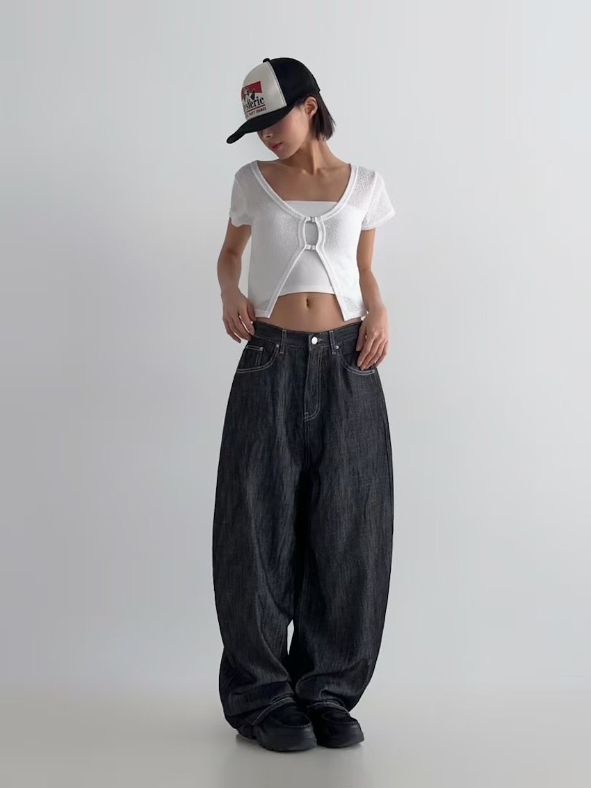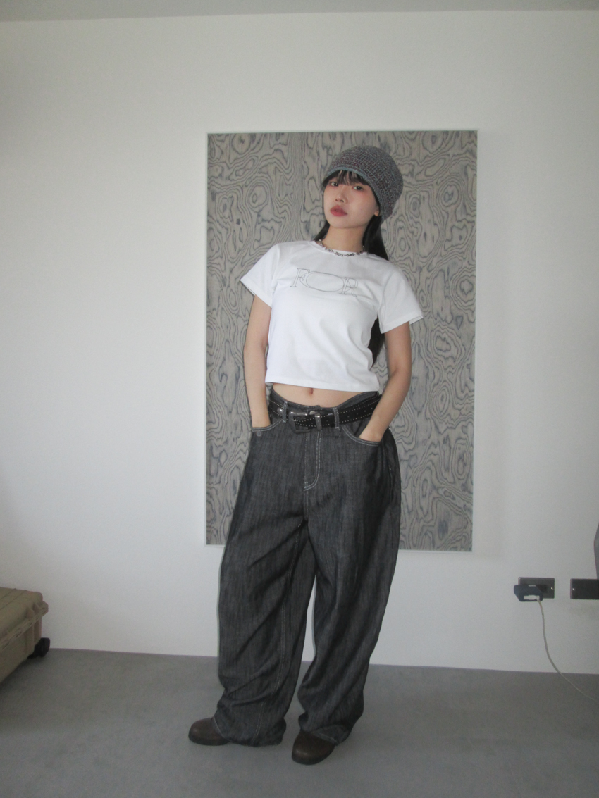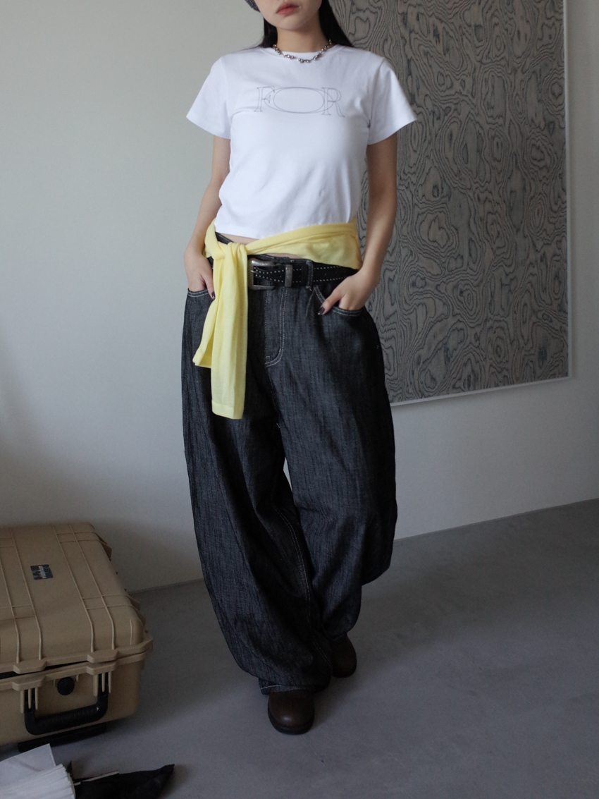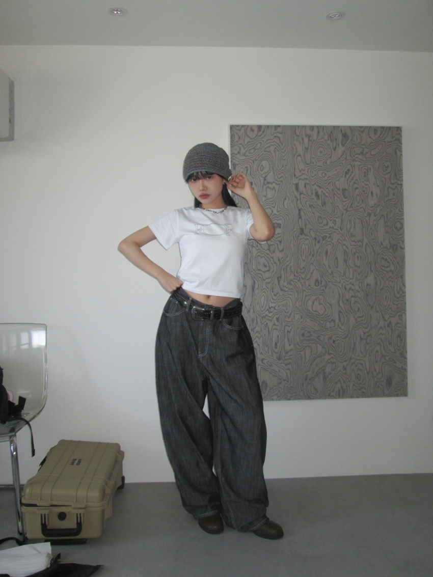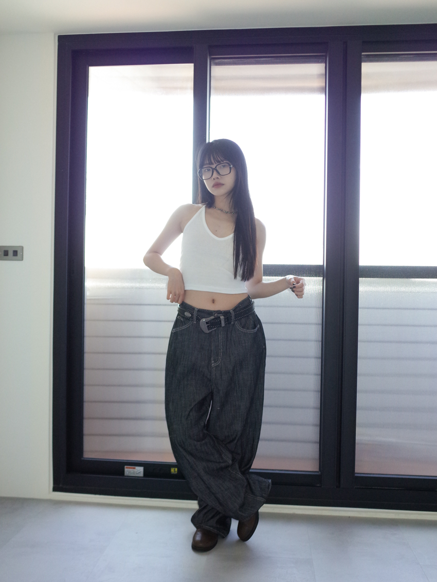 denim-style wide trousers with a soft texture and classic red tag in BLACK