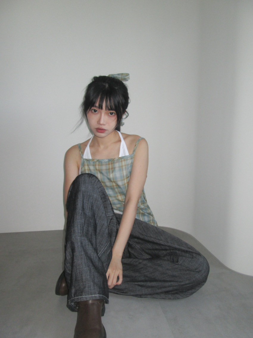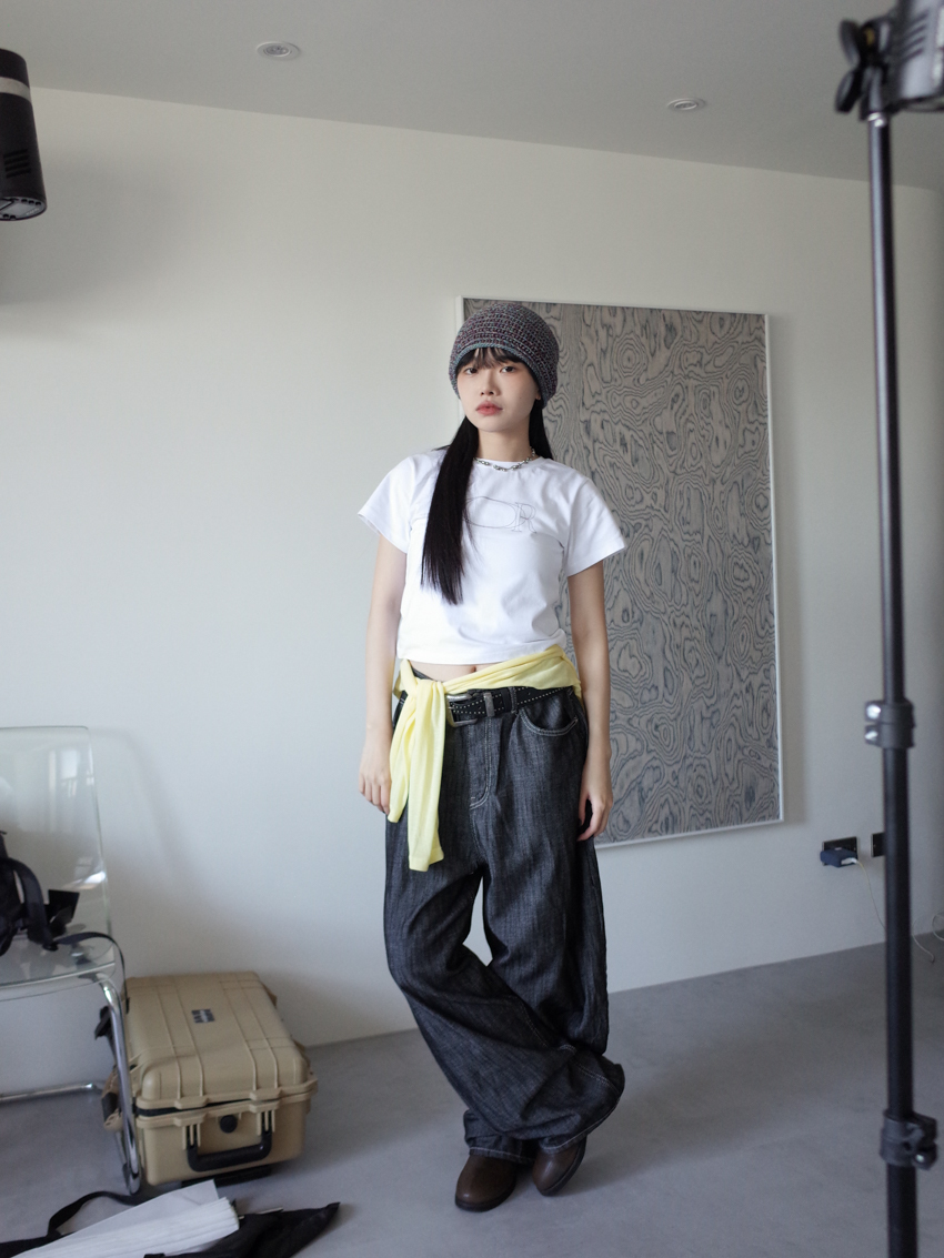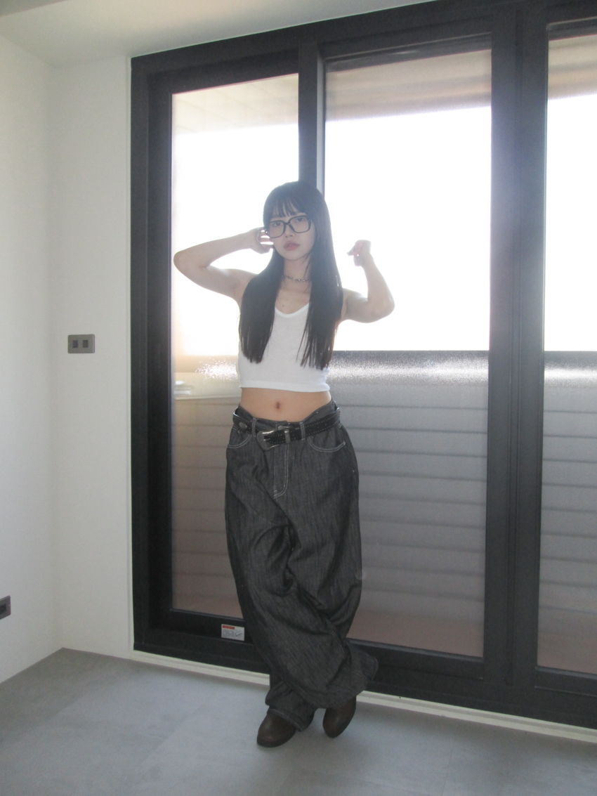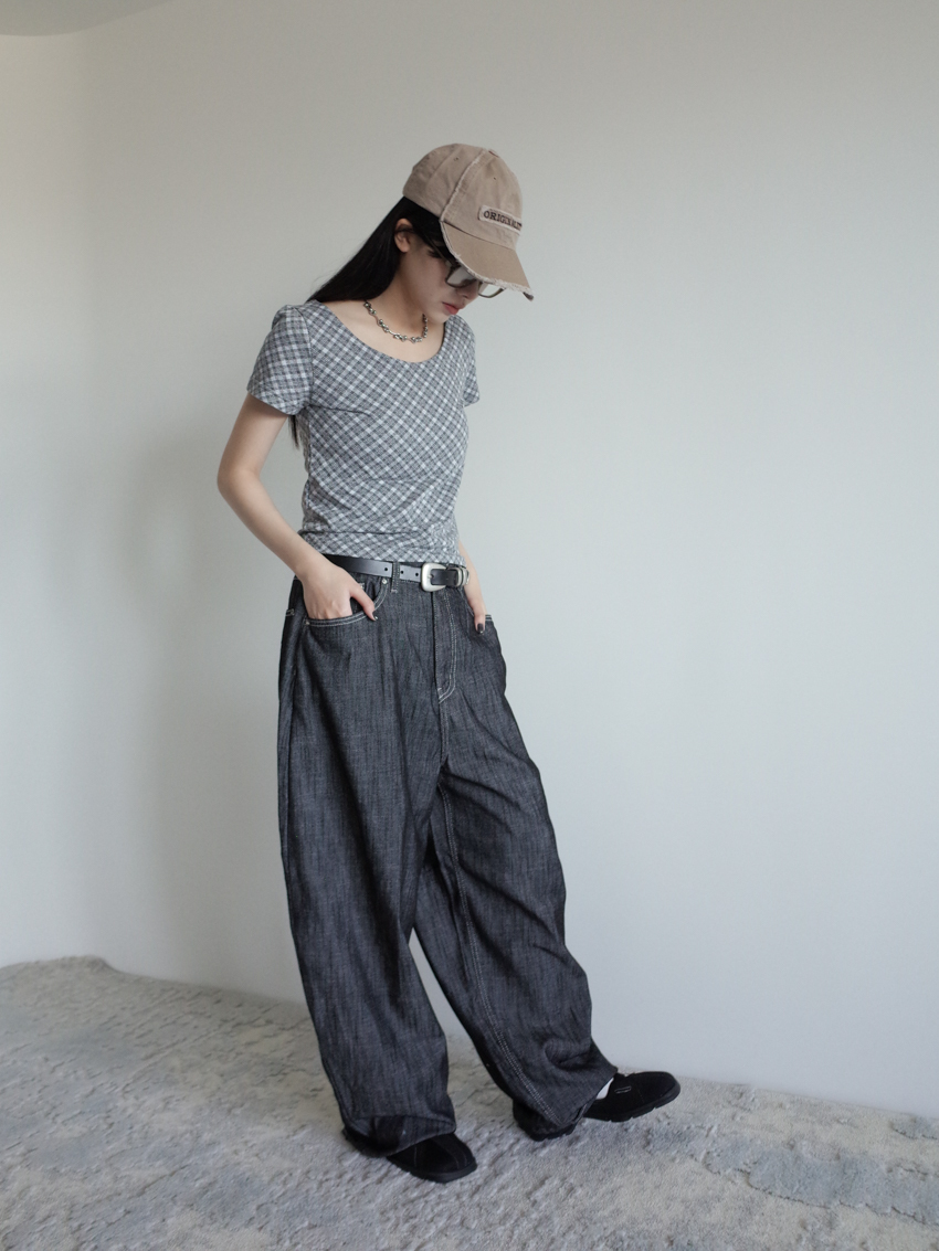 denim-style wide trousers with a soft texture and classic red tag in BLACK