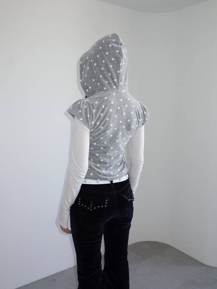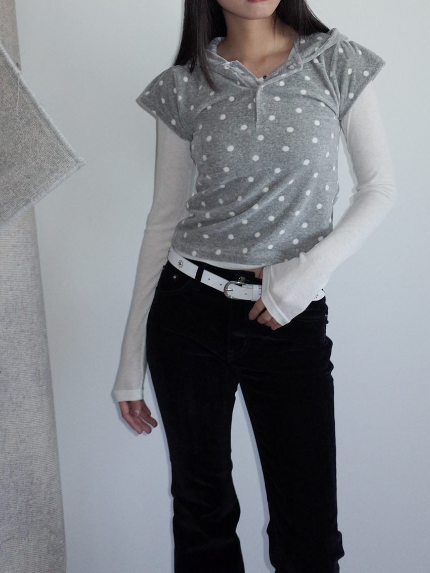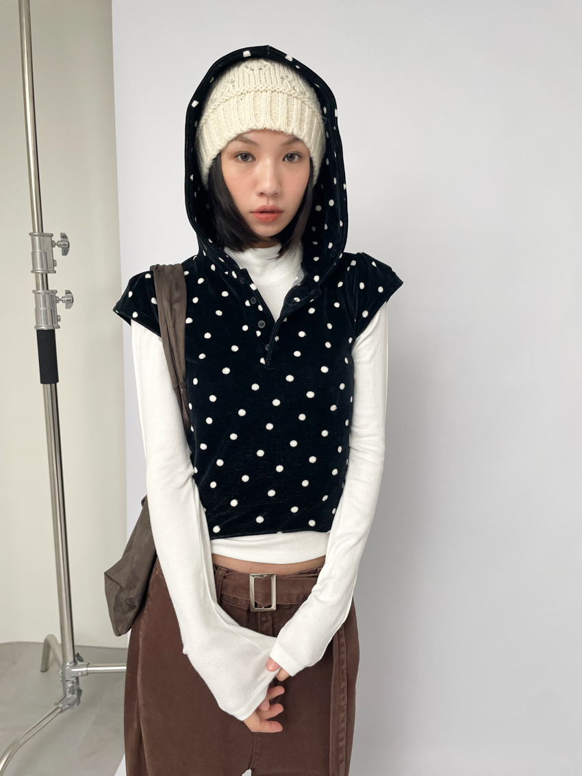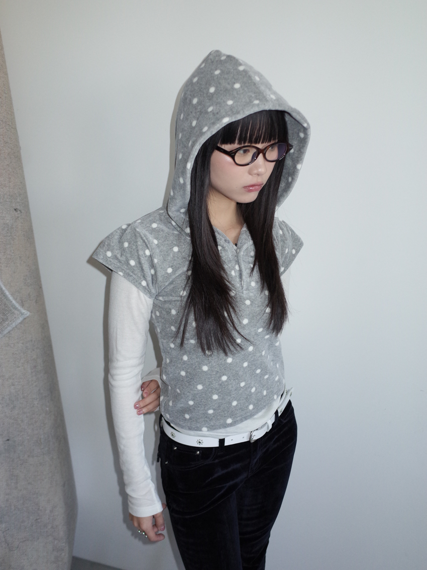 dense fleece polka dot hooded button top