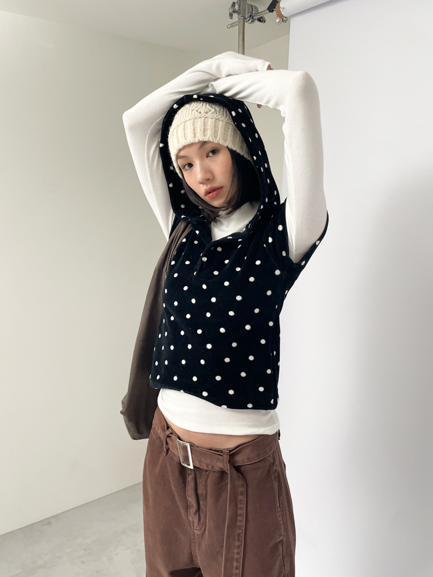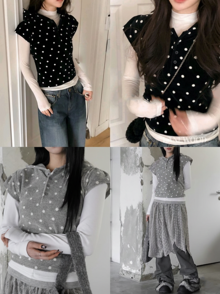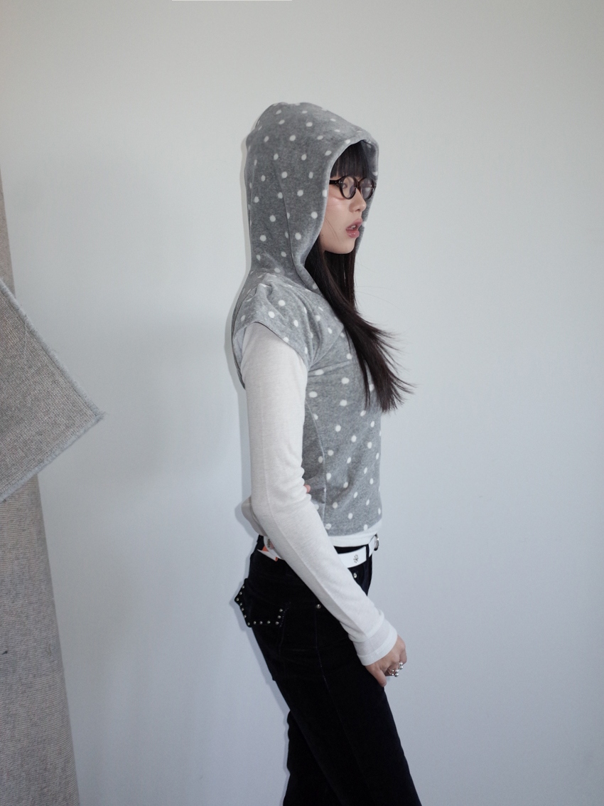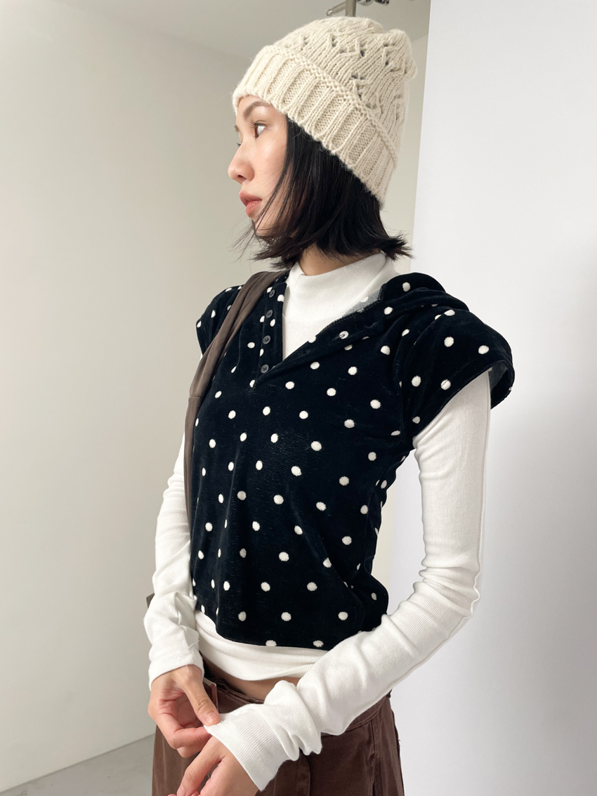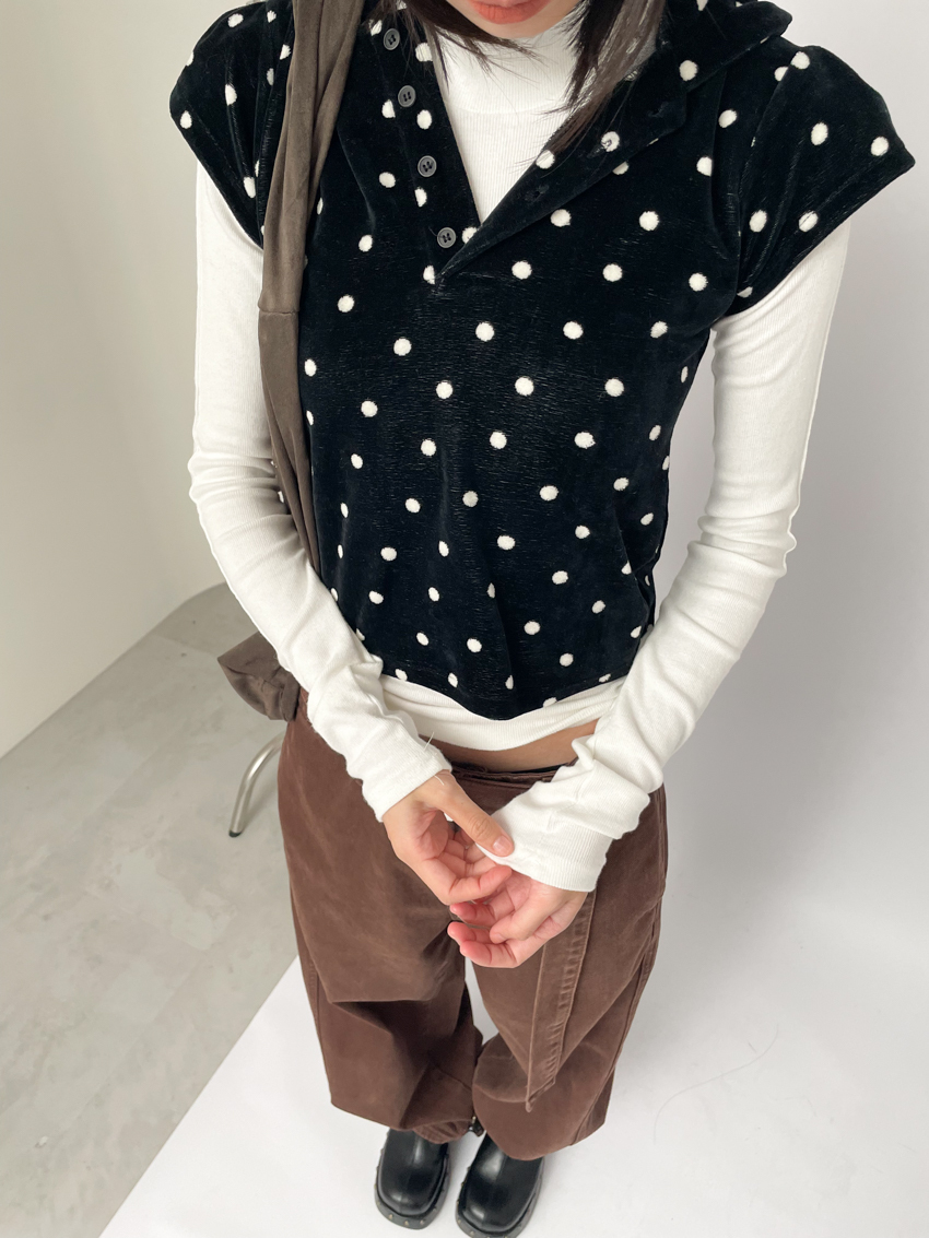 dense fleece polka dot hooded button top