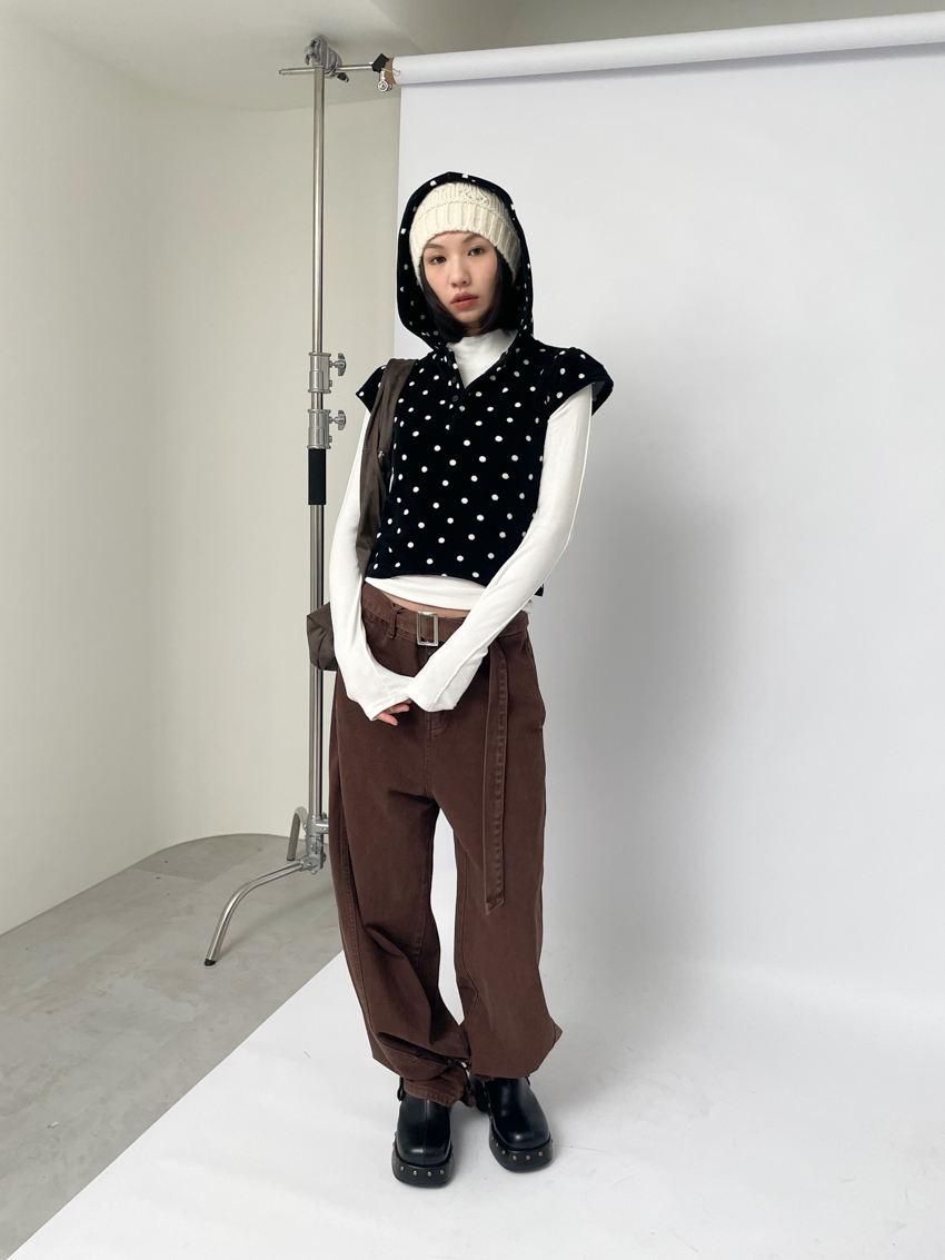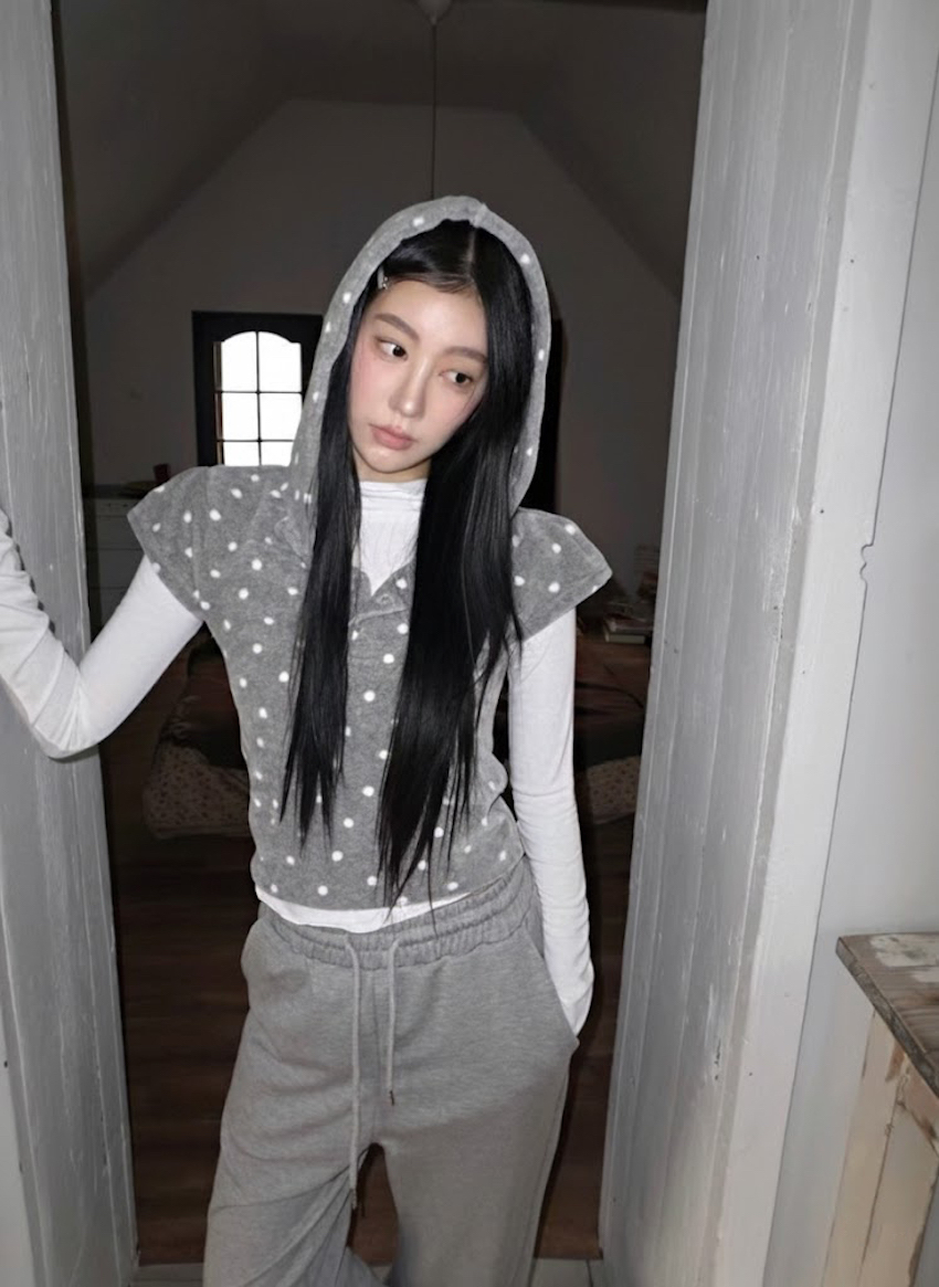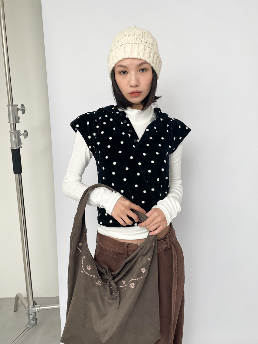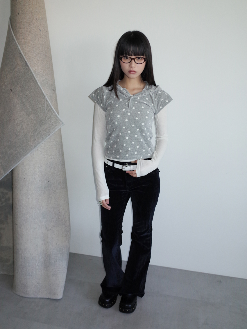 dense fleece polka dot hooded button top