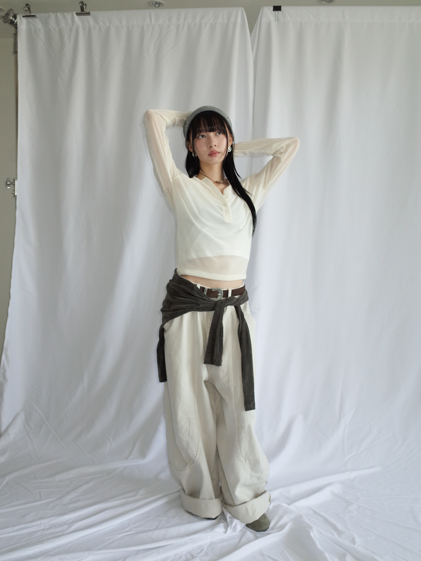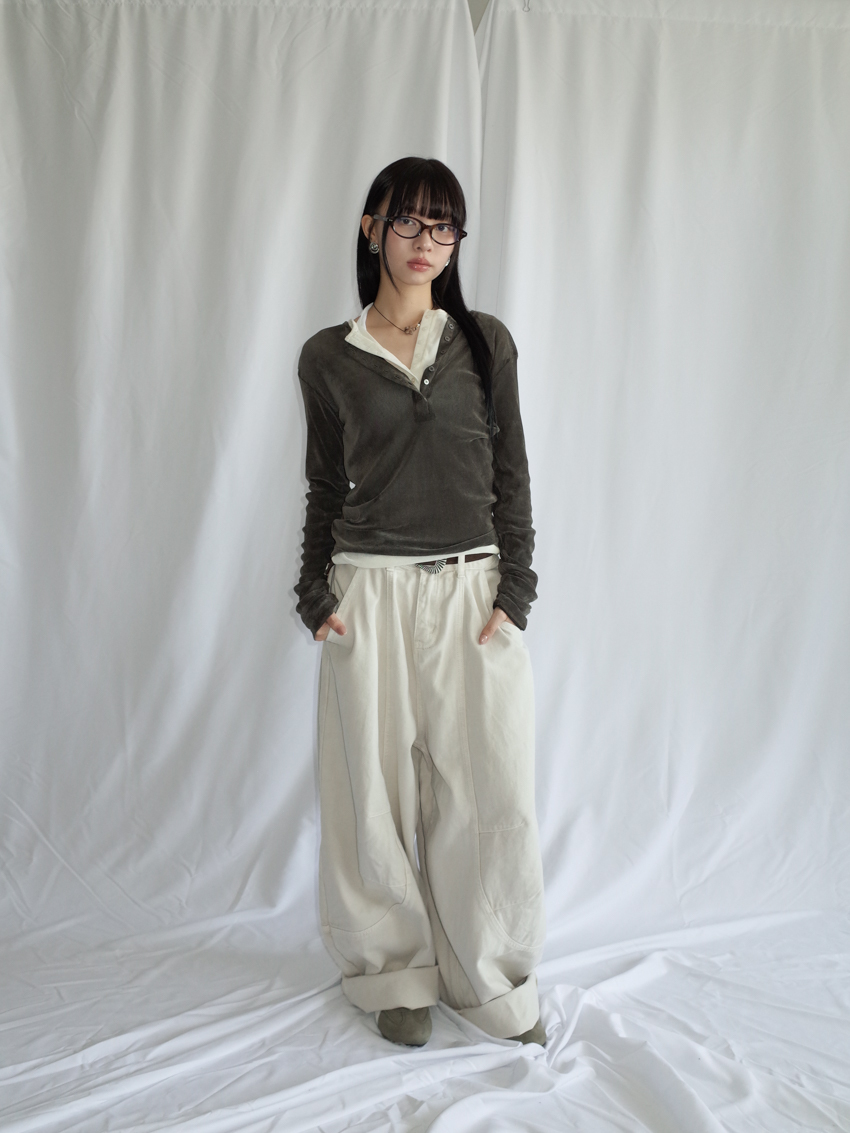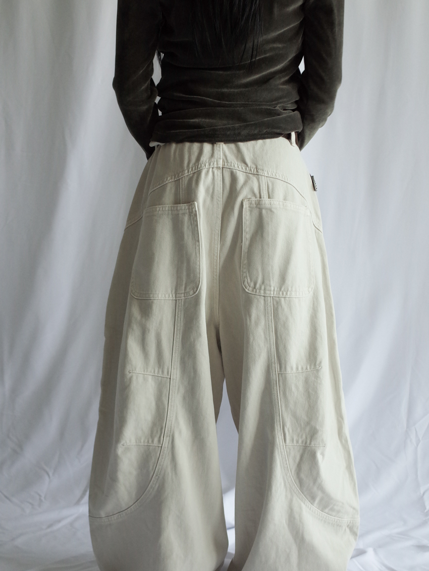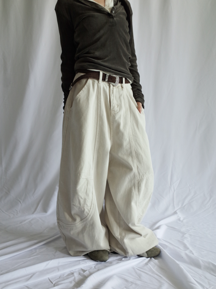 (Designer!) curved-cut washed wide-leg trousers in BEIGE
