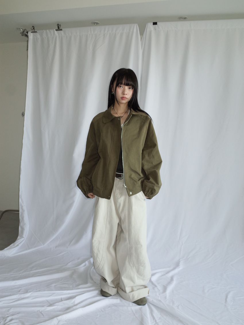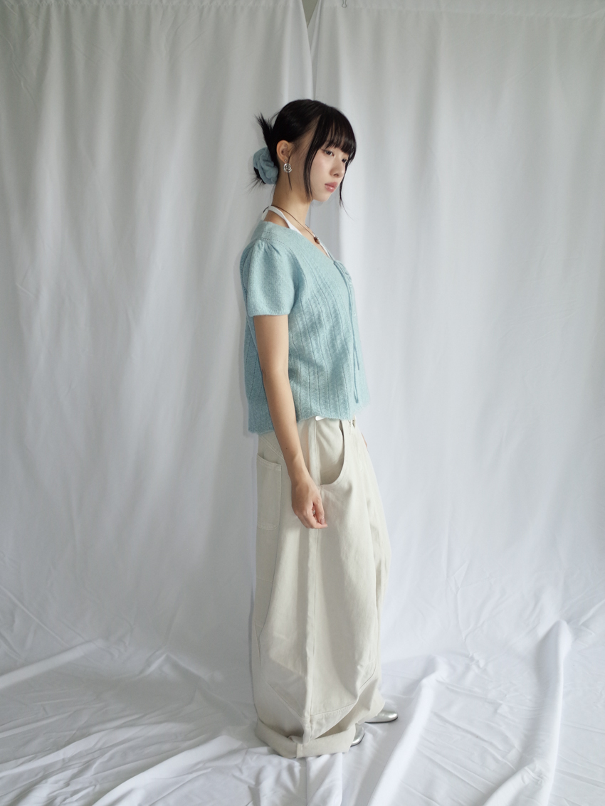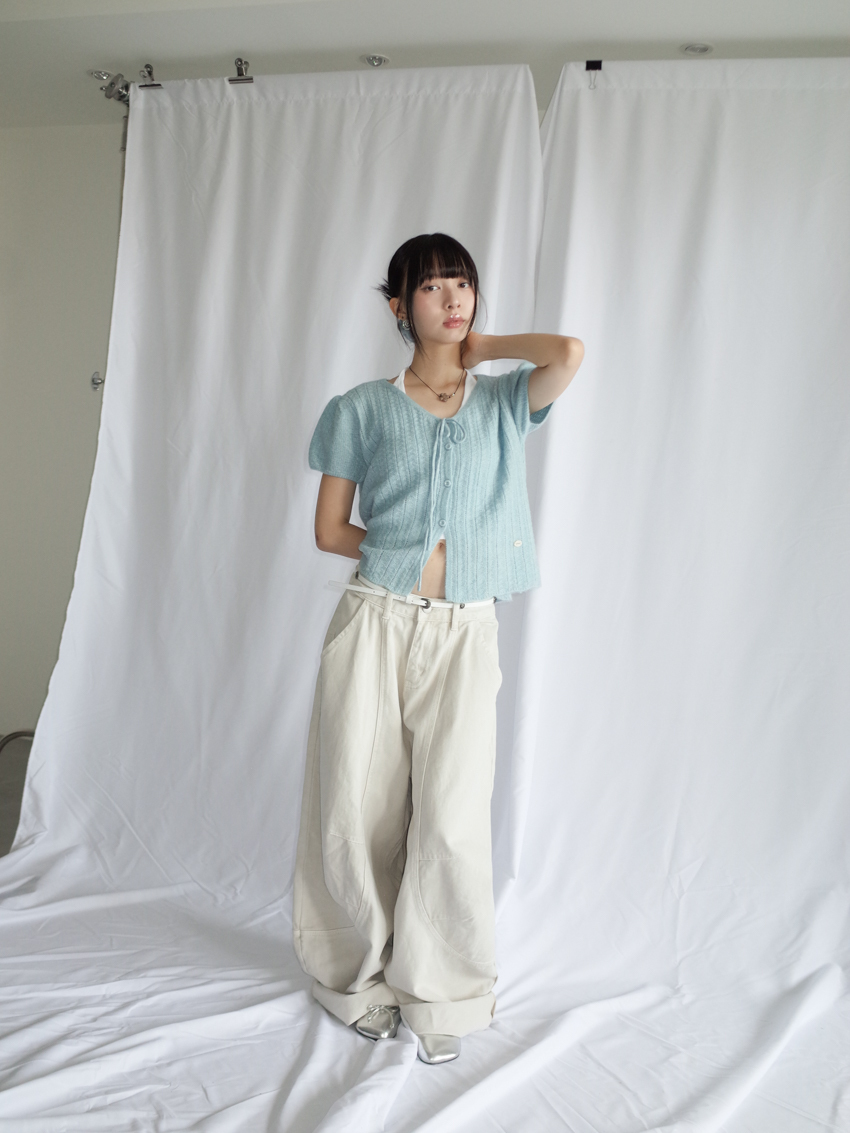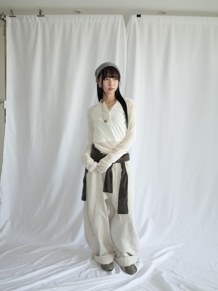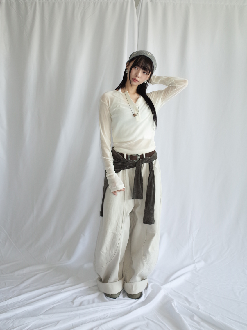 (Designer!) curved-cut washed wide-leg trousers in BEIGE