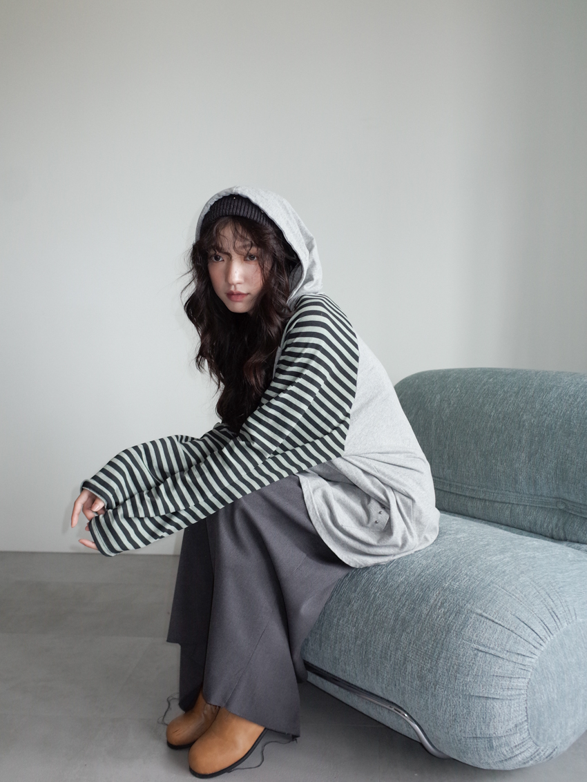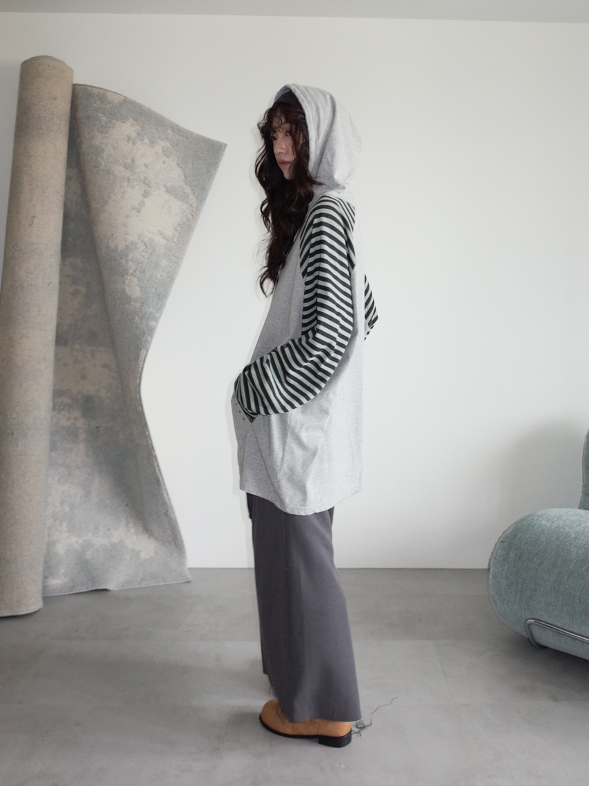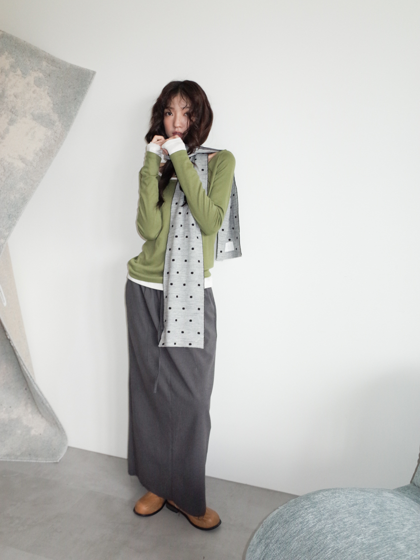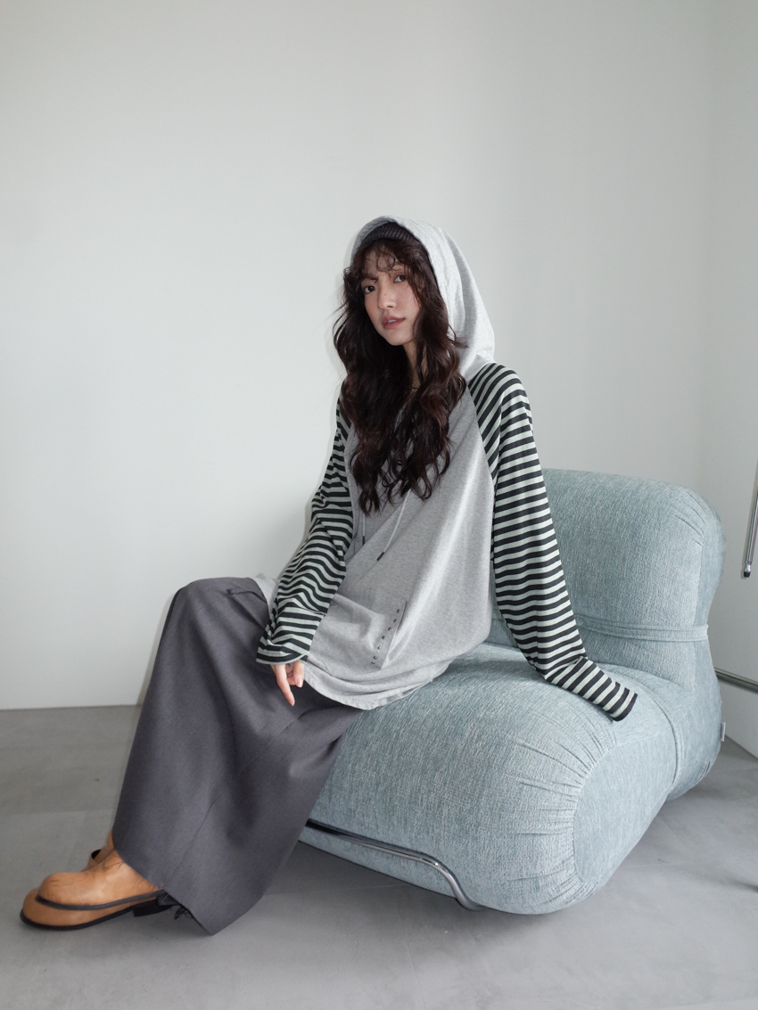 elastic drawstring stripe raw-edge back slit skirt in CHARCOAL