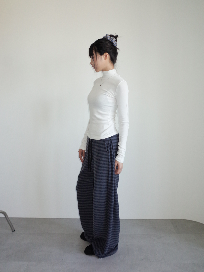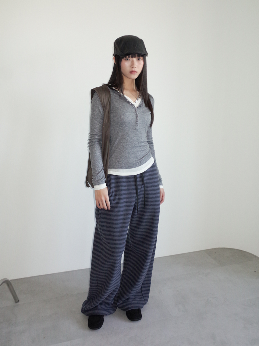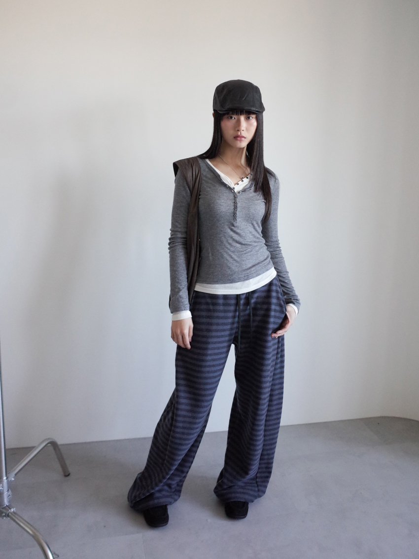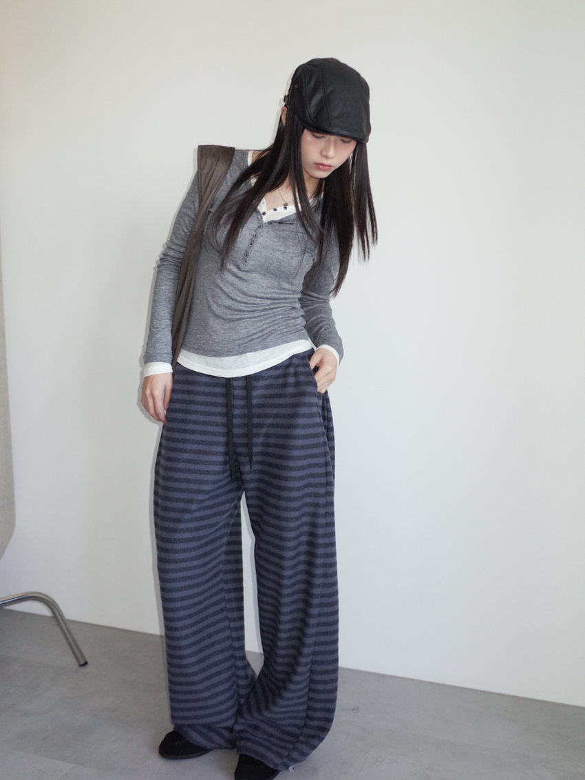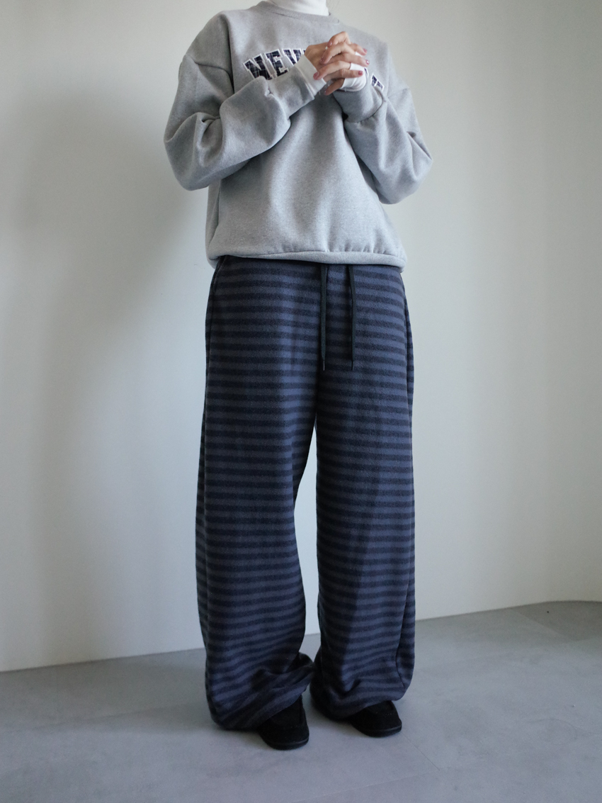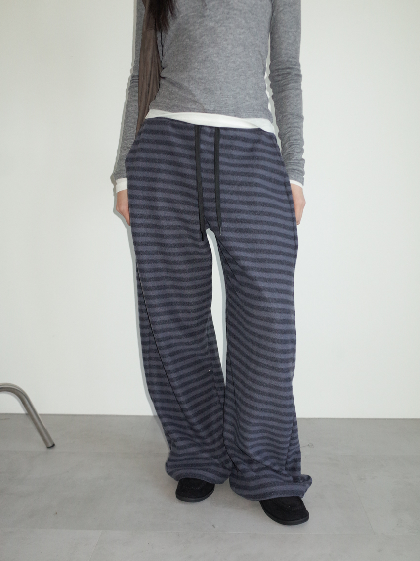 elastic drawstring striped brushed cotton trousers in CHARCOAL