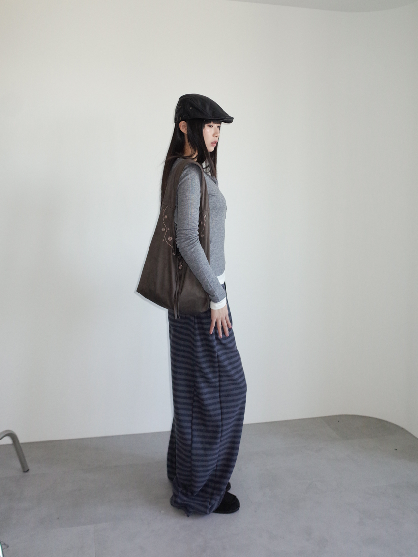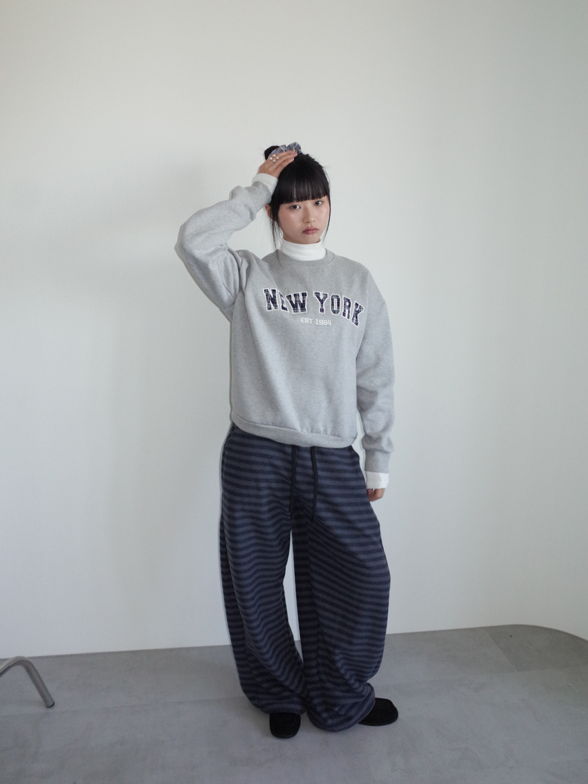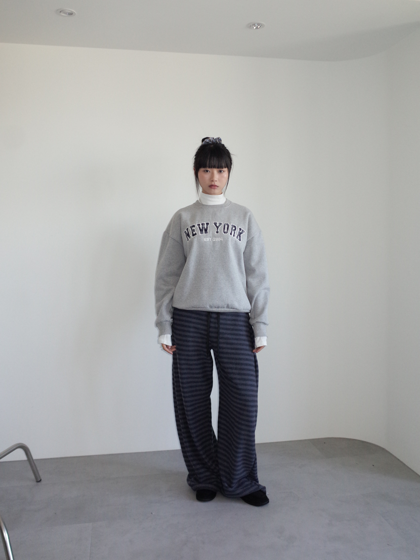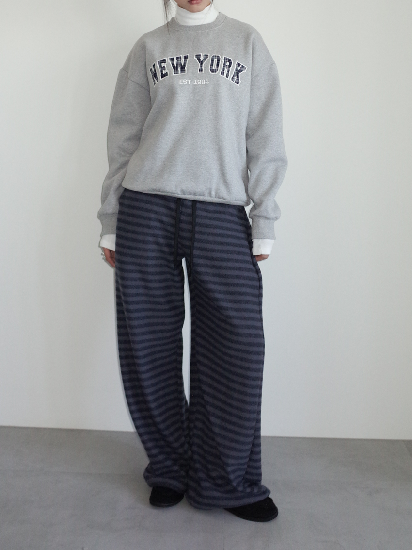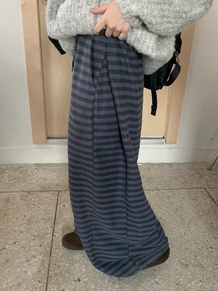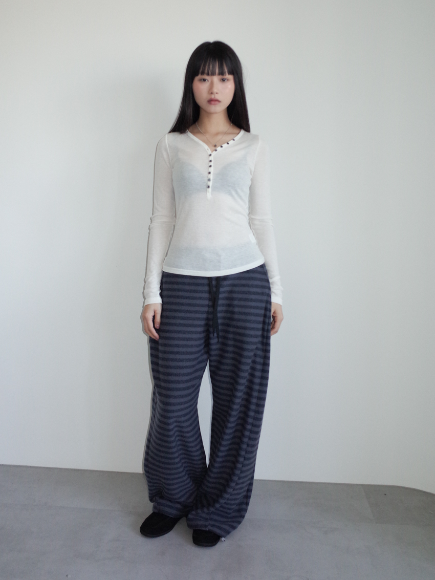 elastic drawstring striped brushed cotton trousers in CHARCOAL