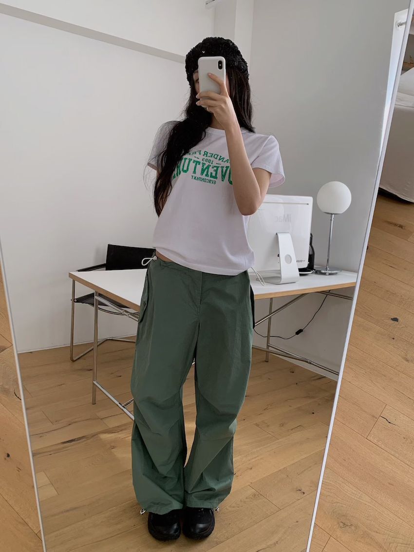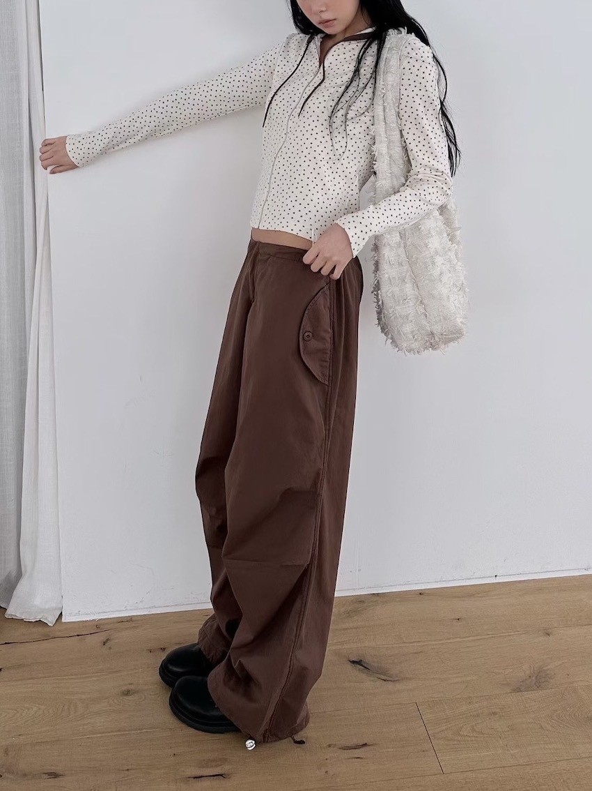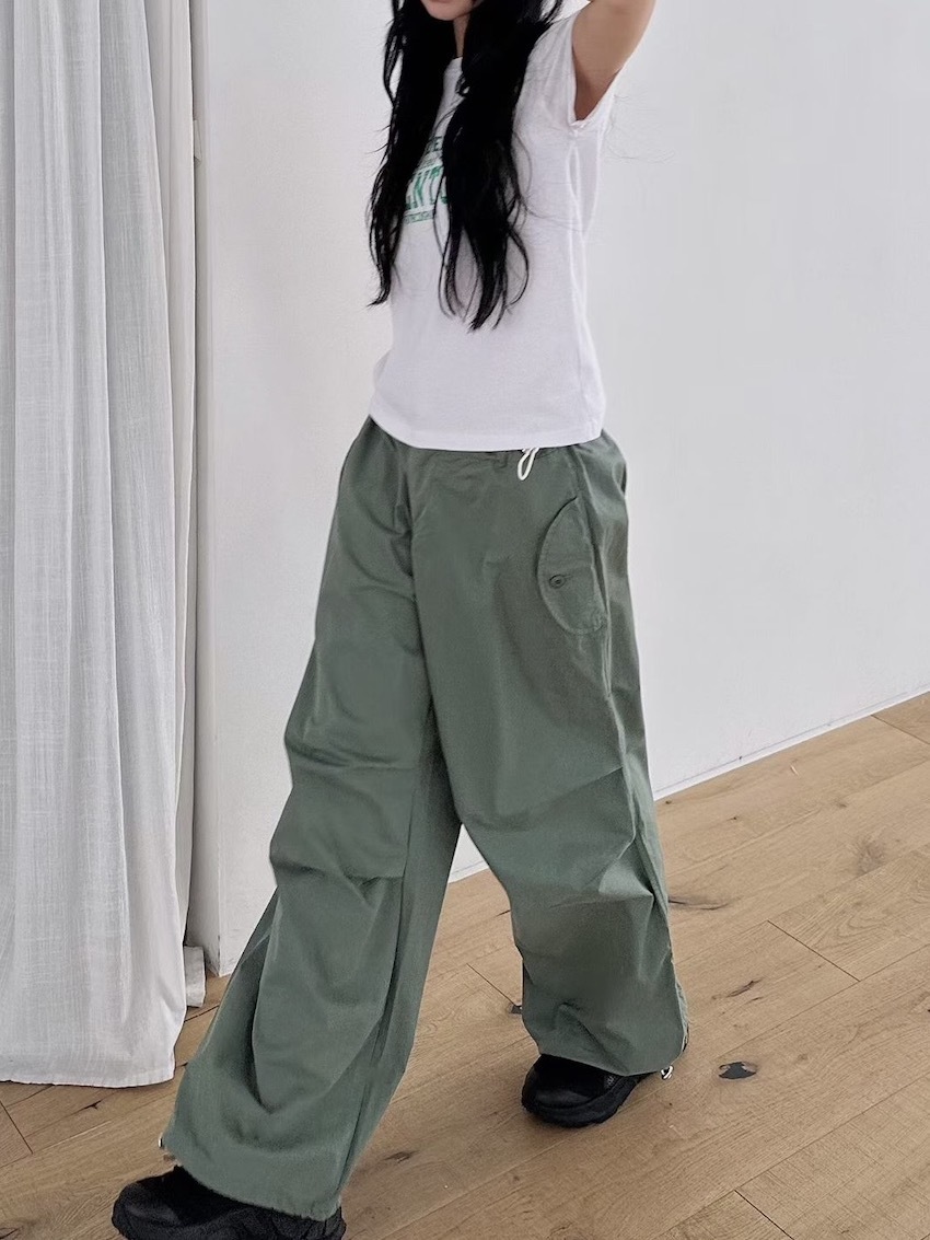 elastic waist knee ruched cargo trousers in EARTH TONES