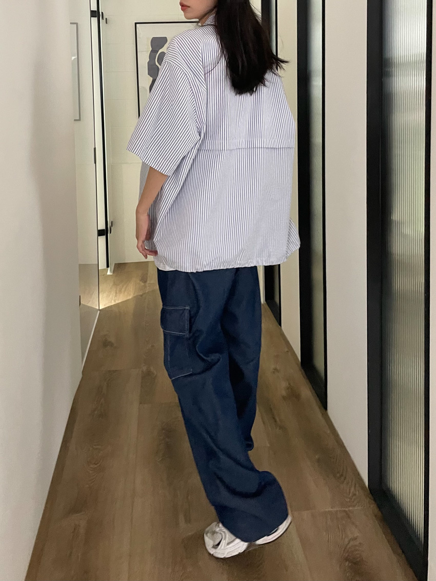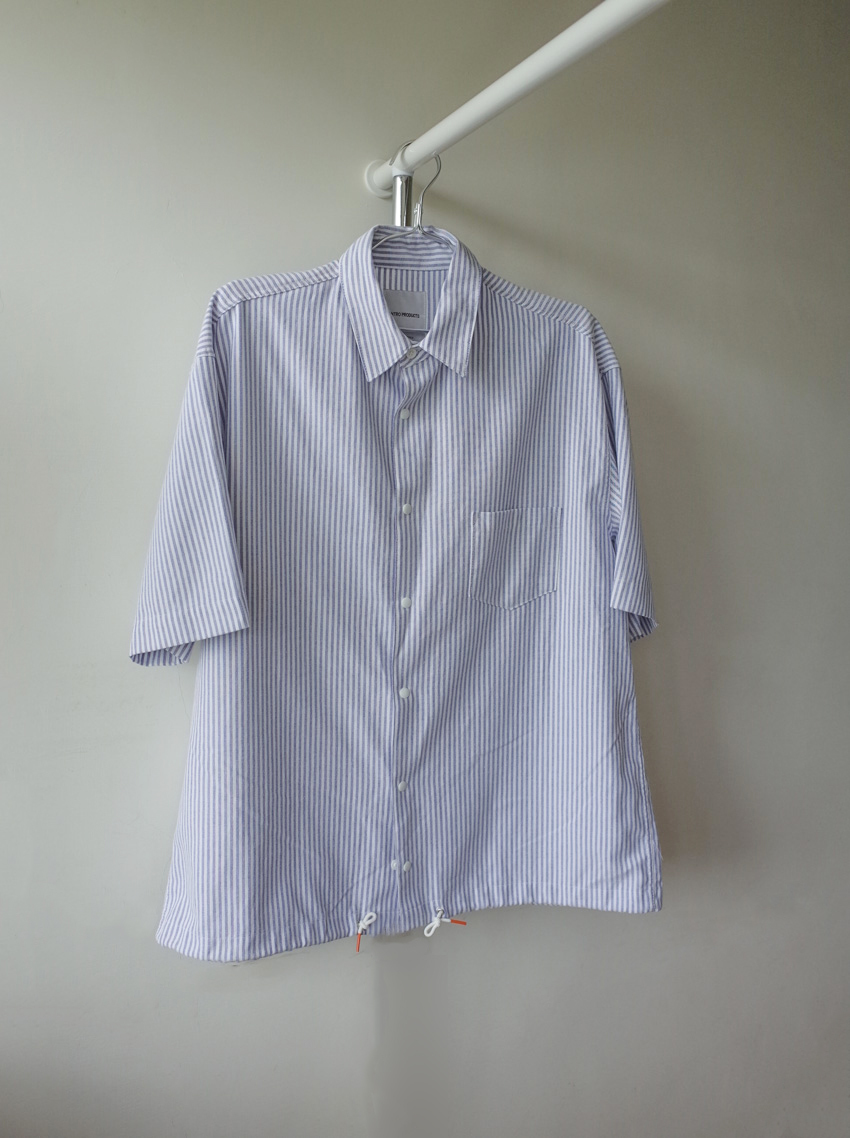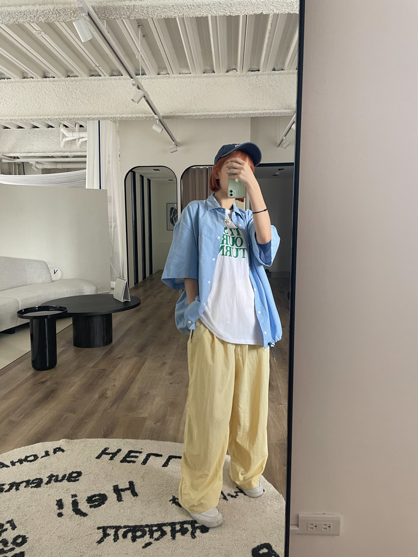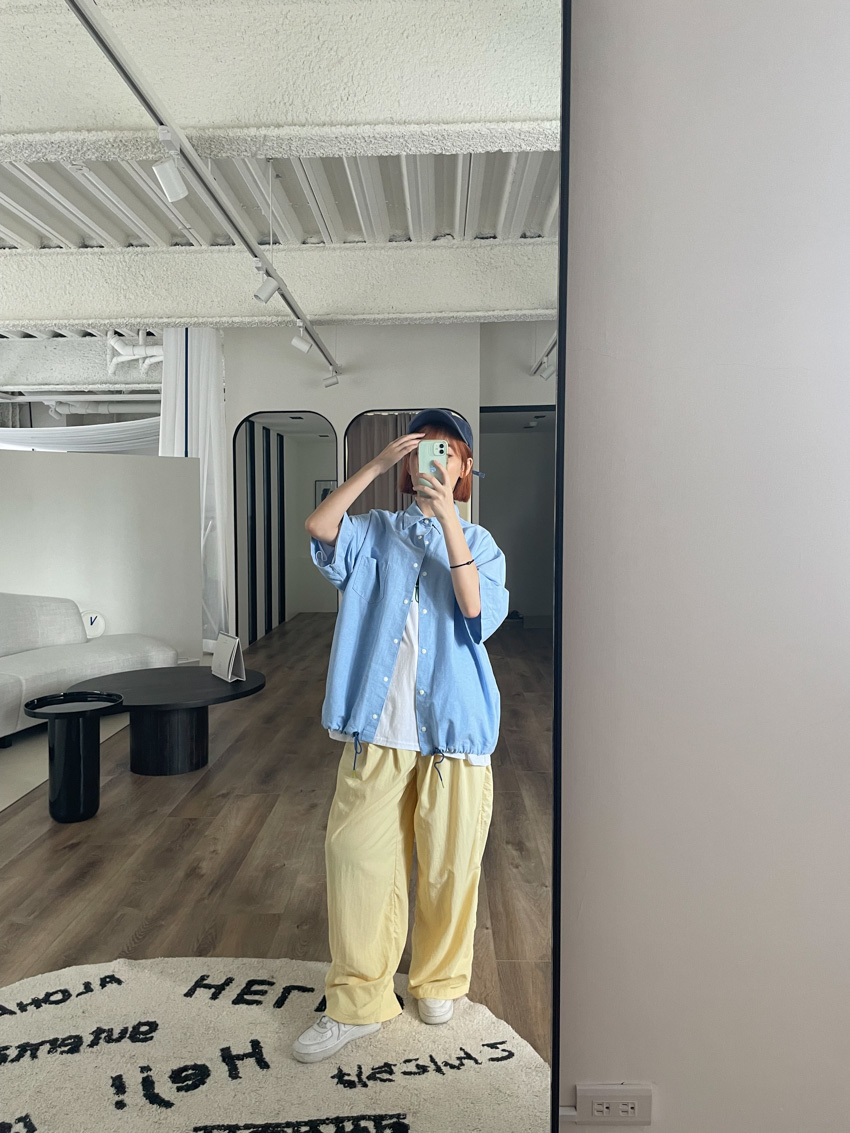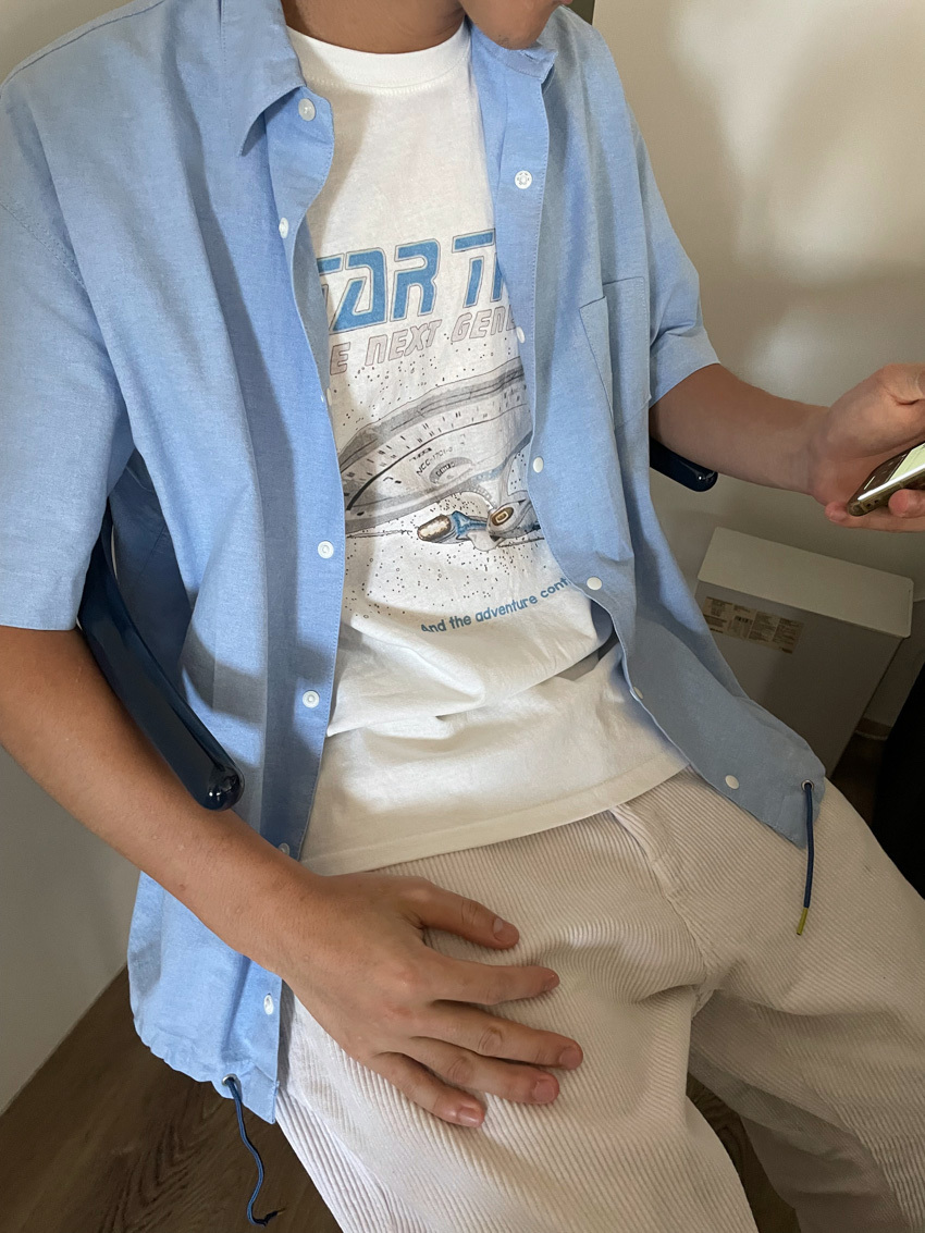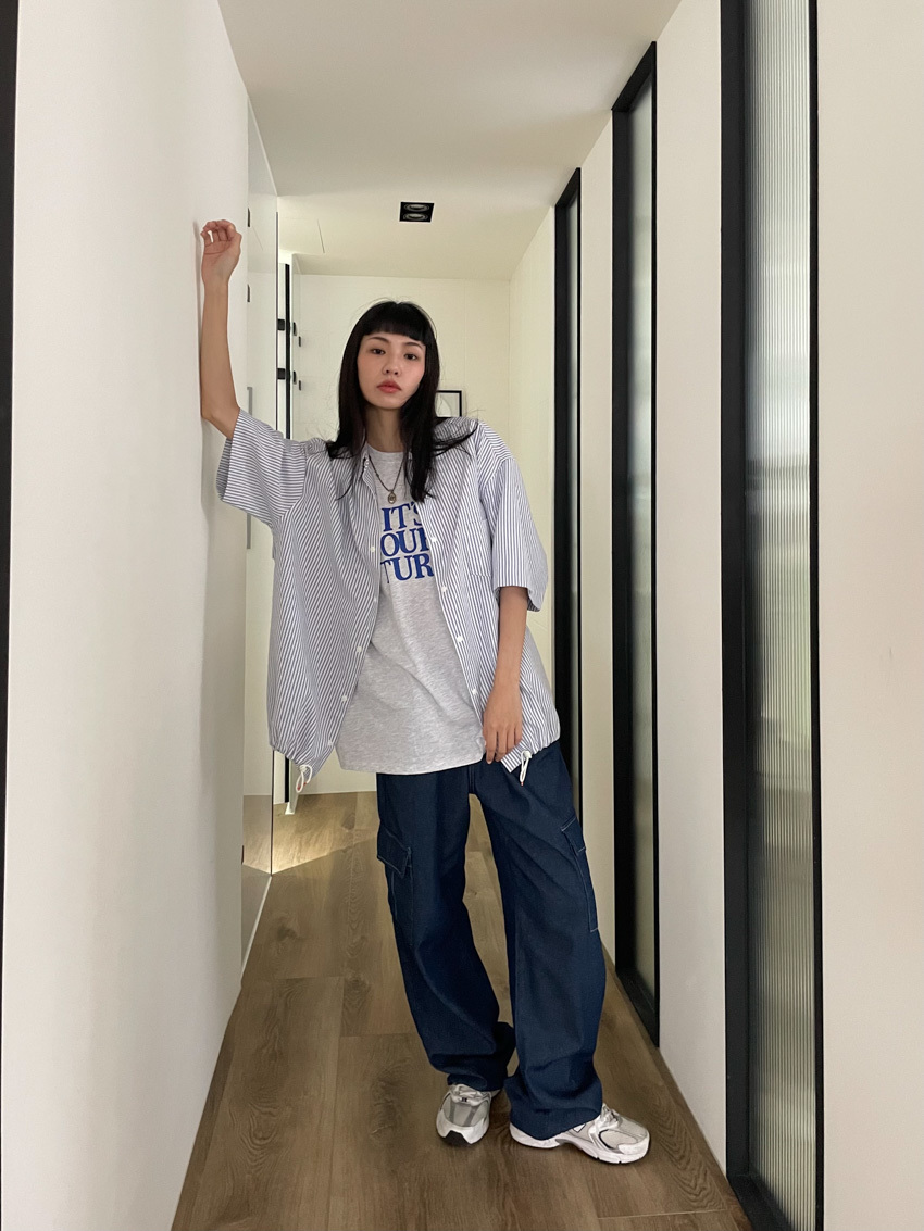 #T10 完美版型!下抽繩中性短袖襯衫