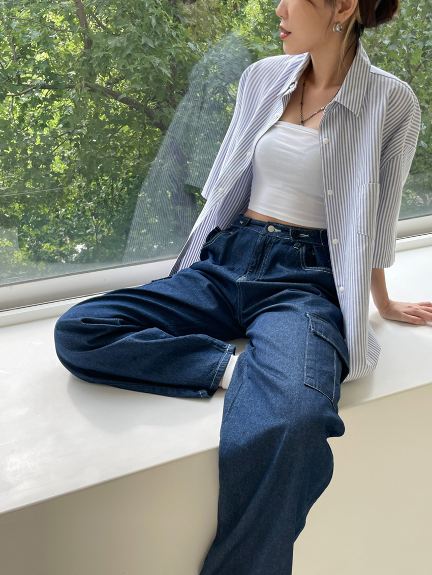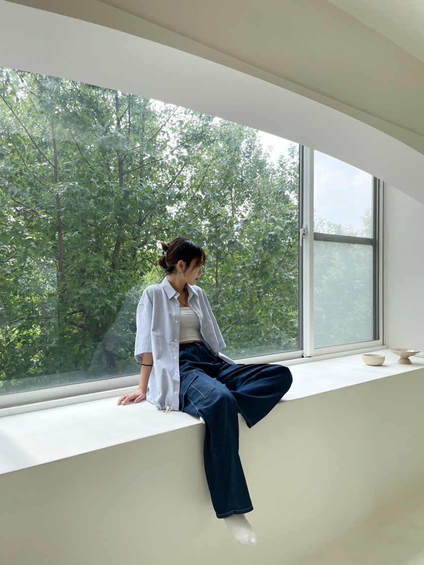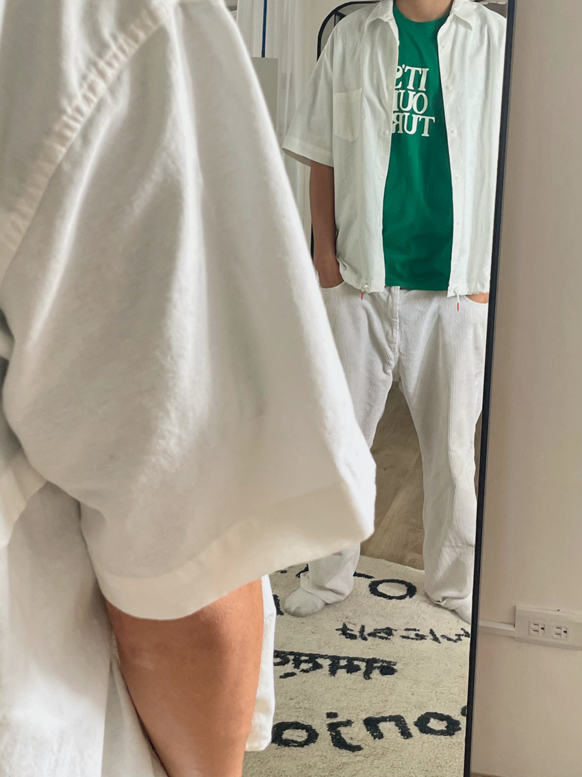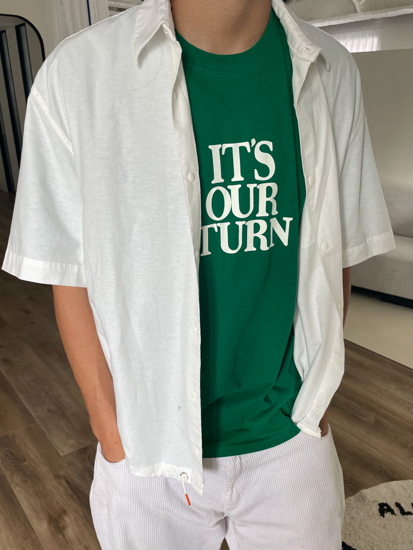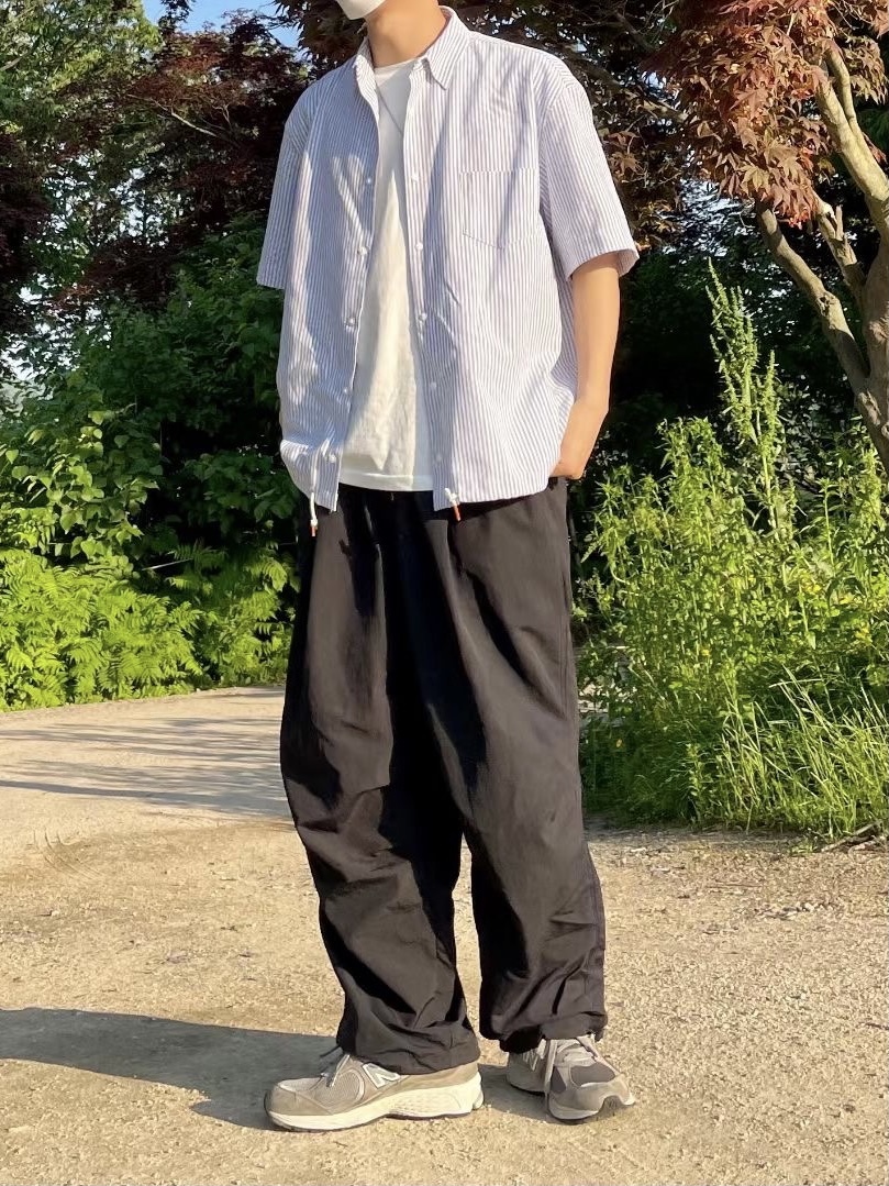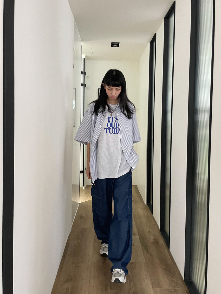 #T10 完美版型!下抽繩中性短袖襯衫