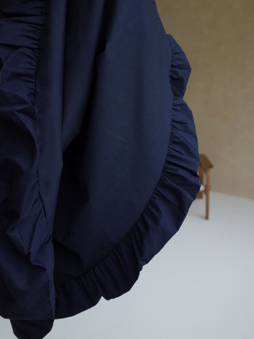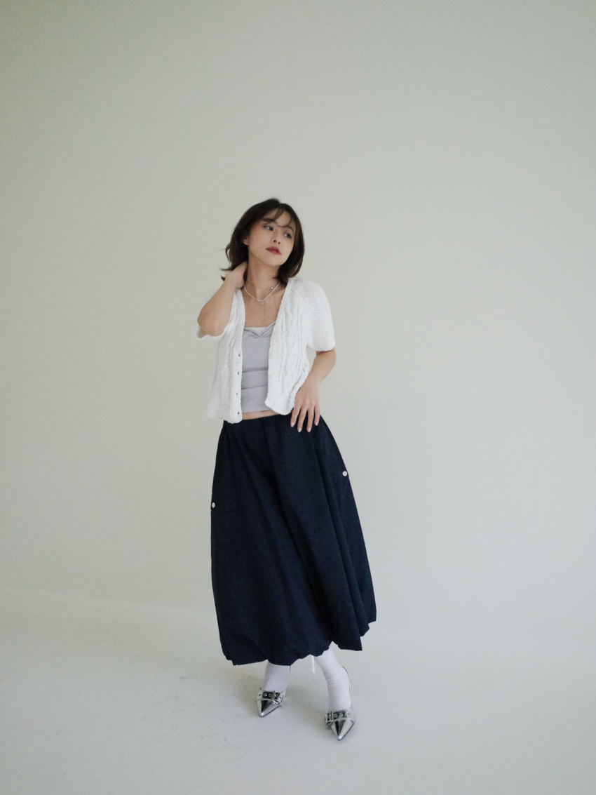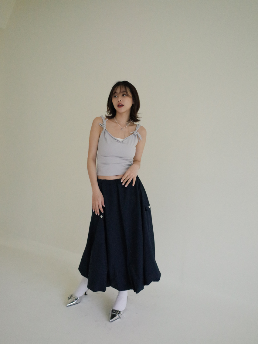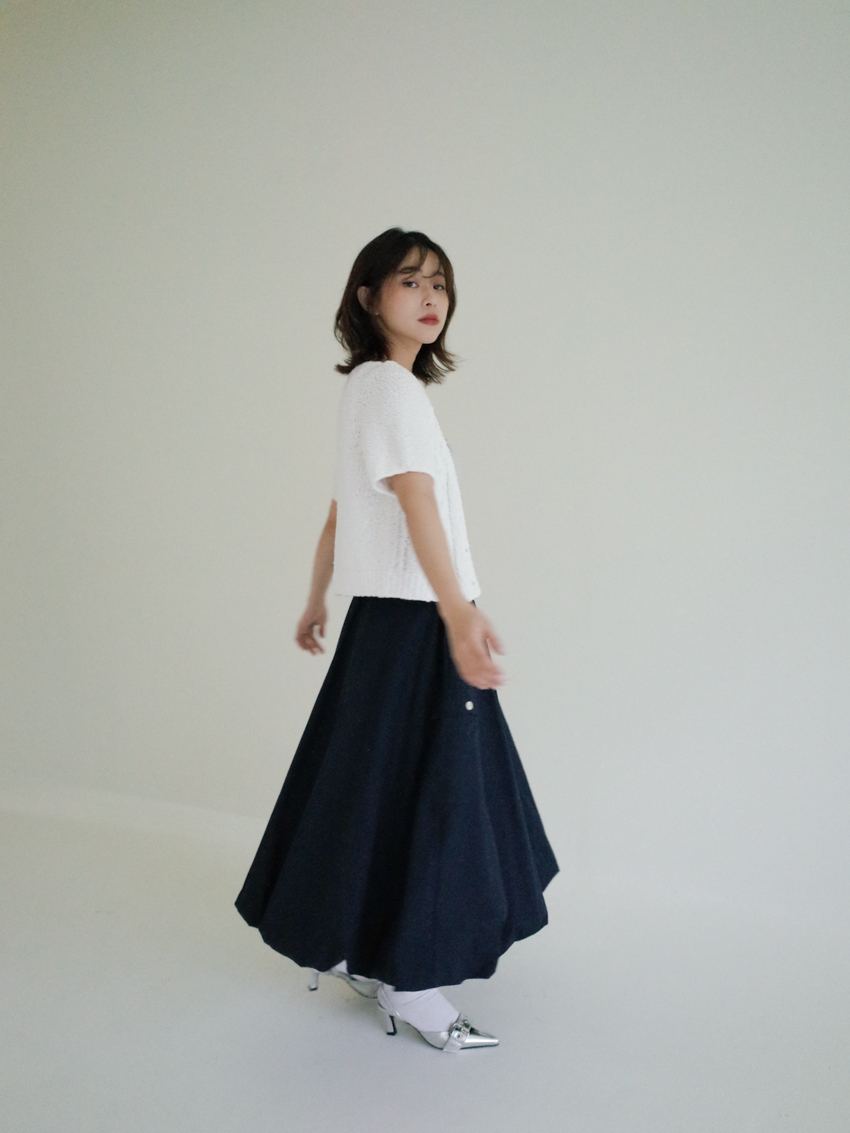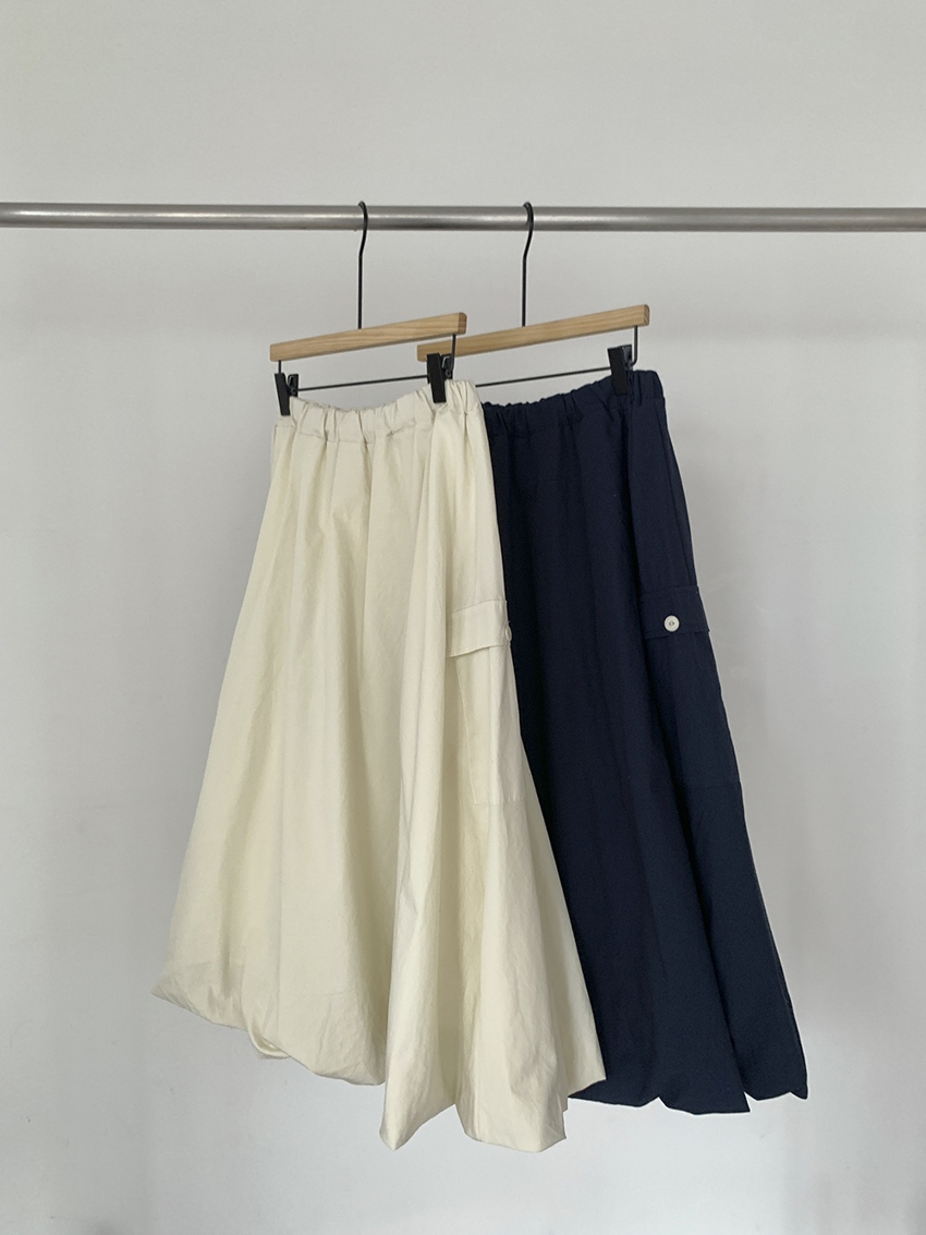 Magnetic A-line waist elastic midi bud skirt in NAVY