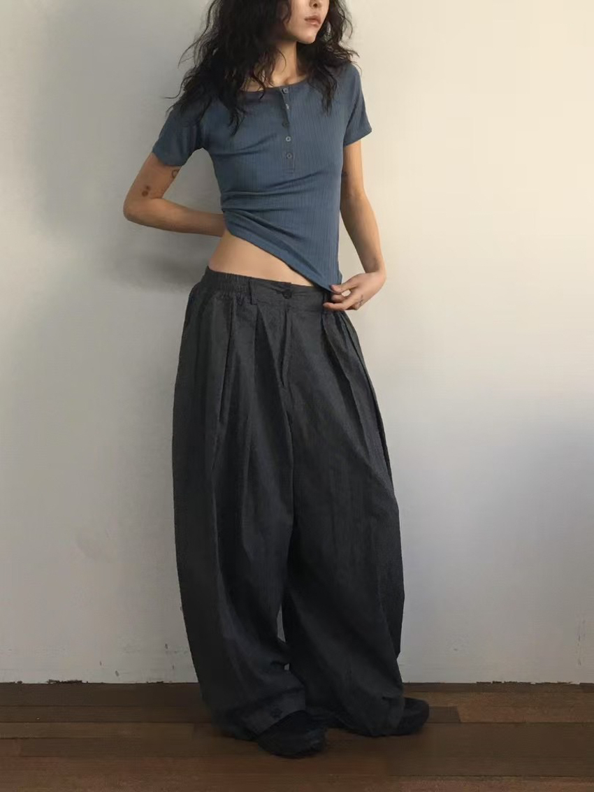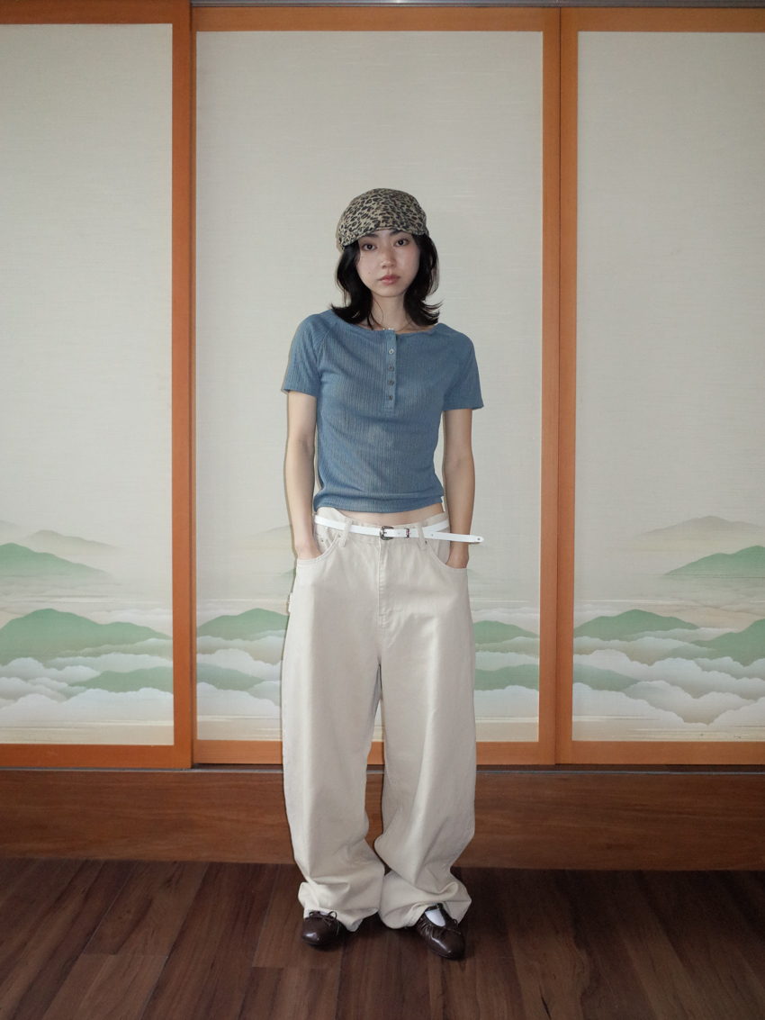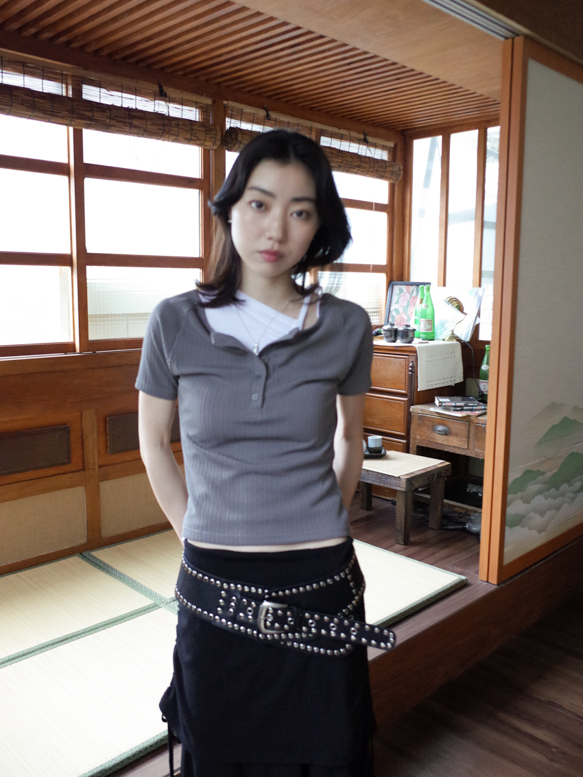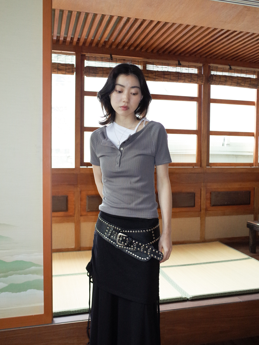 matte gloss button-up wide collar short sleeve top