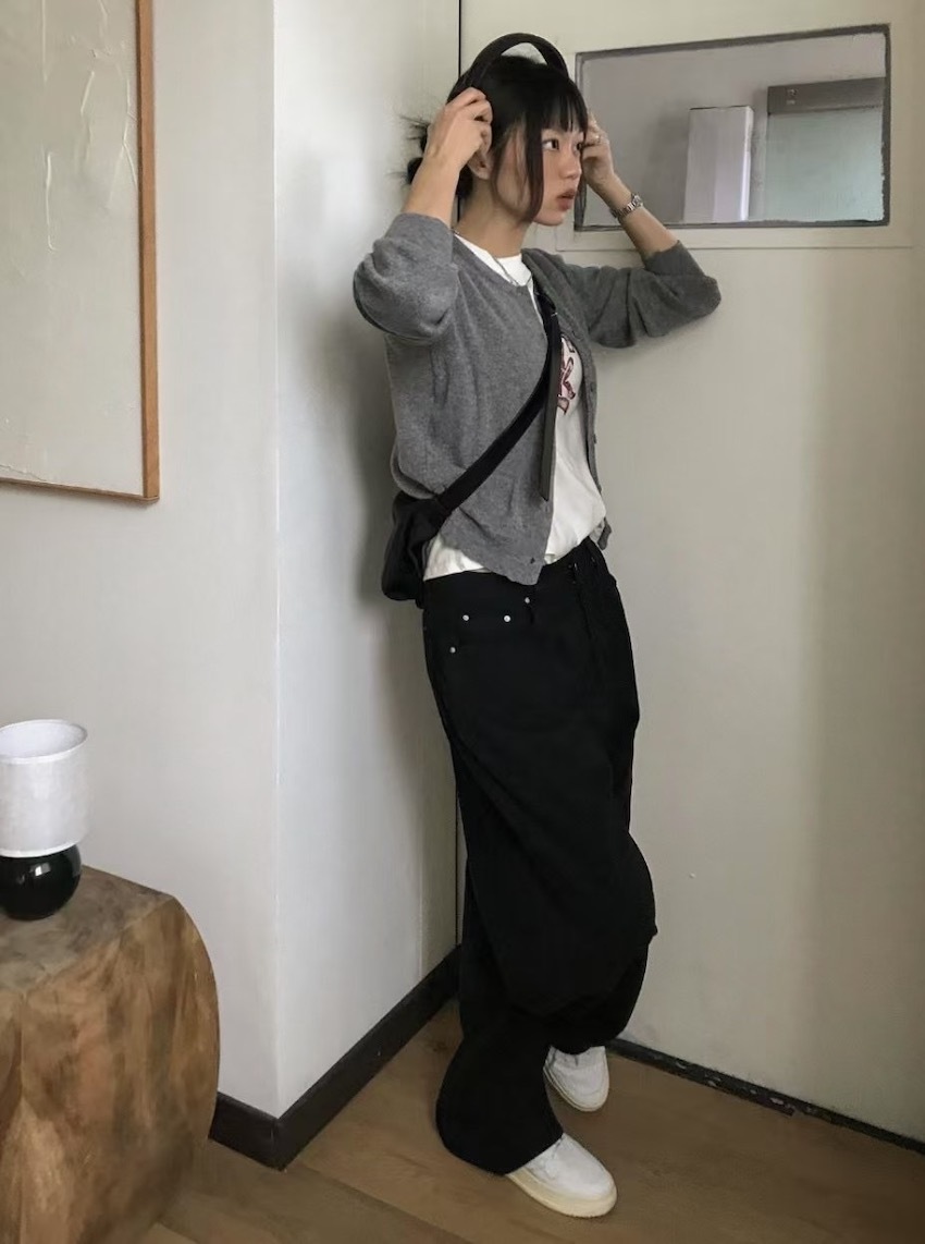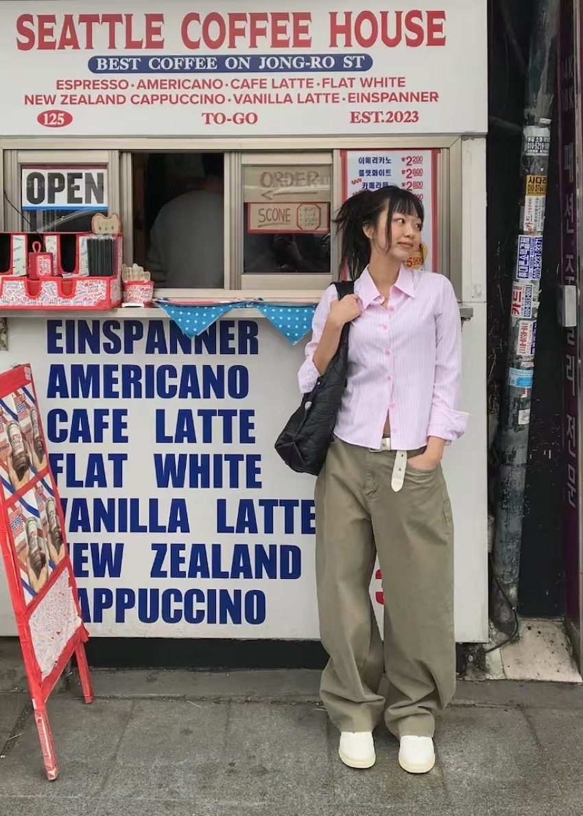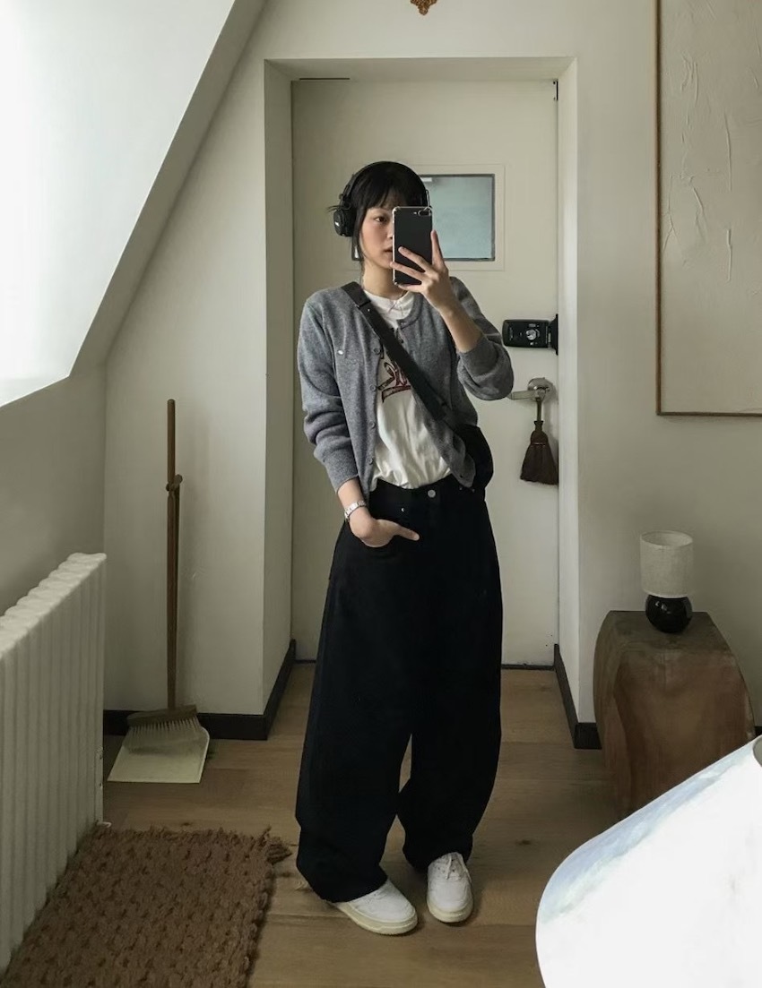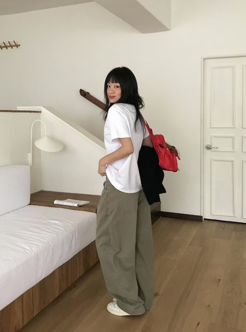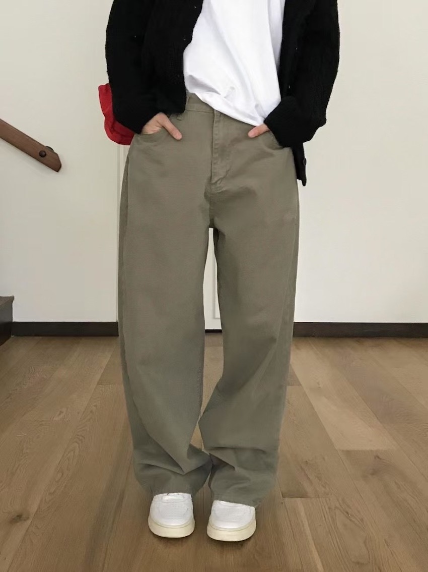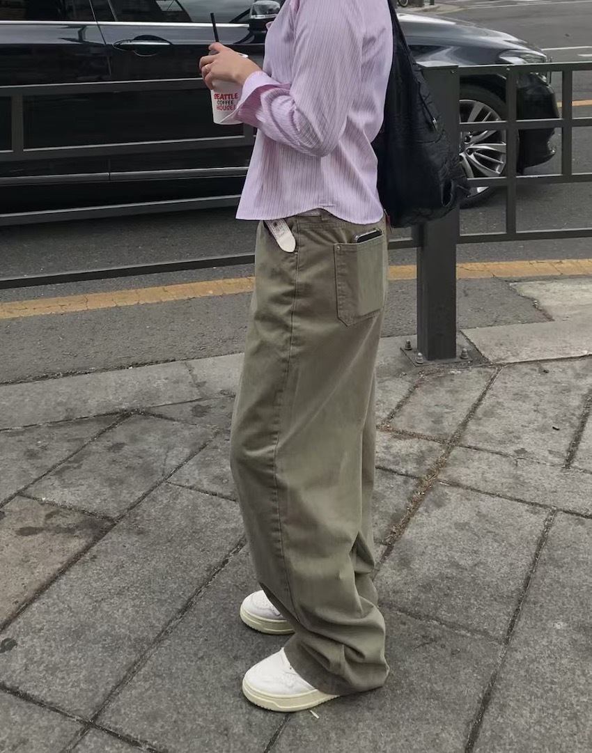 mini red label soft fine twill casual wide trousers in OLIVE & BLACK