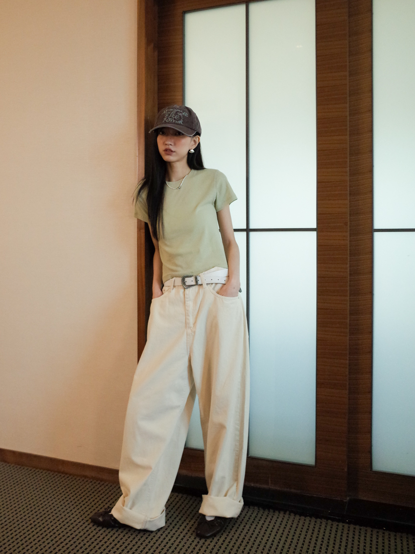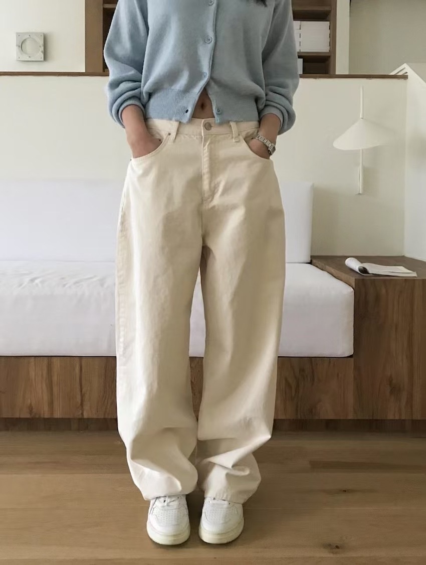 mini red label soft fine twill casual wide trousers in CREAM