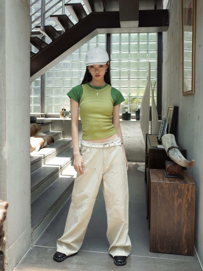 mini waffle check side ruched top