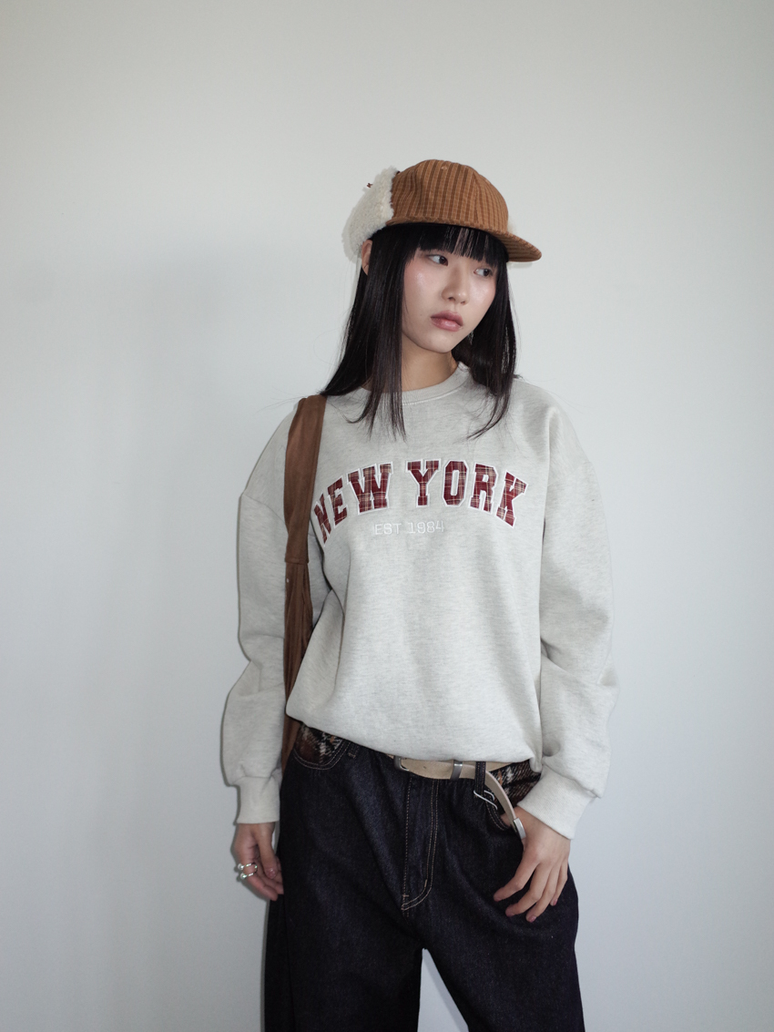 NY frame embroidery patchwork fleece sweatshirt