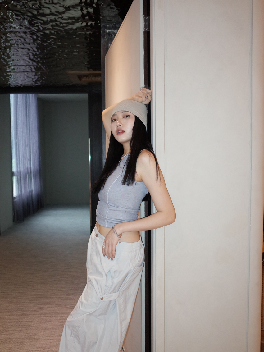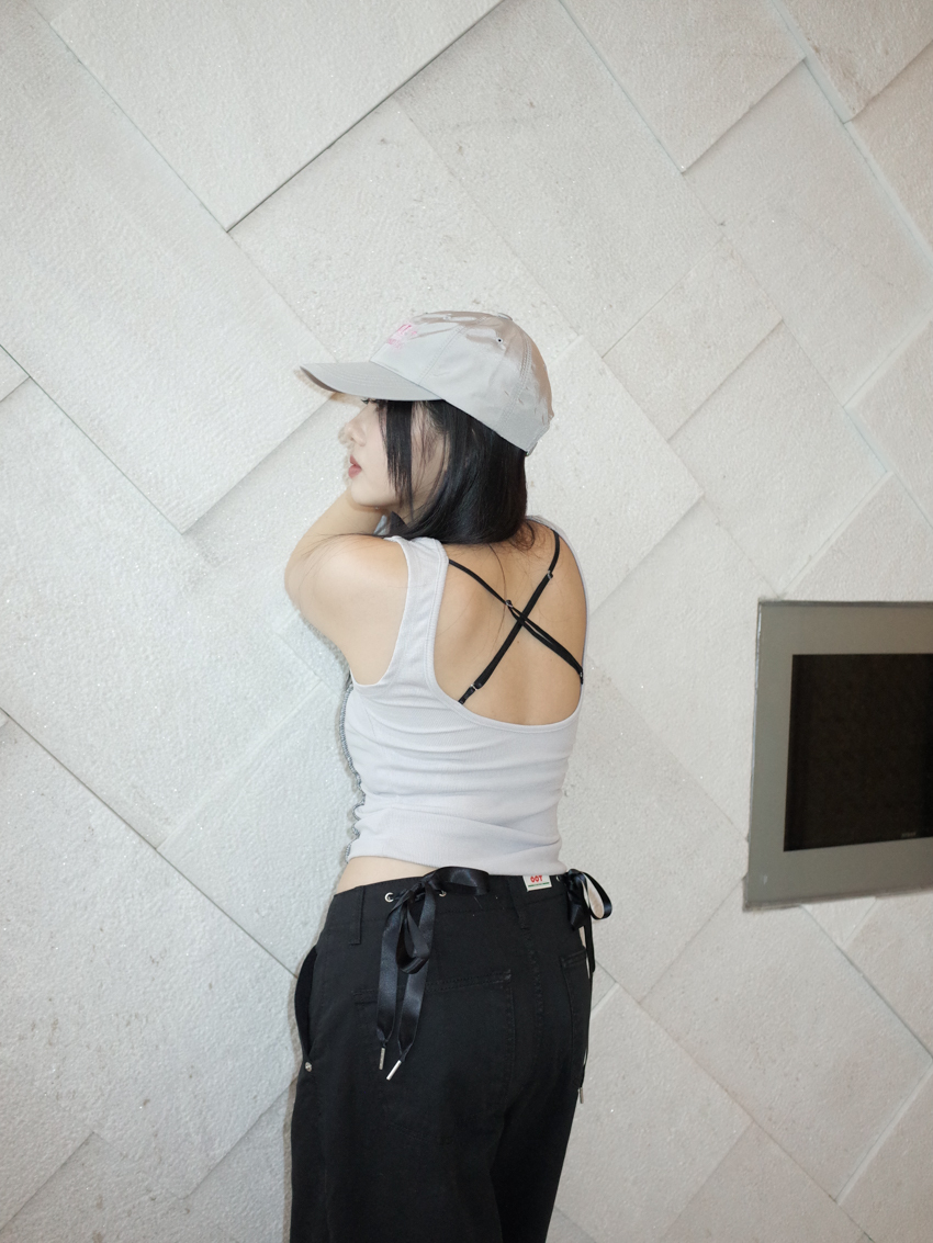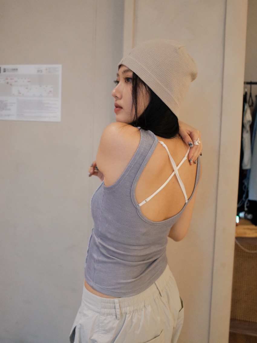overlock stitch waistline adjustable strap cross back vest