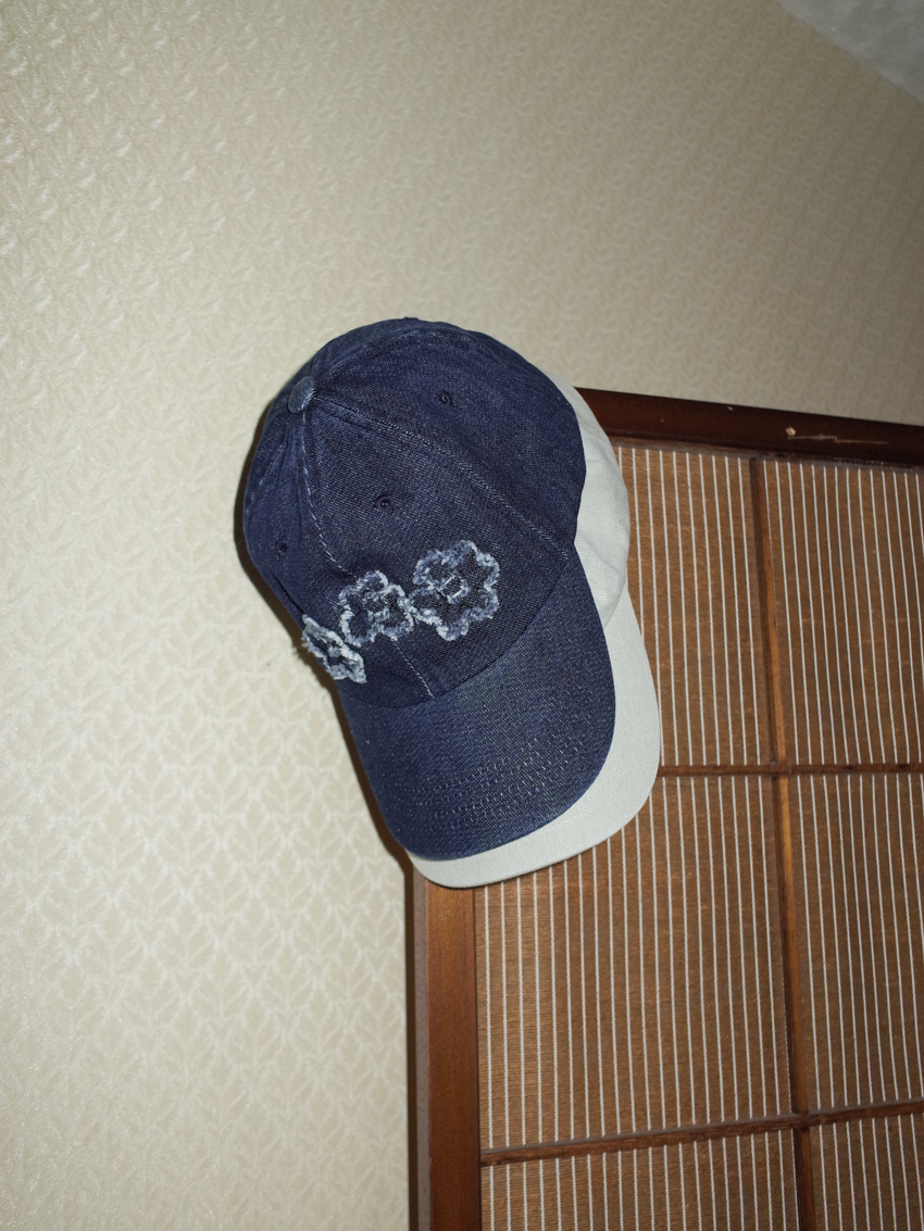 raw-edge floral cap