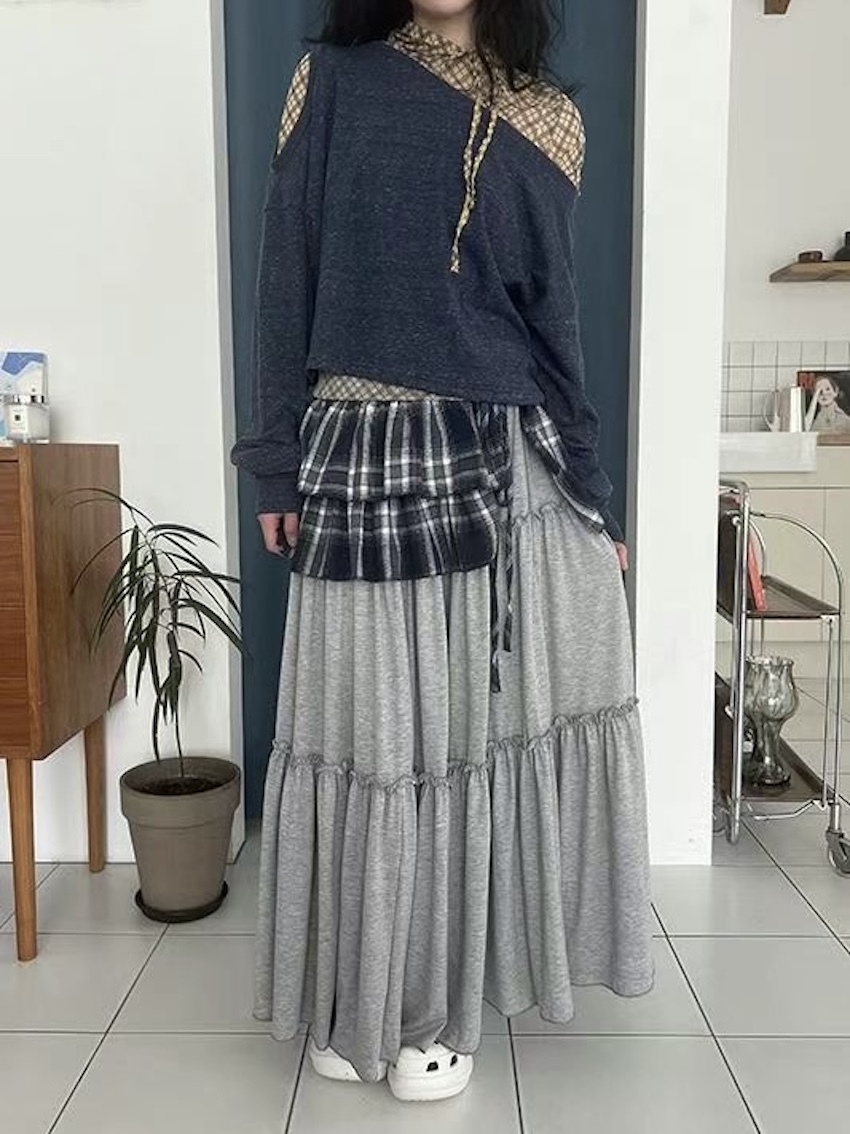 ruffled cake cotton maxi dress