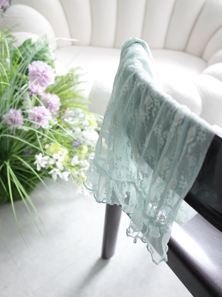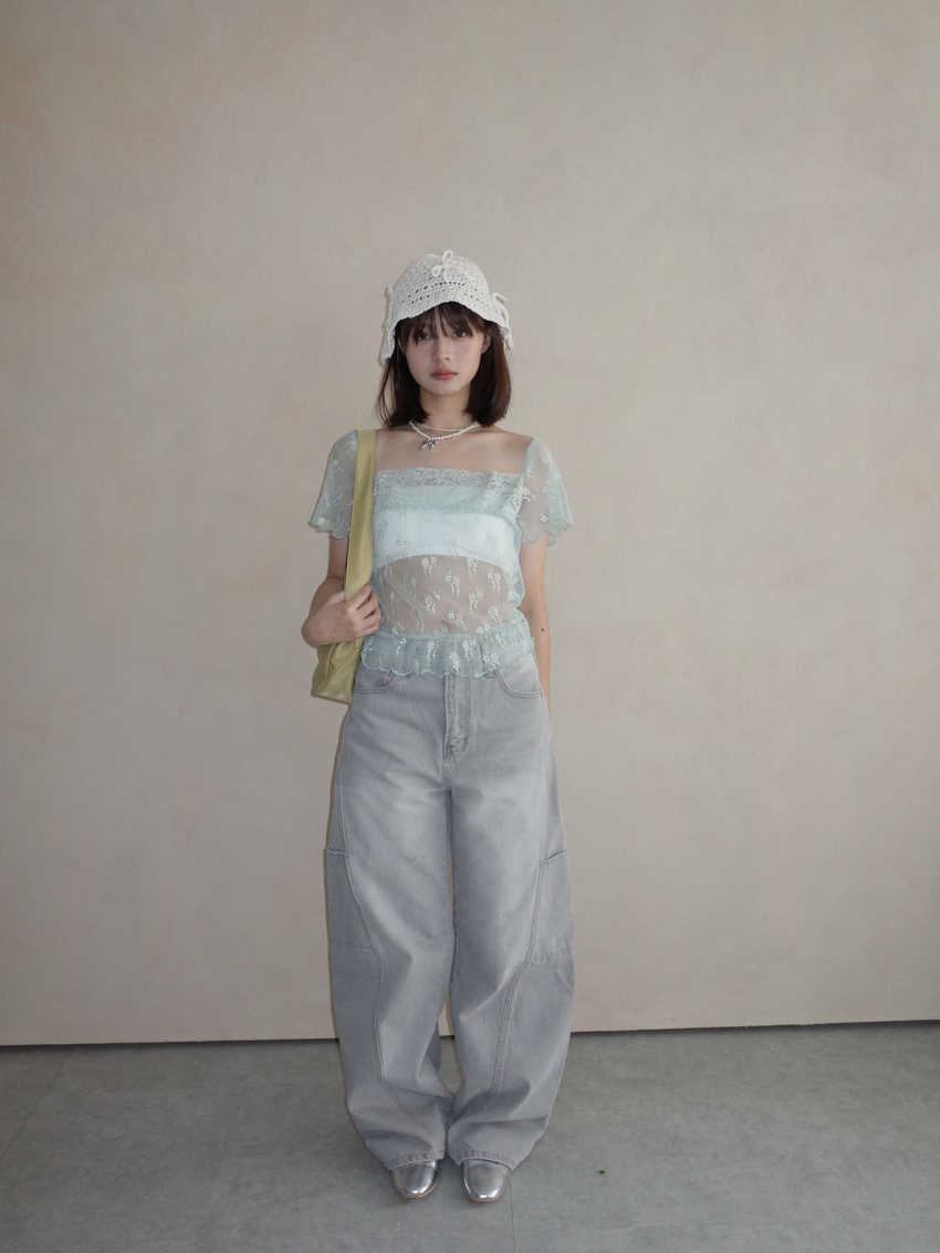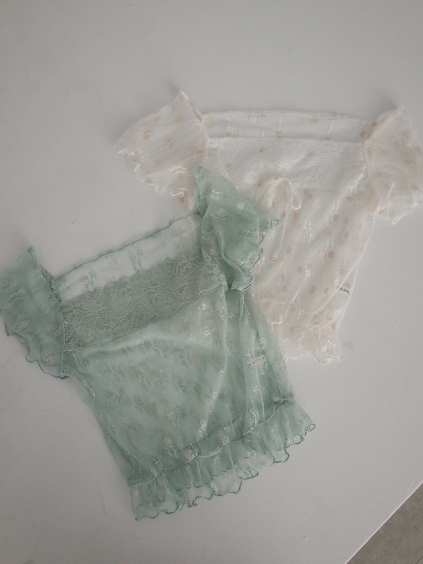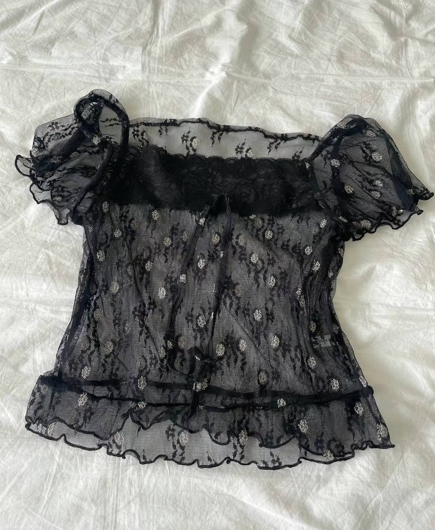 sheer lace knotted small flower embroidered square neck top