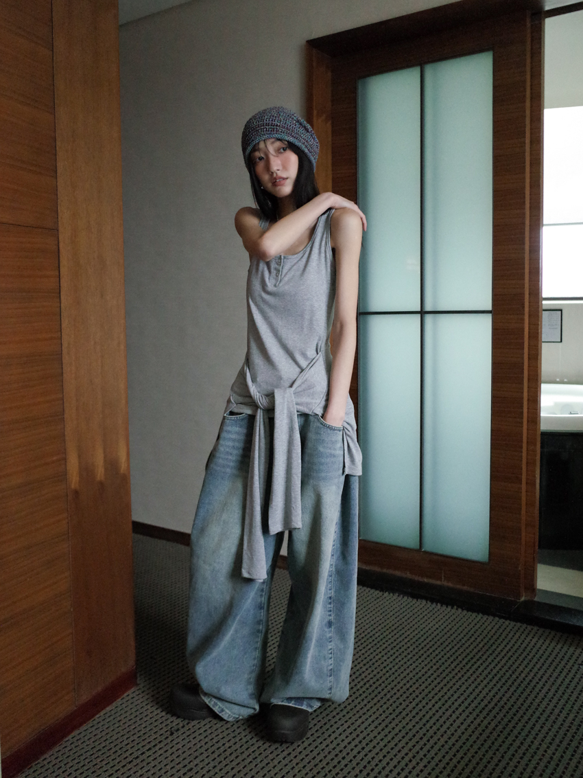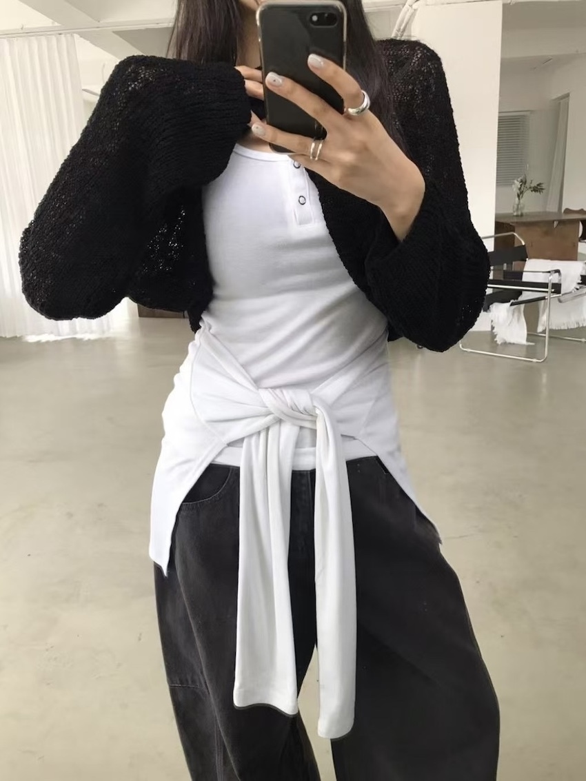 彈性大 腰間綁的像真的一件長袖一樣逼真!