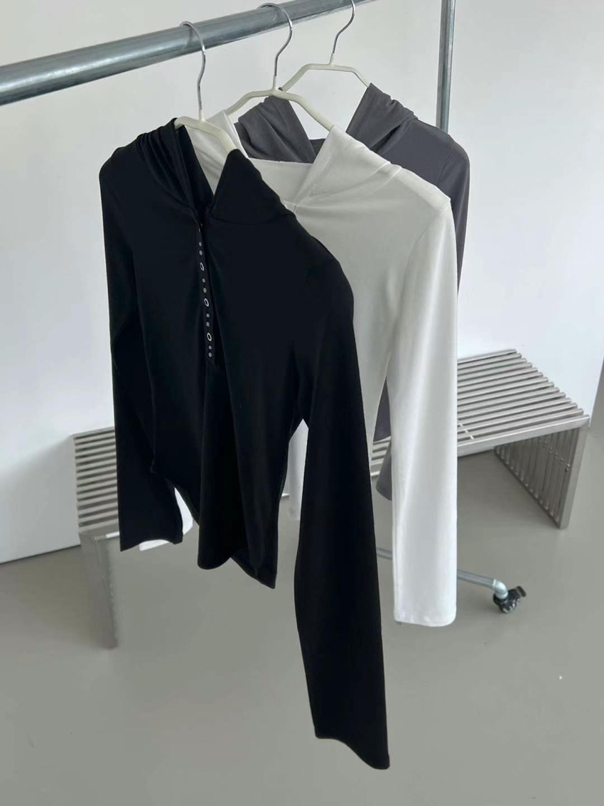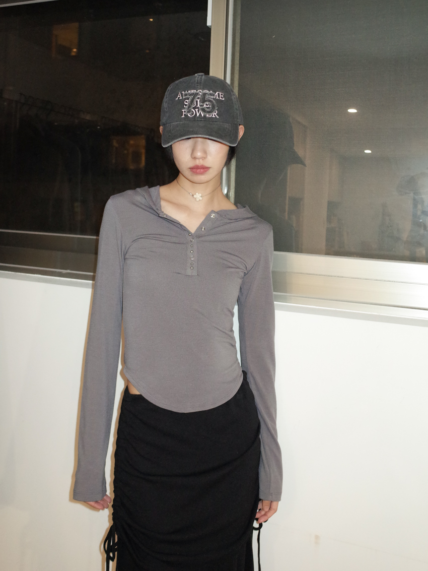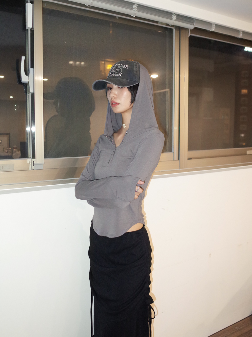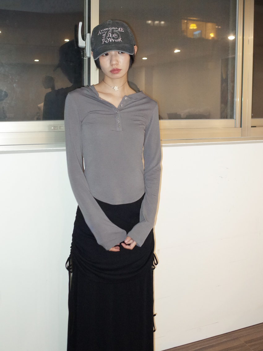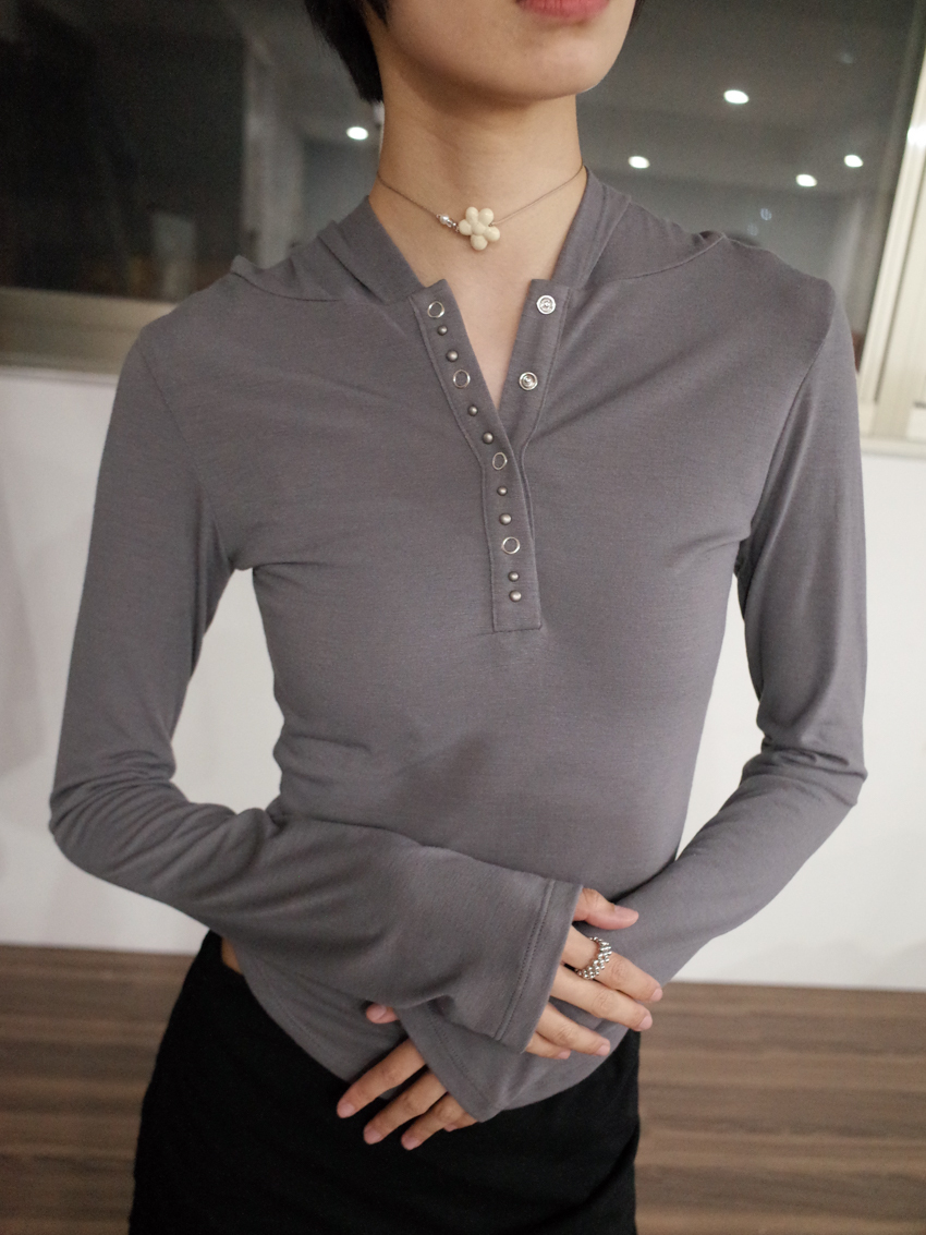 studded mix button waist hooded top