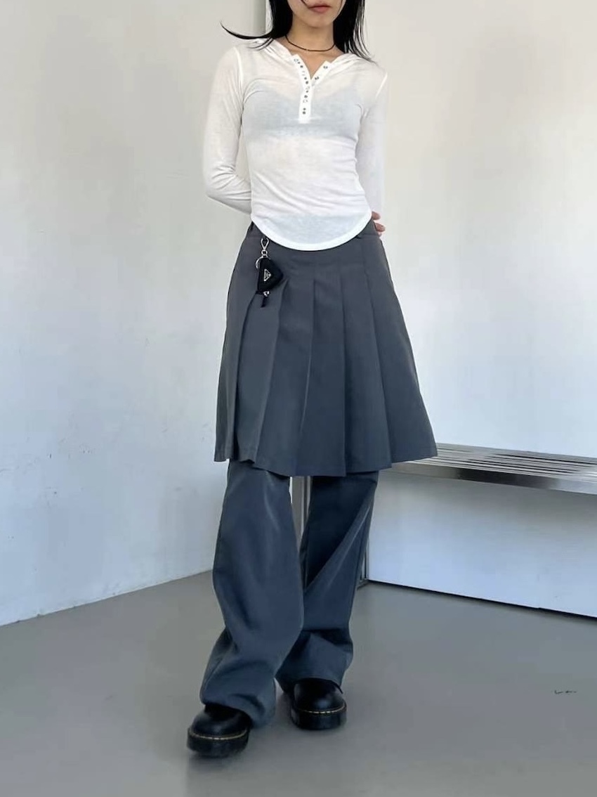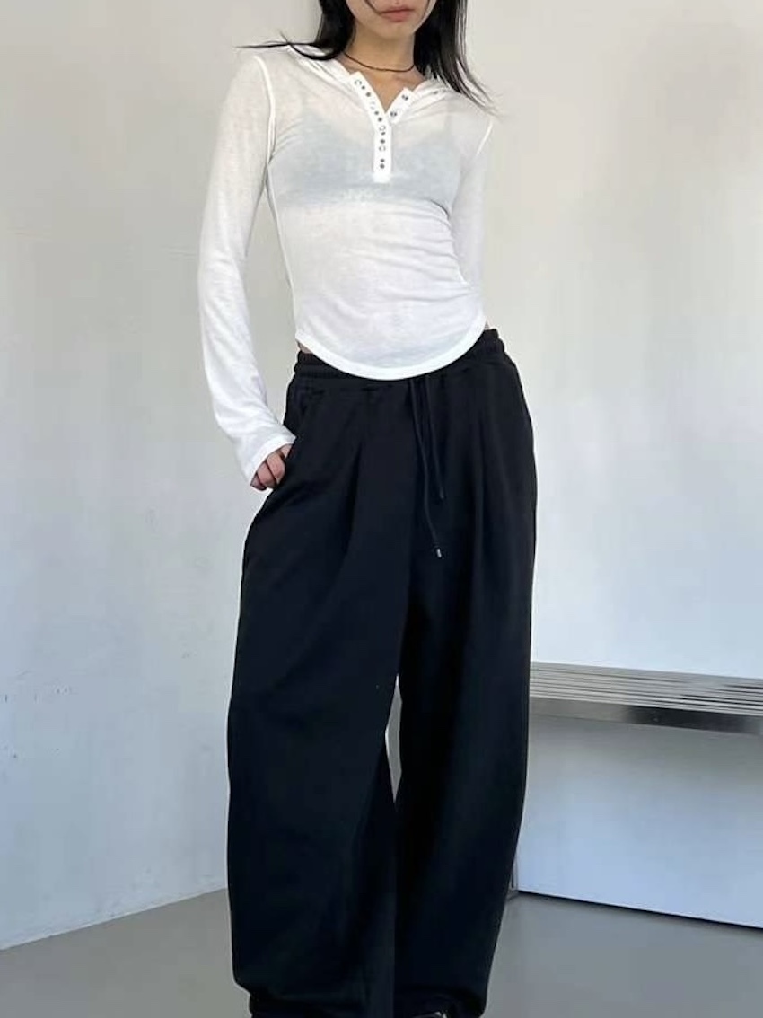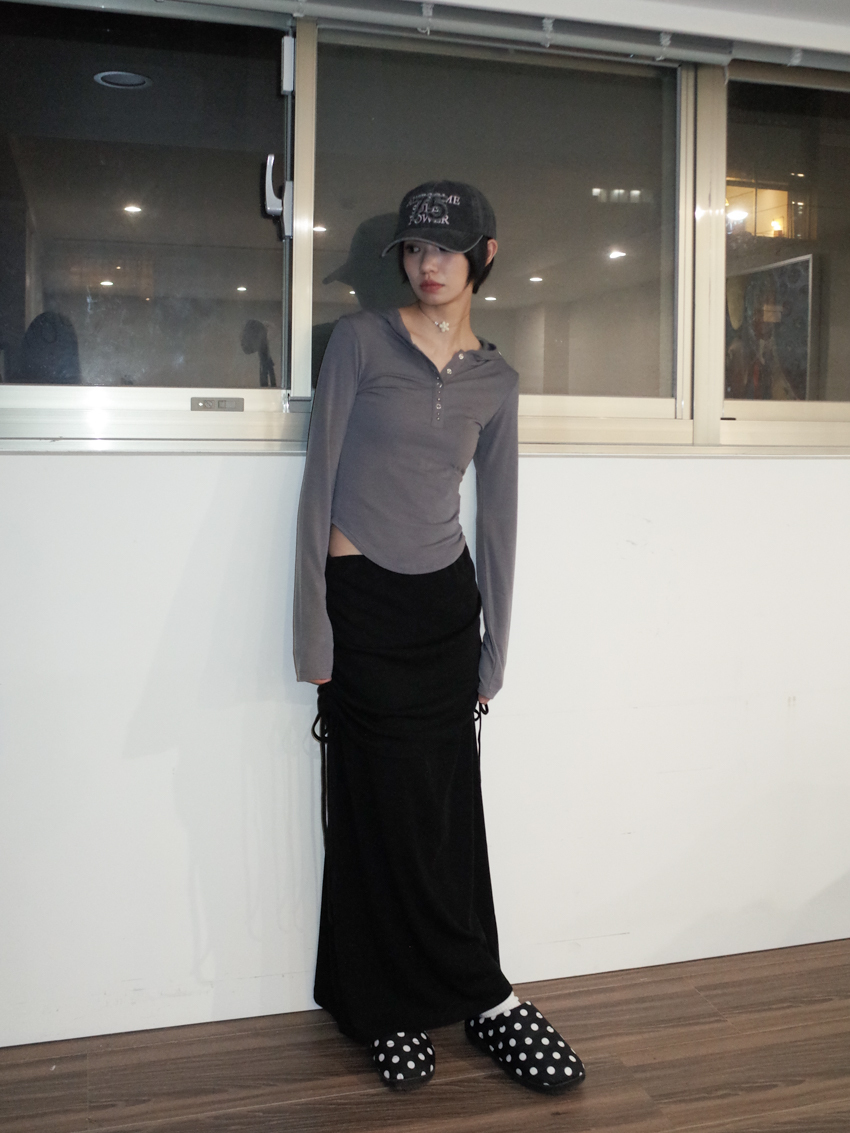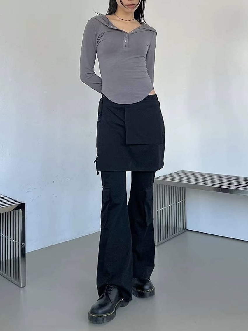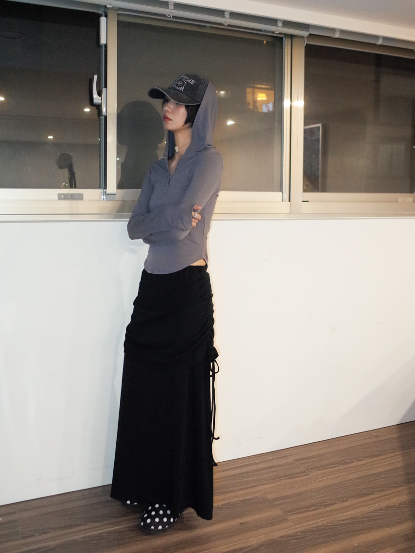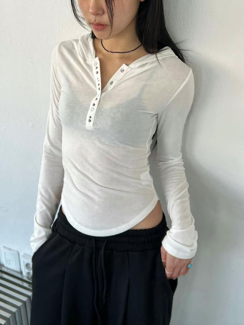studded mix button waist hooded top