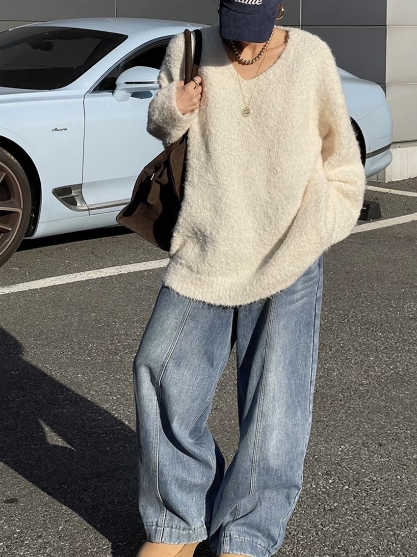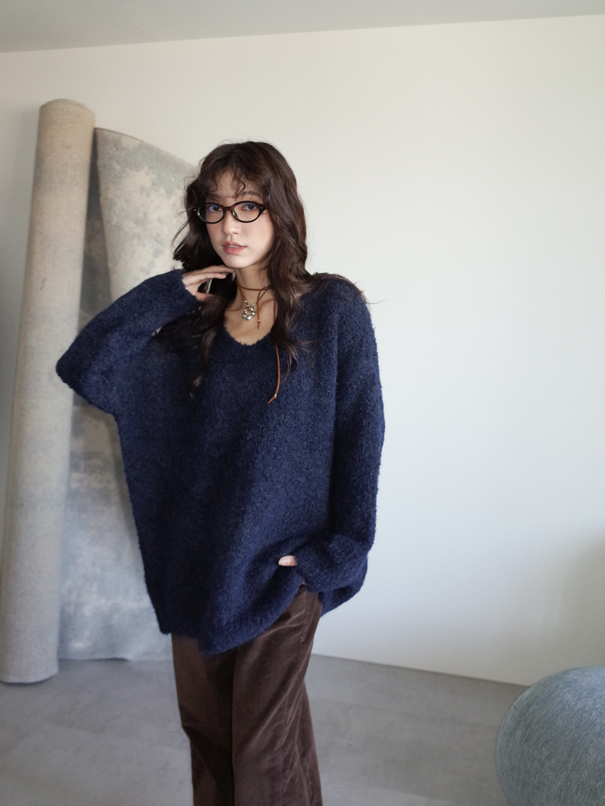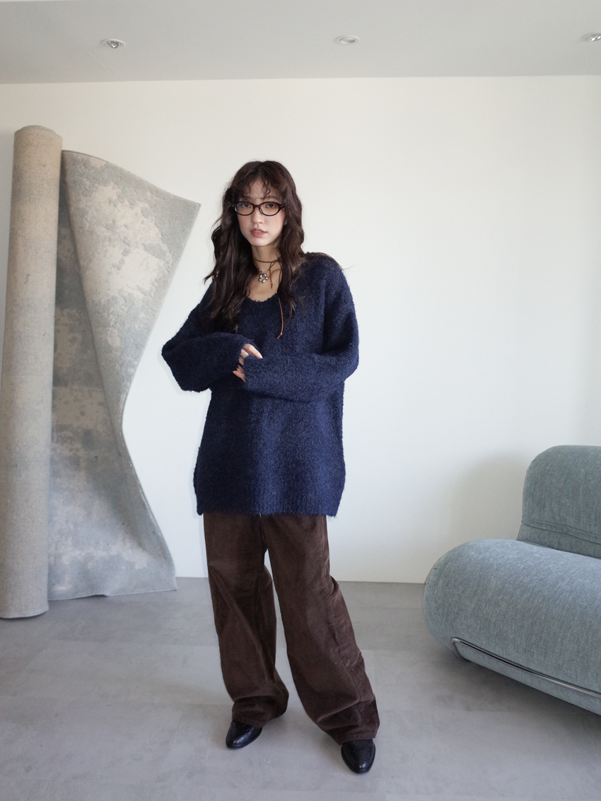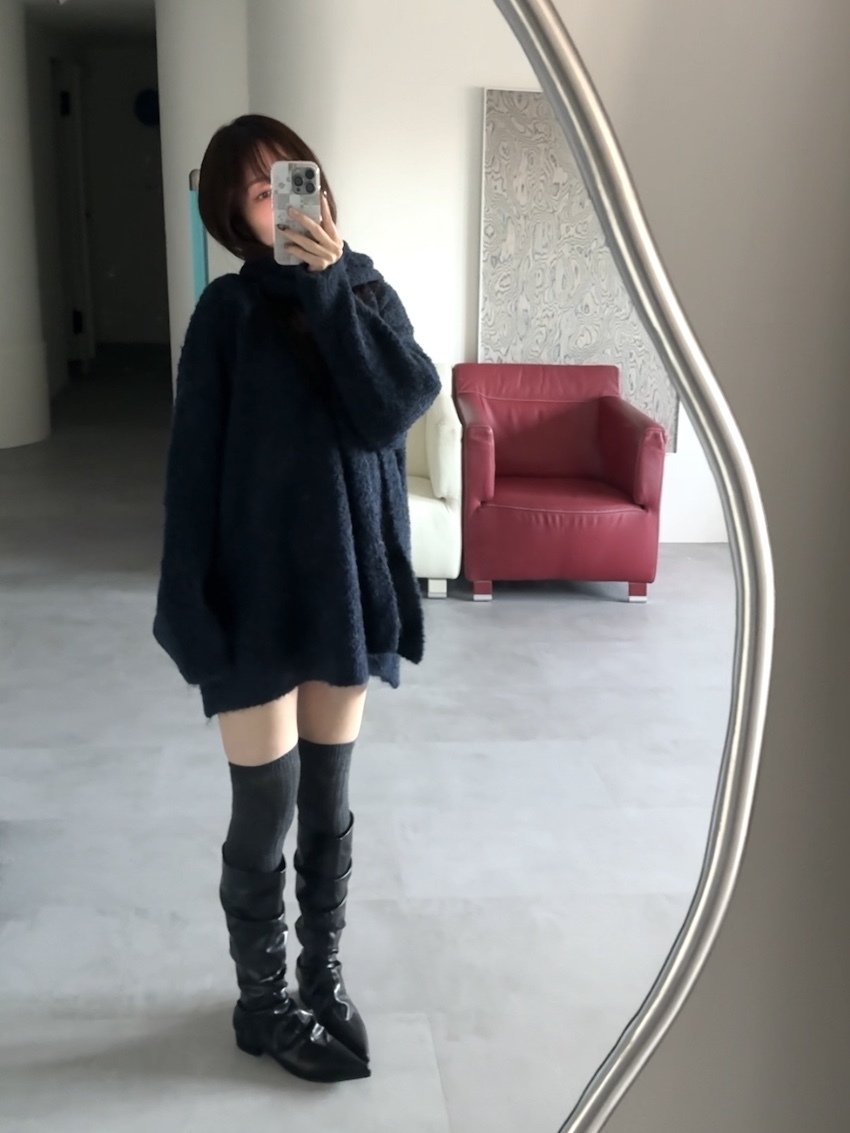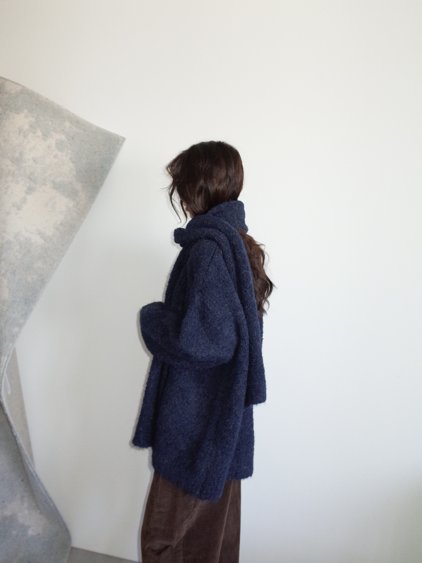 teddy plush slub knit slouchy sweater with scarf