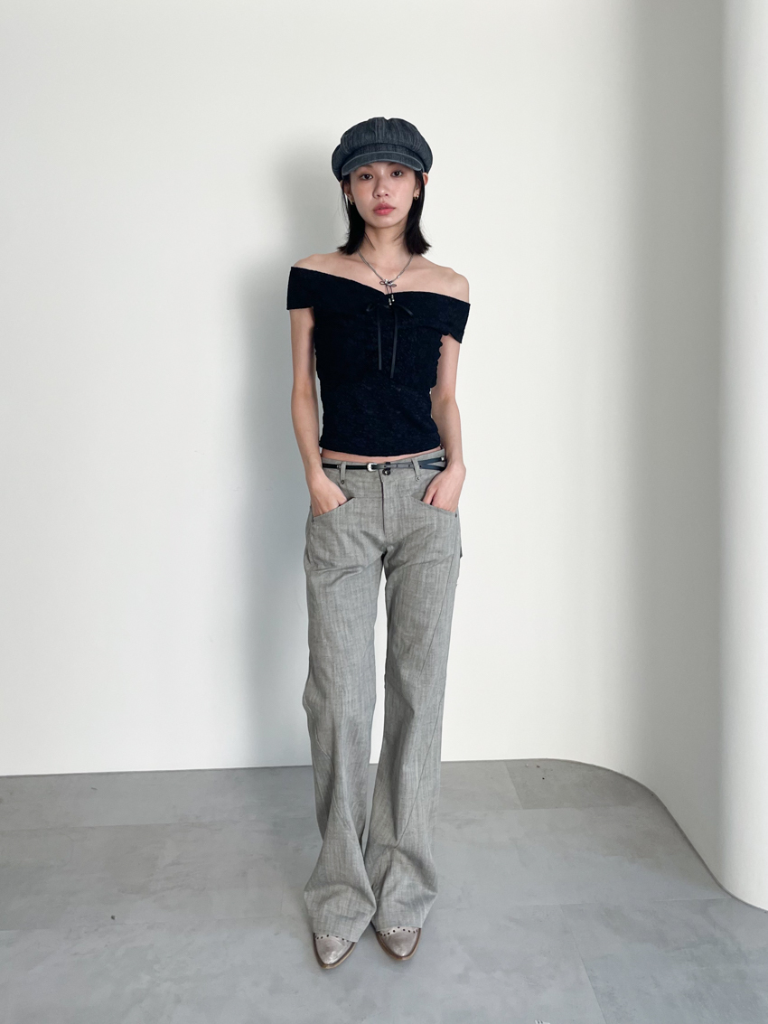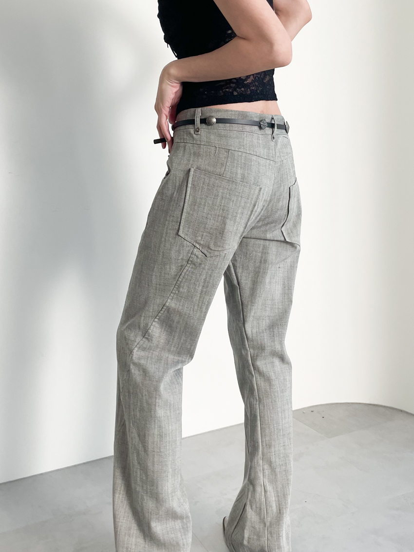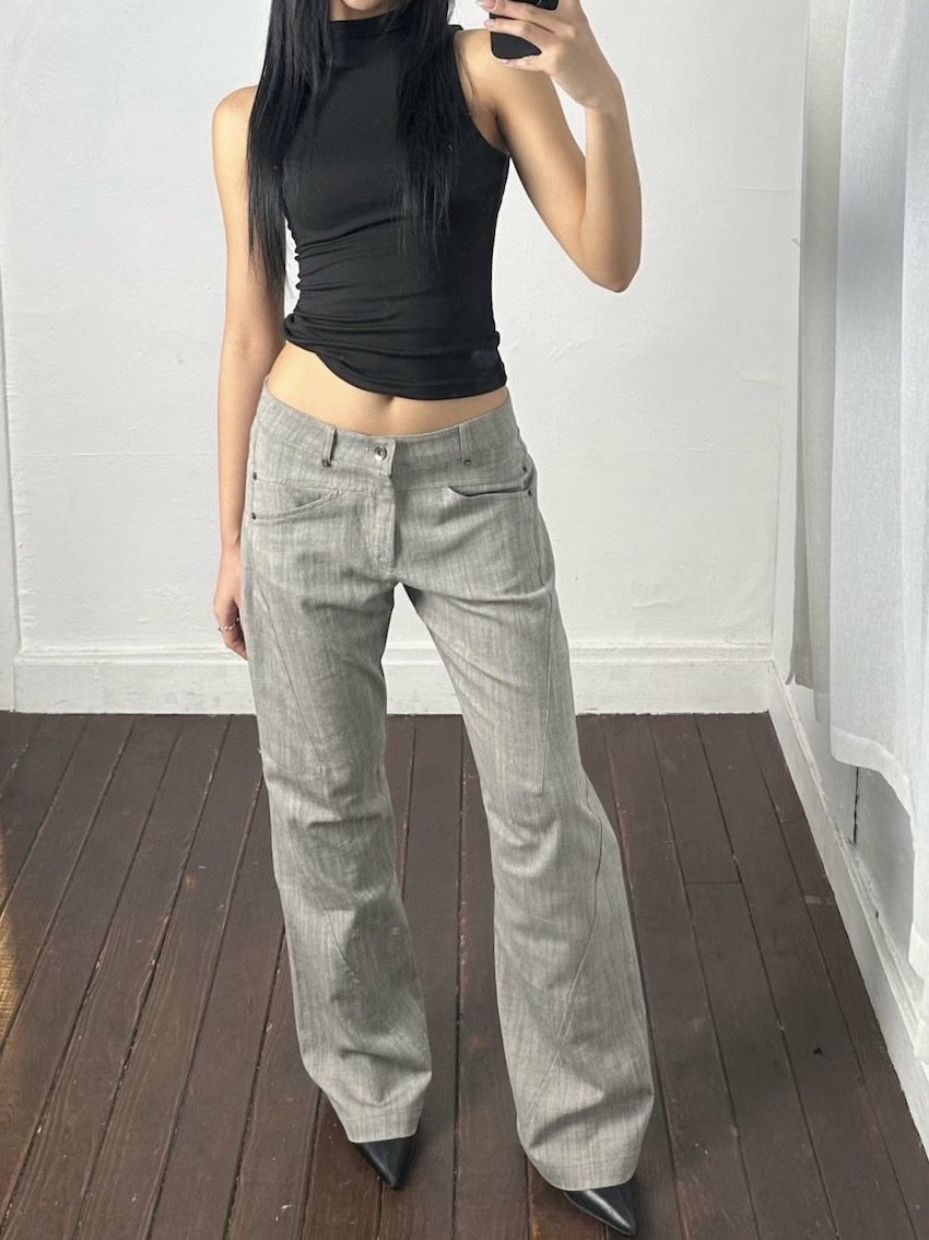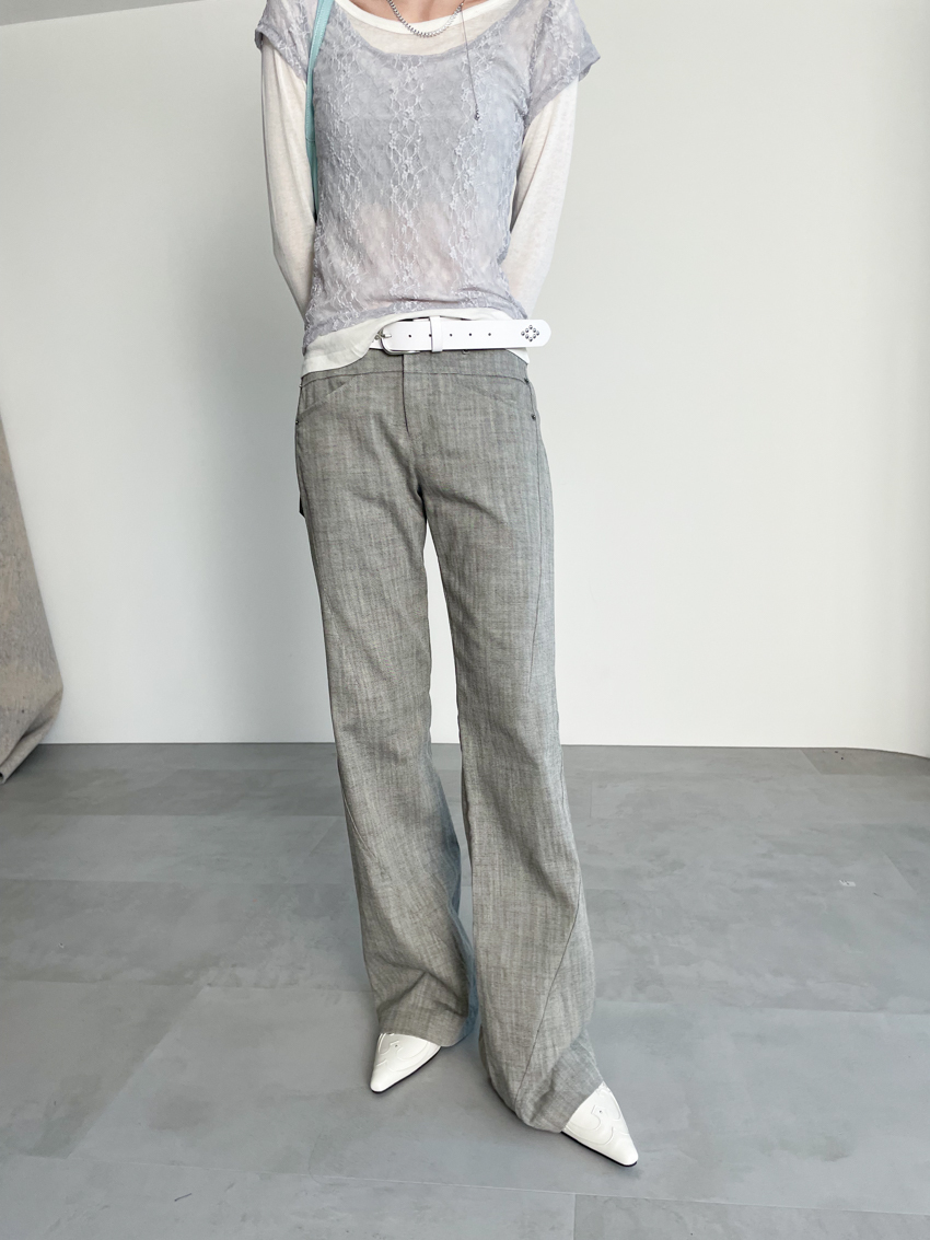 textured slim mid-low bootcut trousers in GRAY