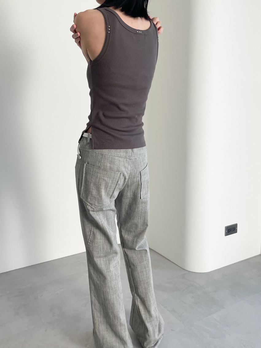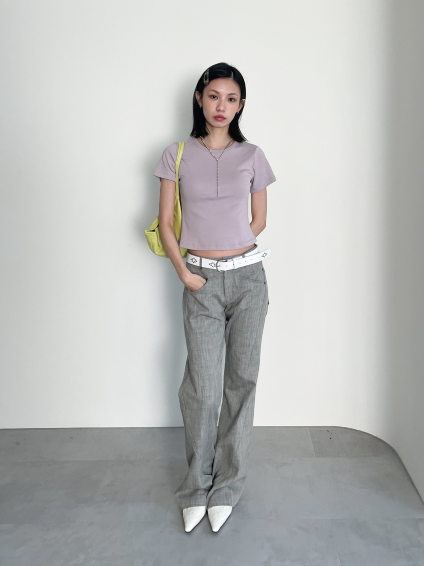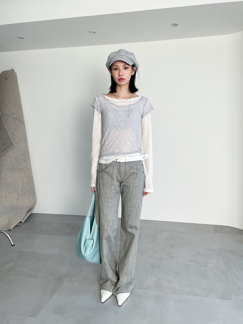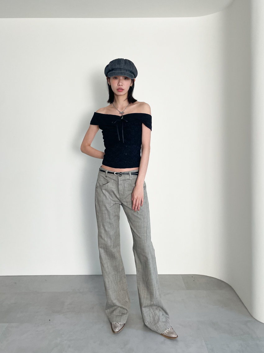 textured slim mid-low bootcut trousers in GRAY