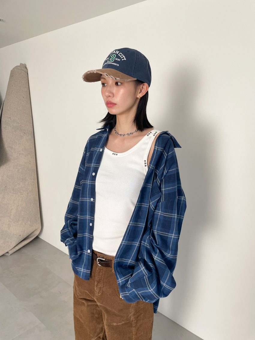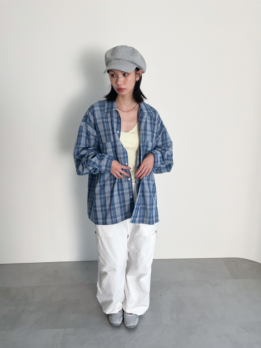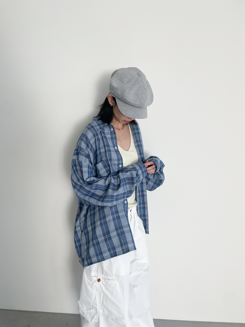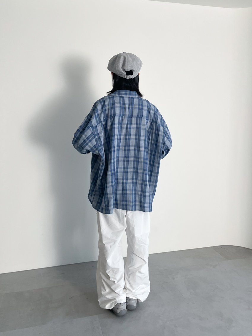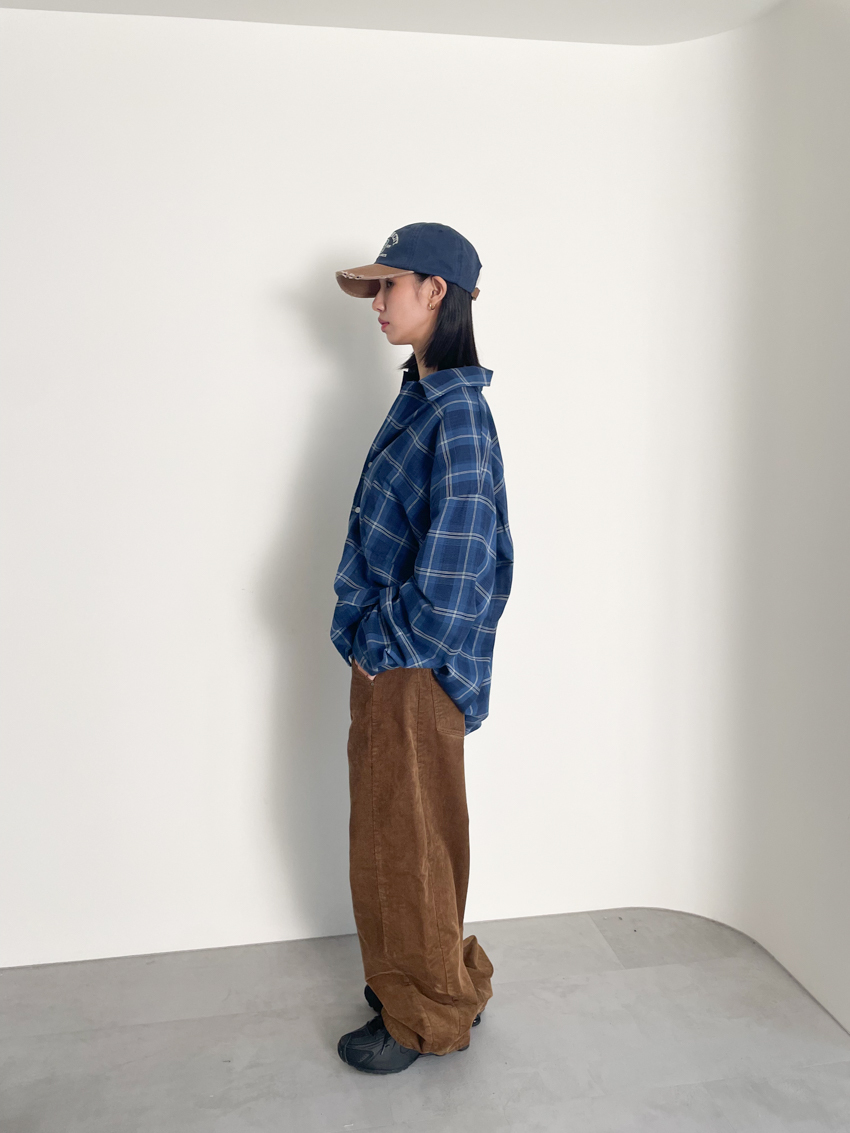 (UNISEX) blue soft loose plaid shirt