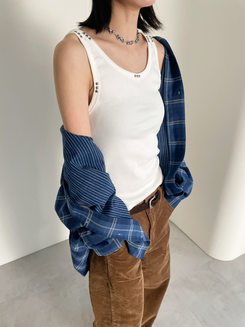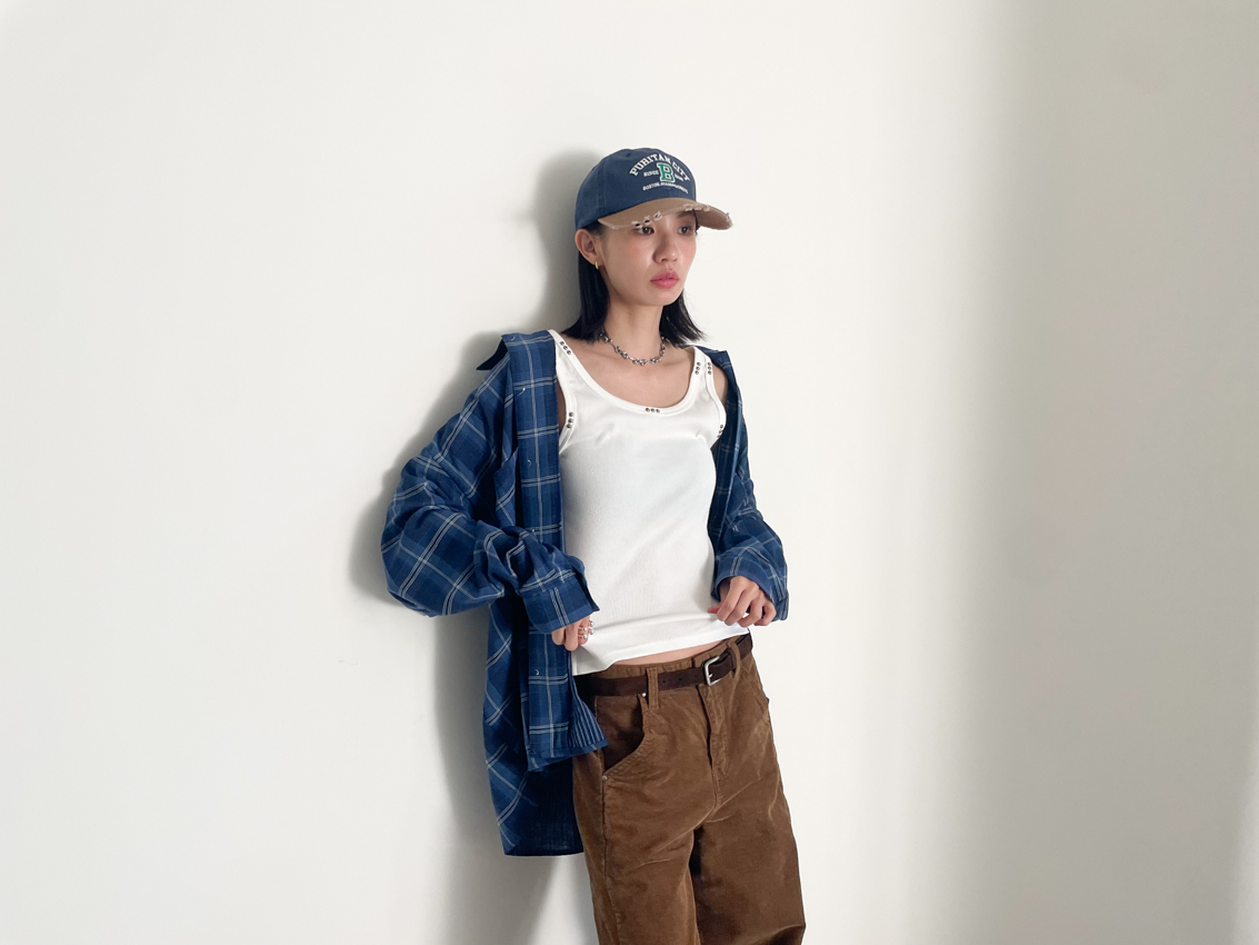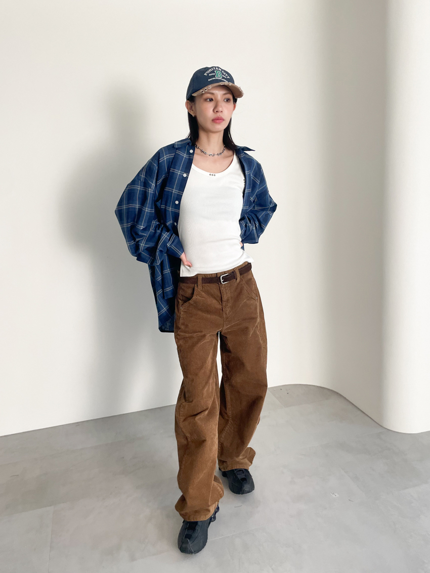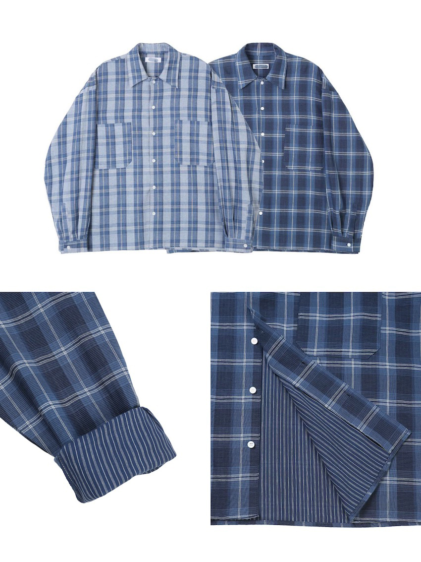 (UNISEX) blue soft loose plaid shirt