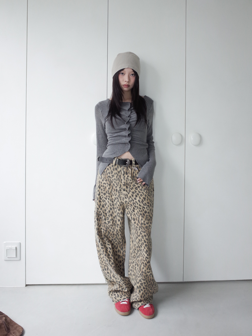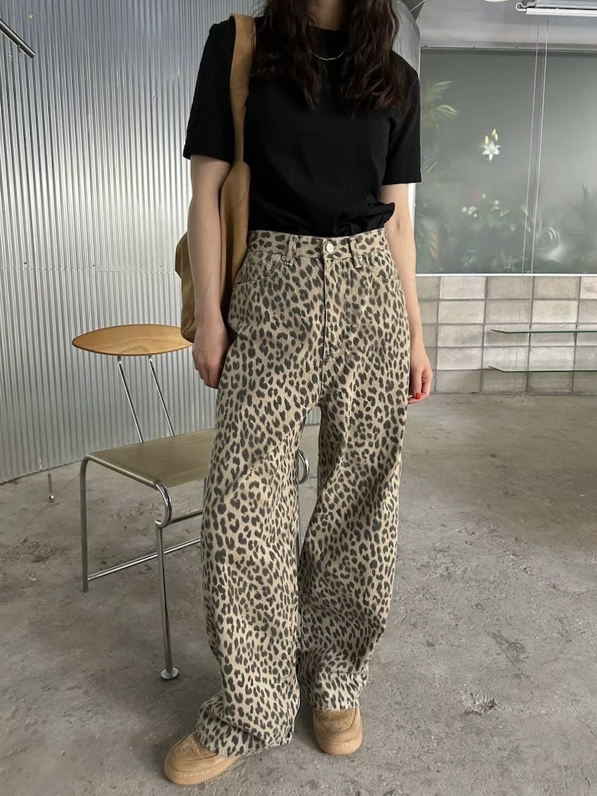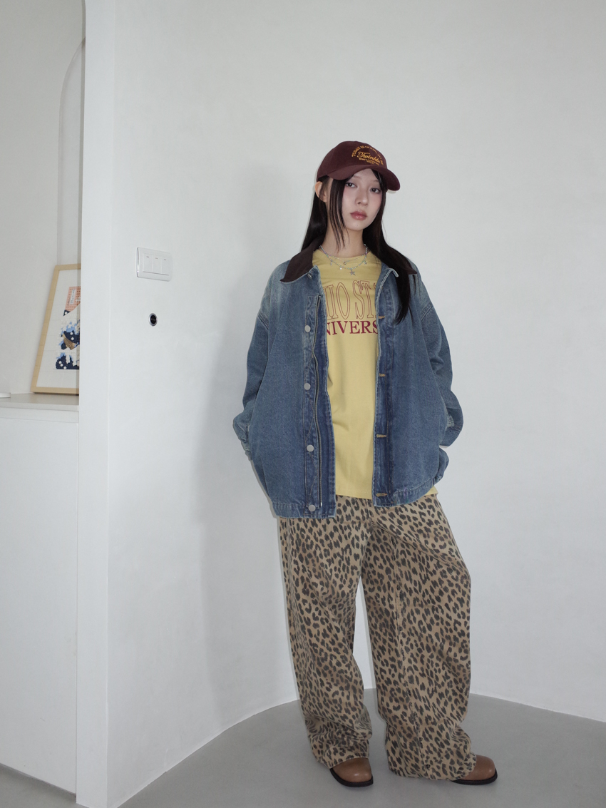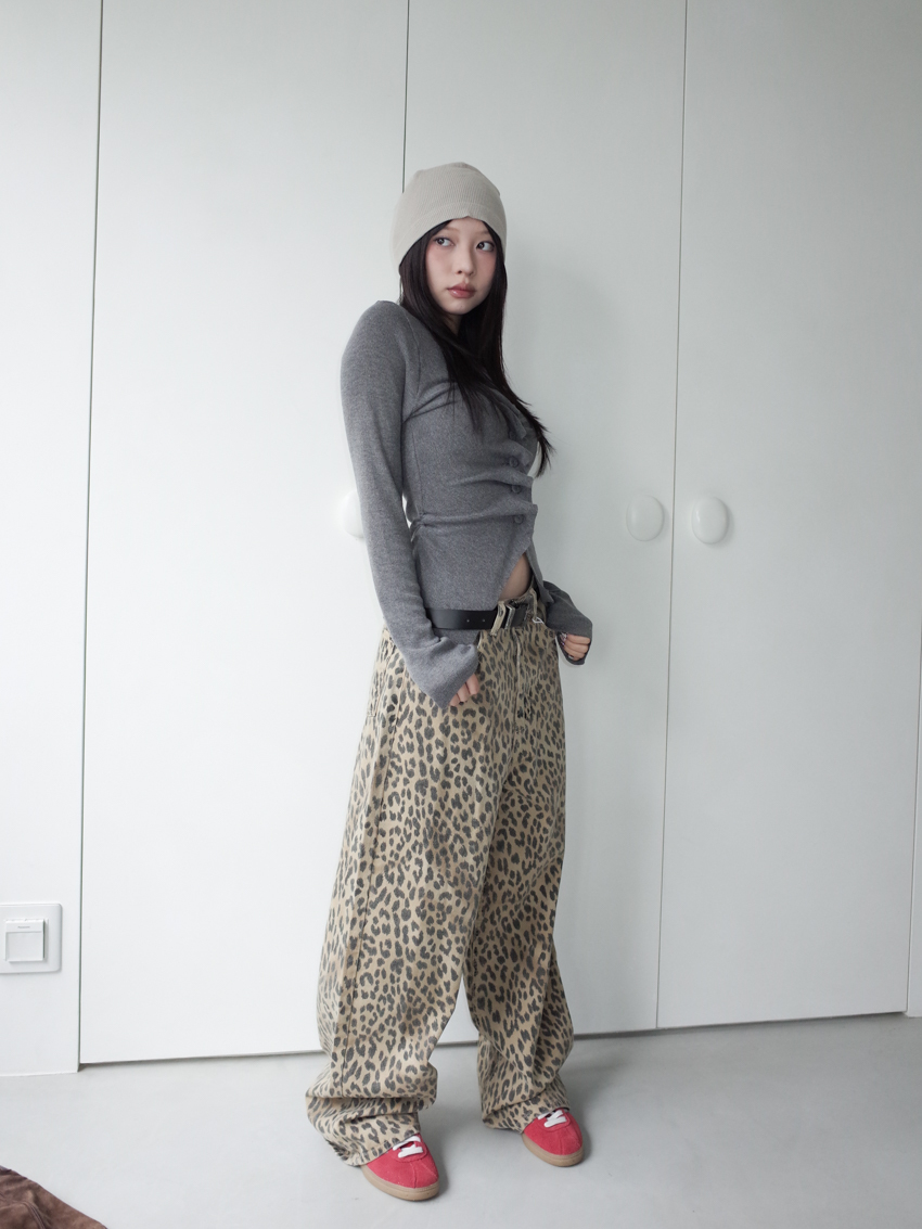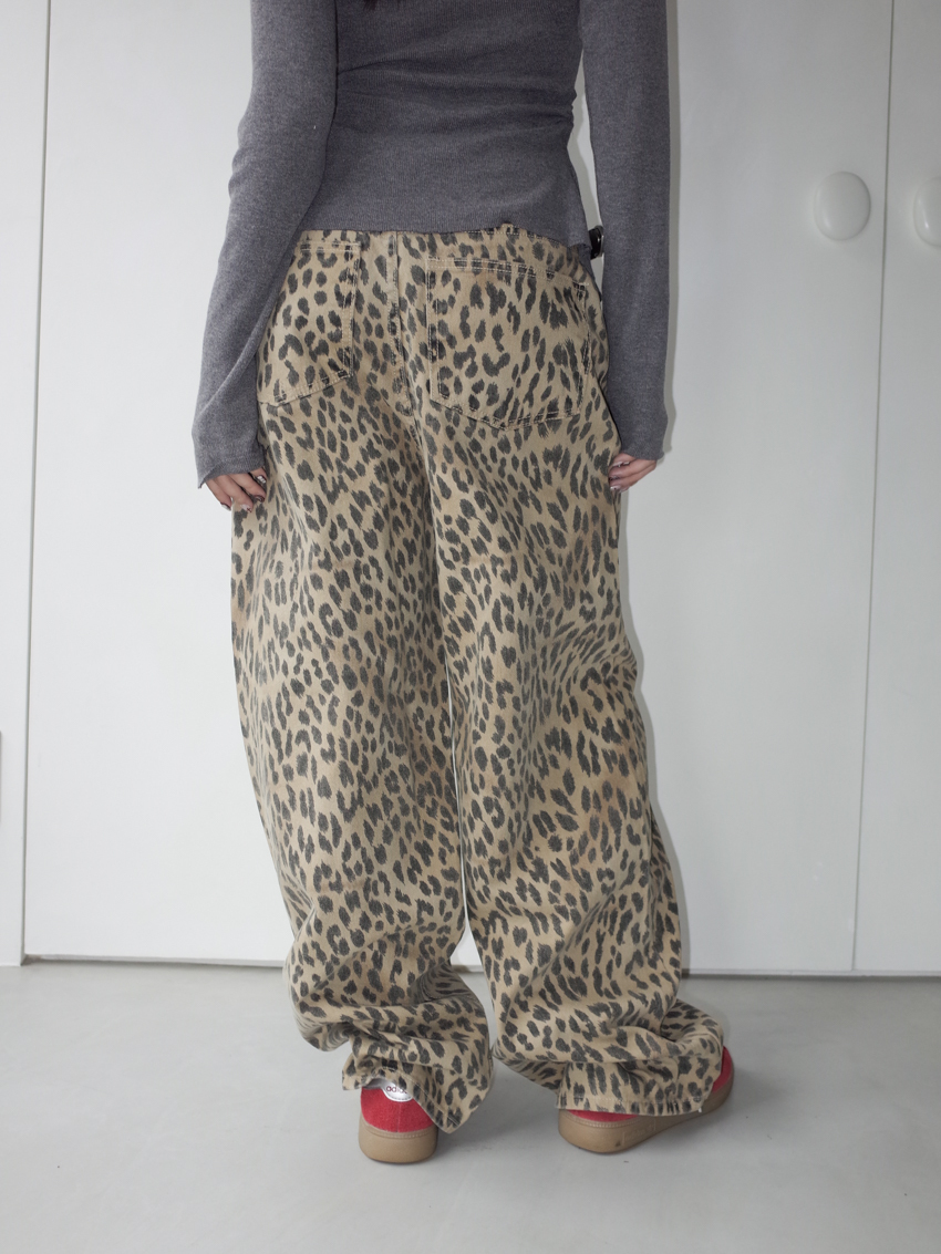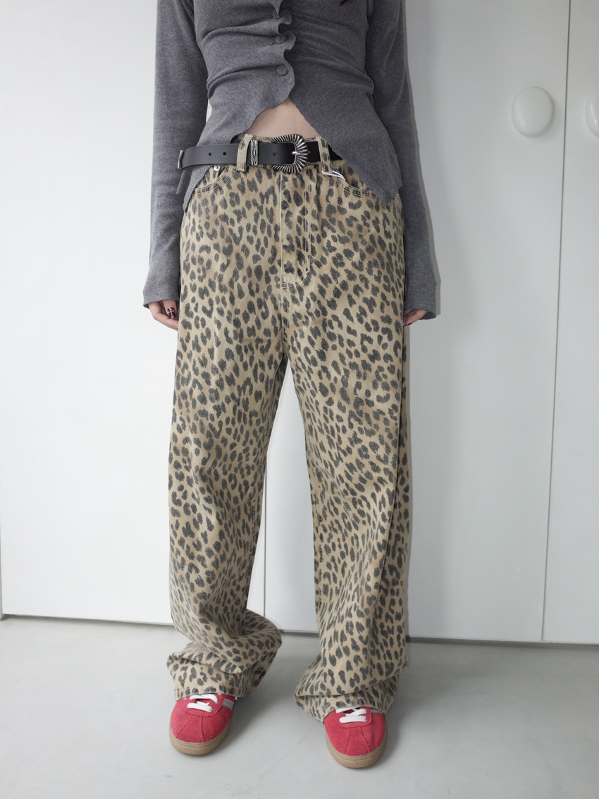 (Jennie vibes!) perfect fit leather label leopard print washed straight pants