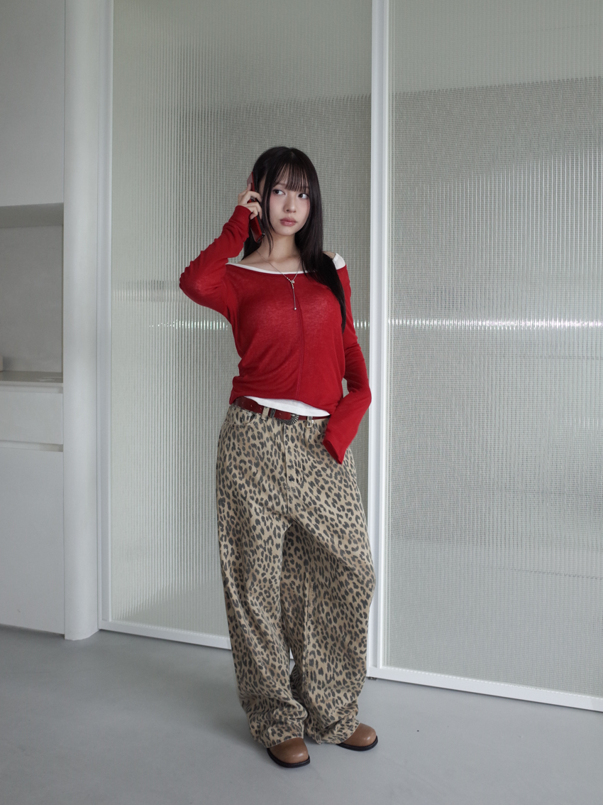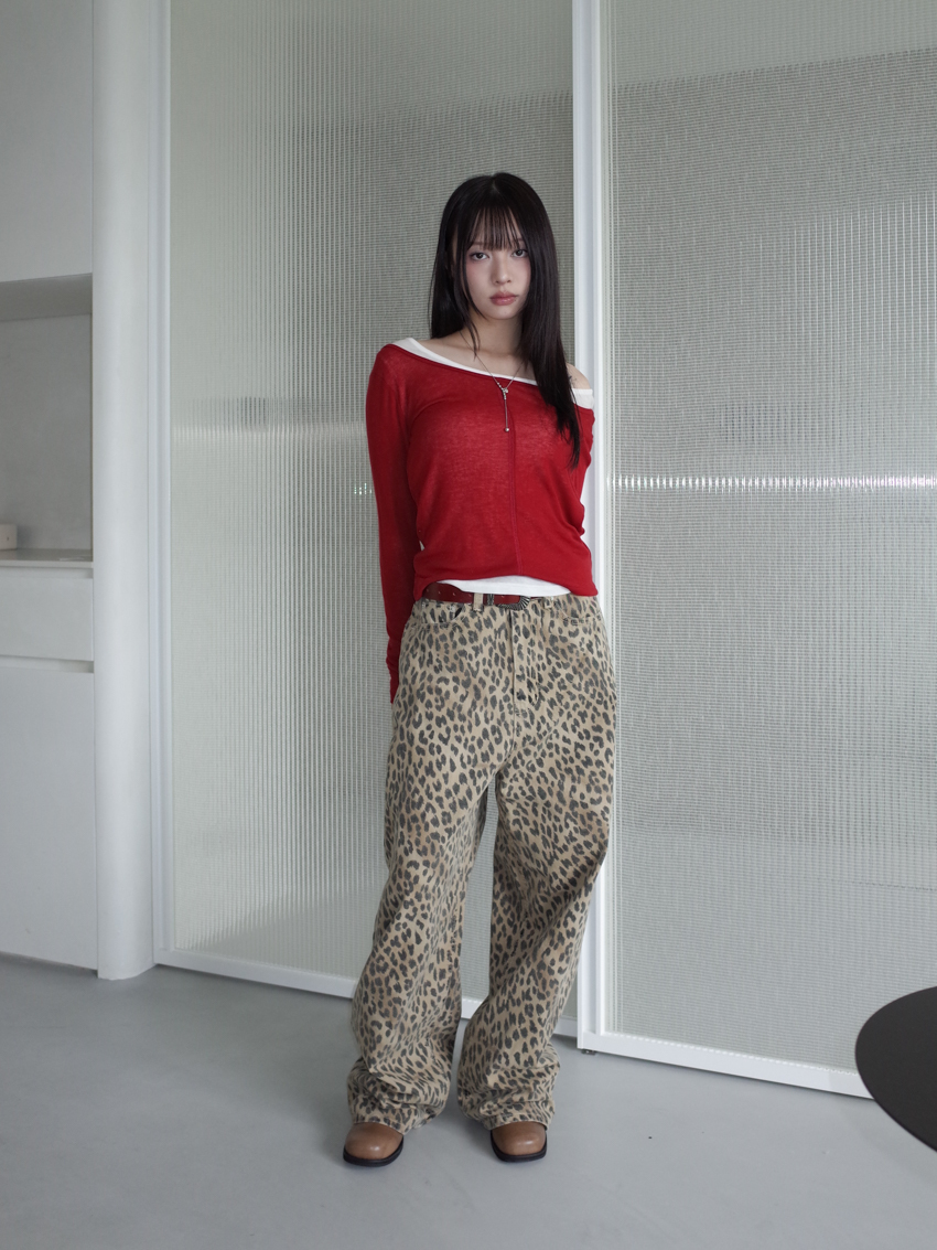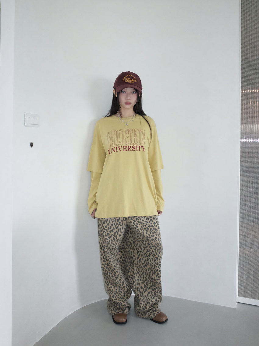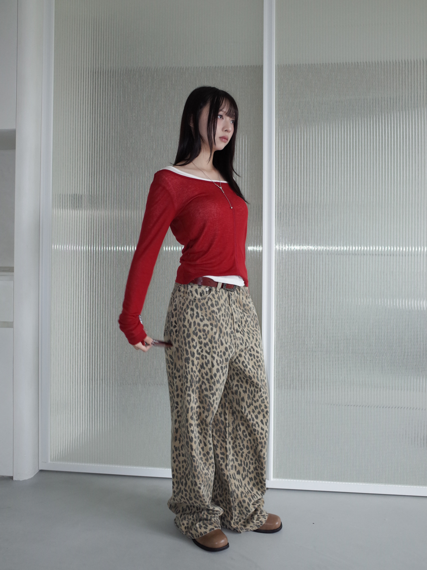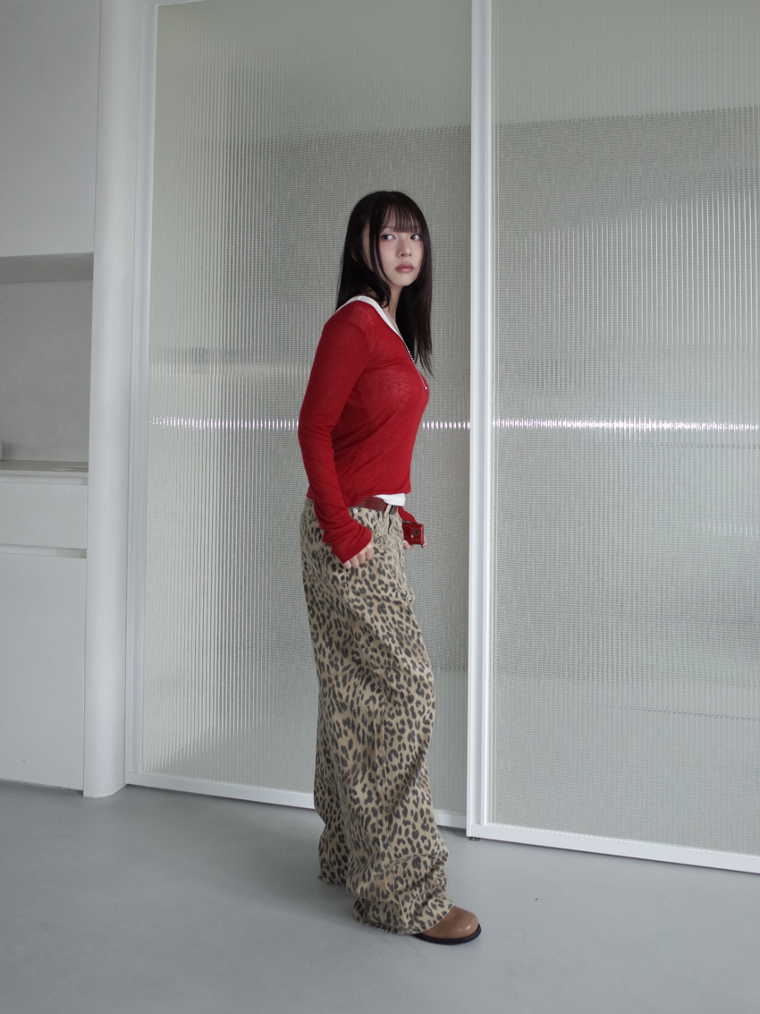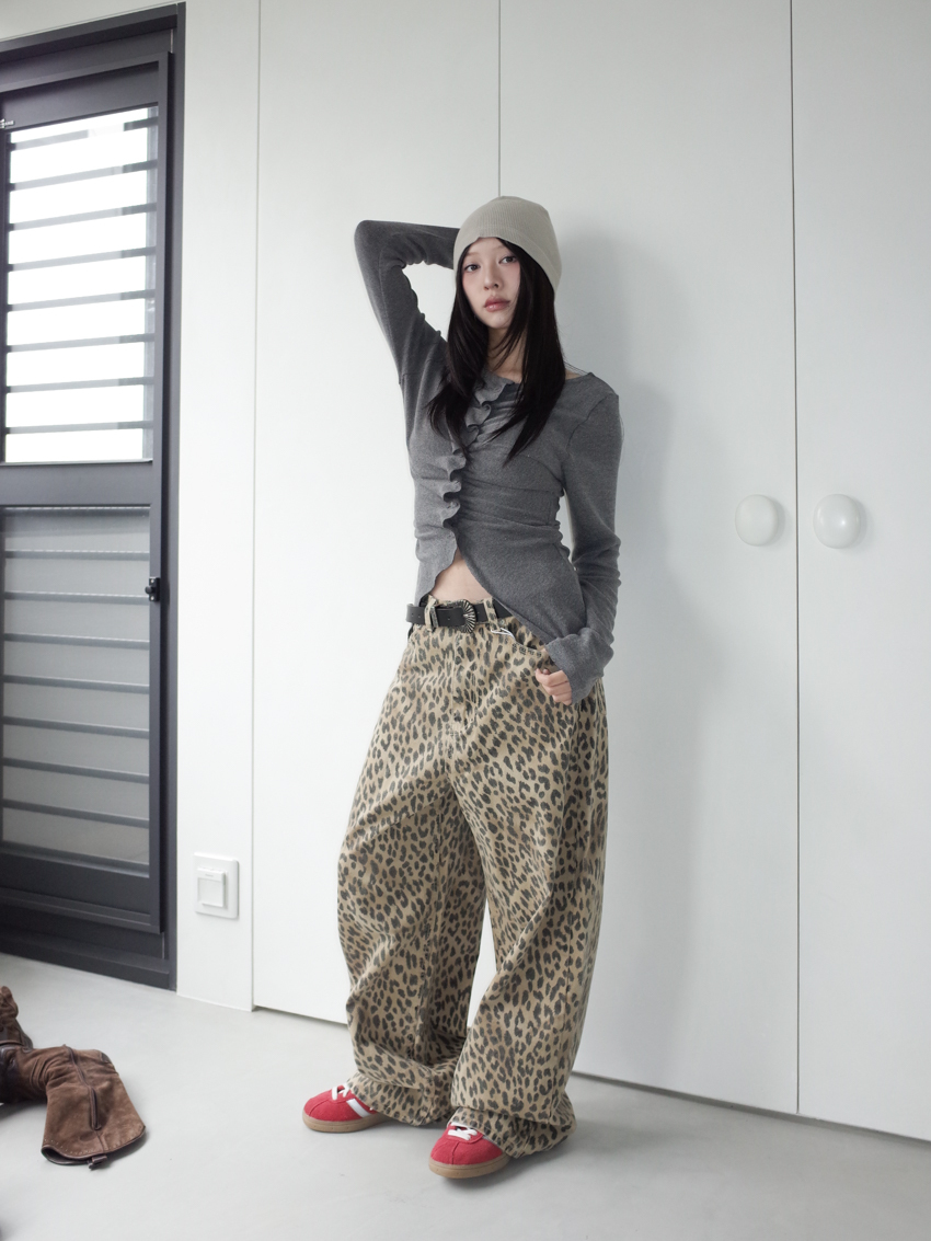 (Jennie vibes!) perfect fit leather label leopard print washed straight pants