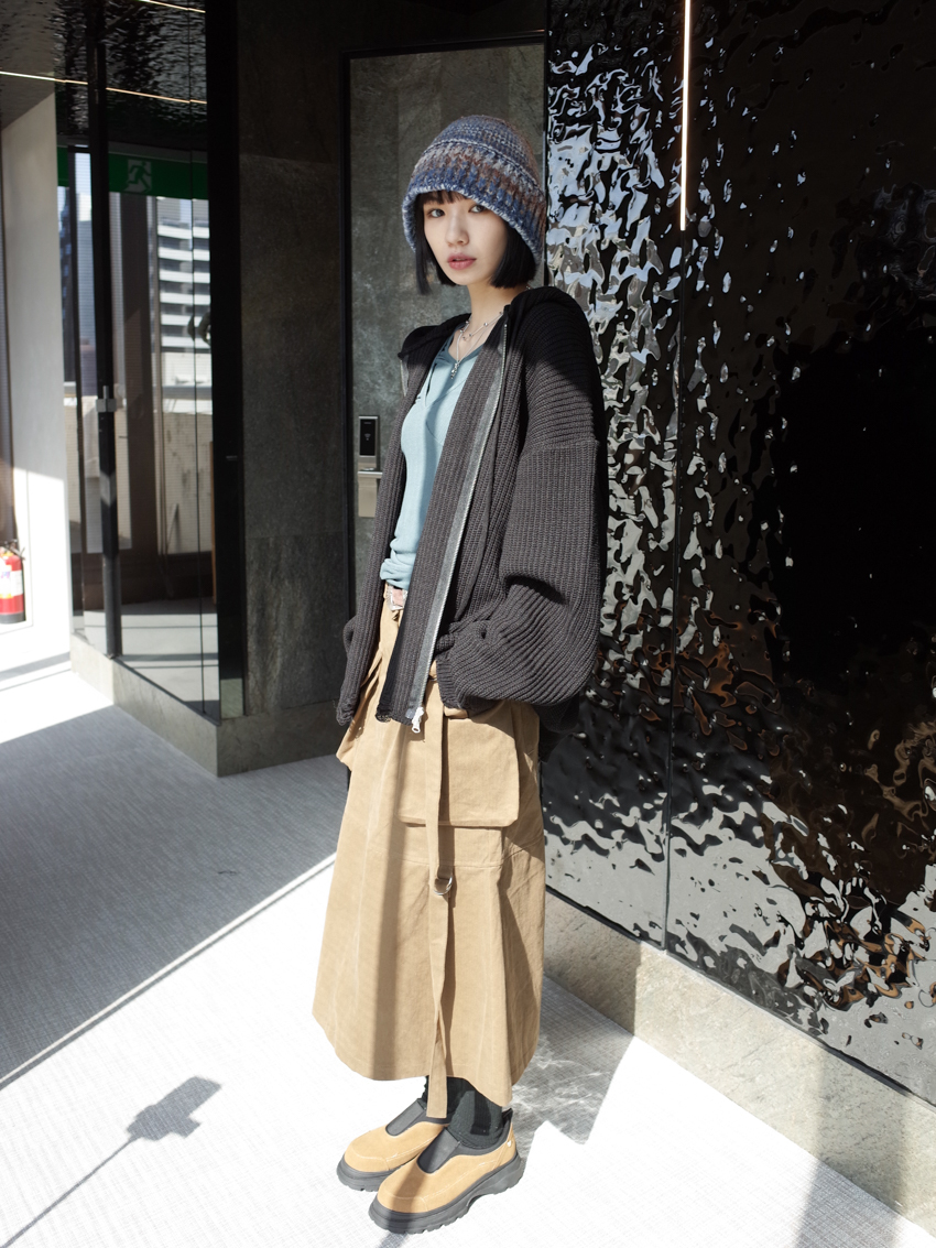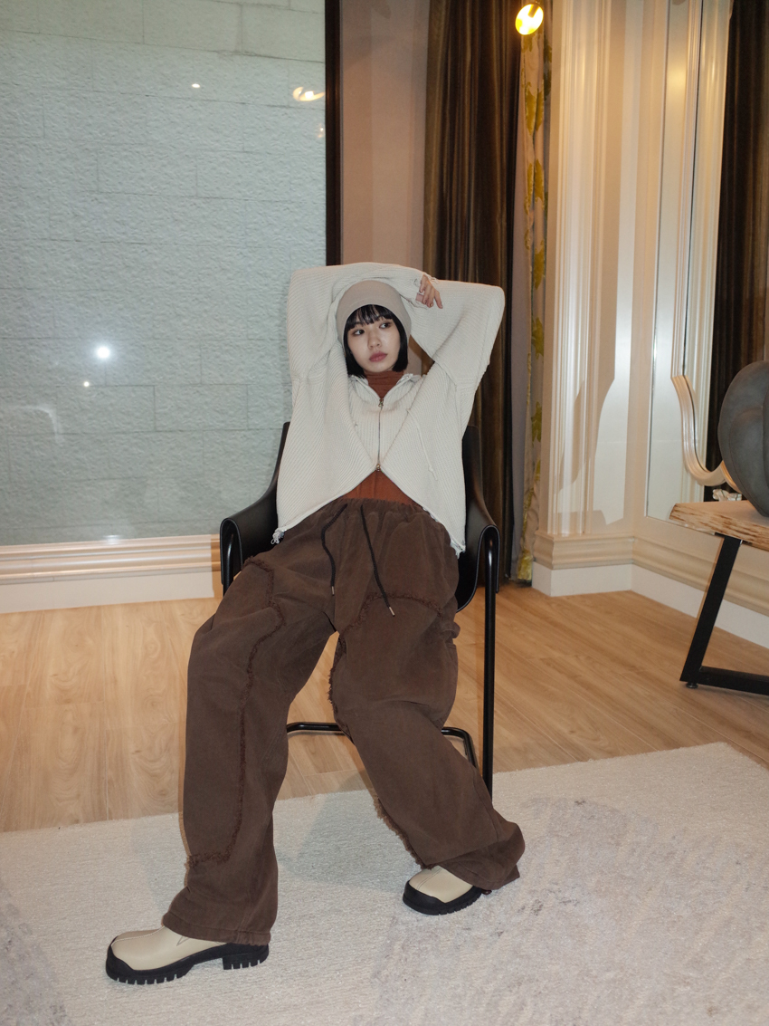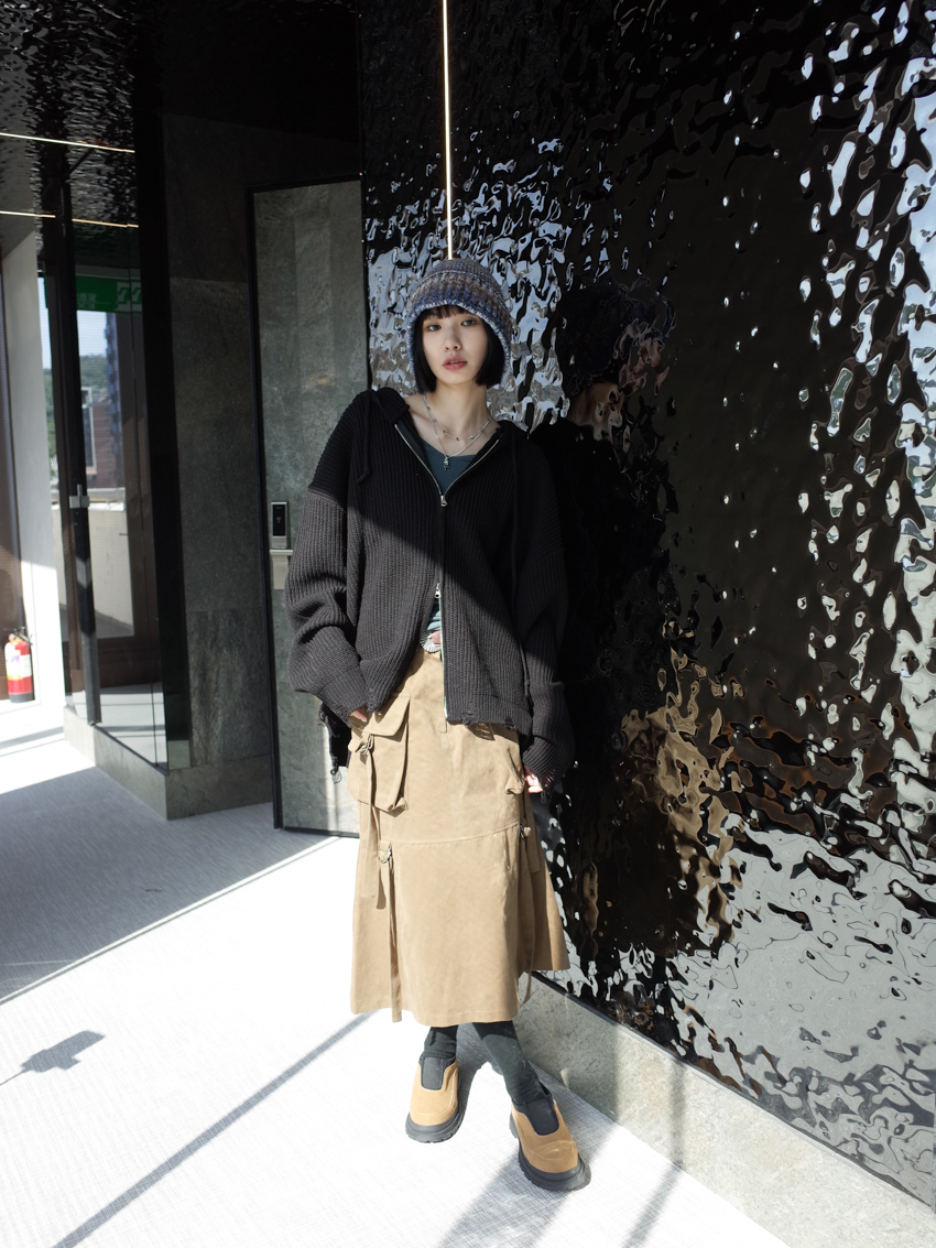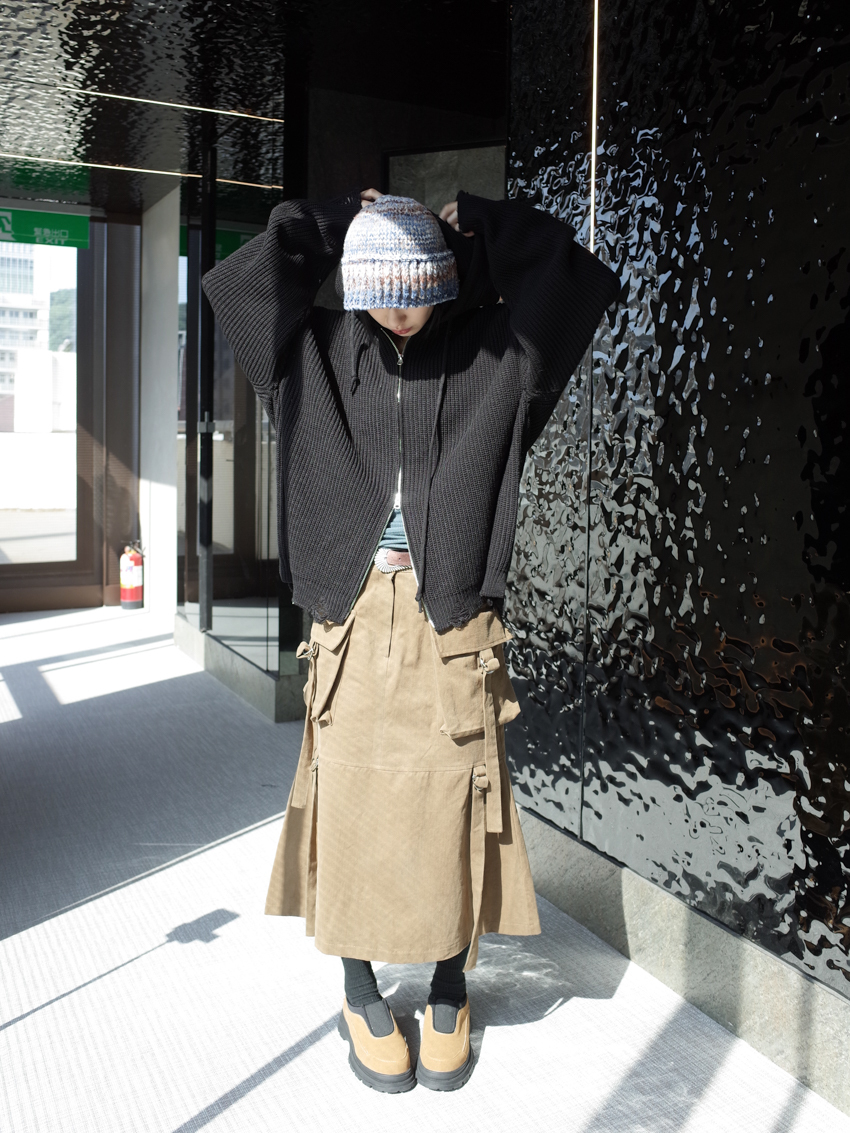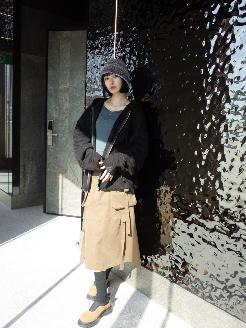 (UNISEX) Finnick double-zip hooded ripped knit jacket