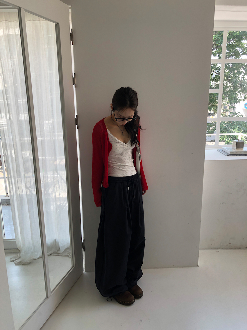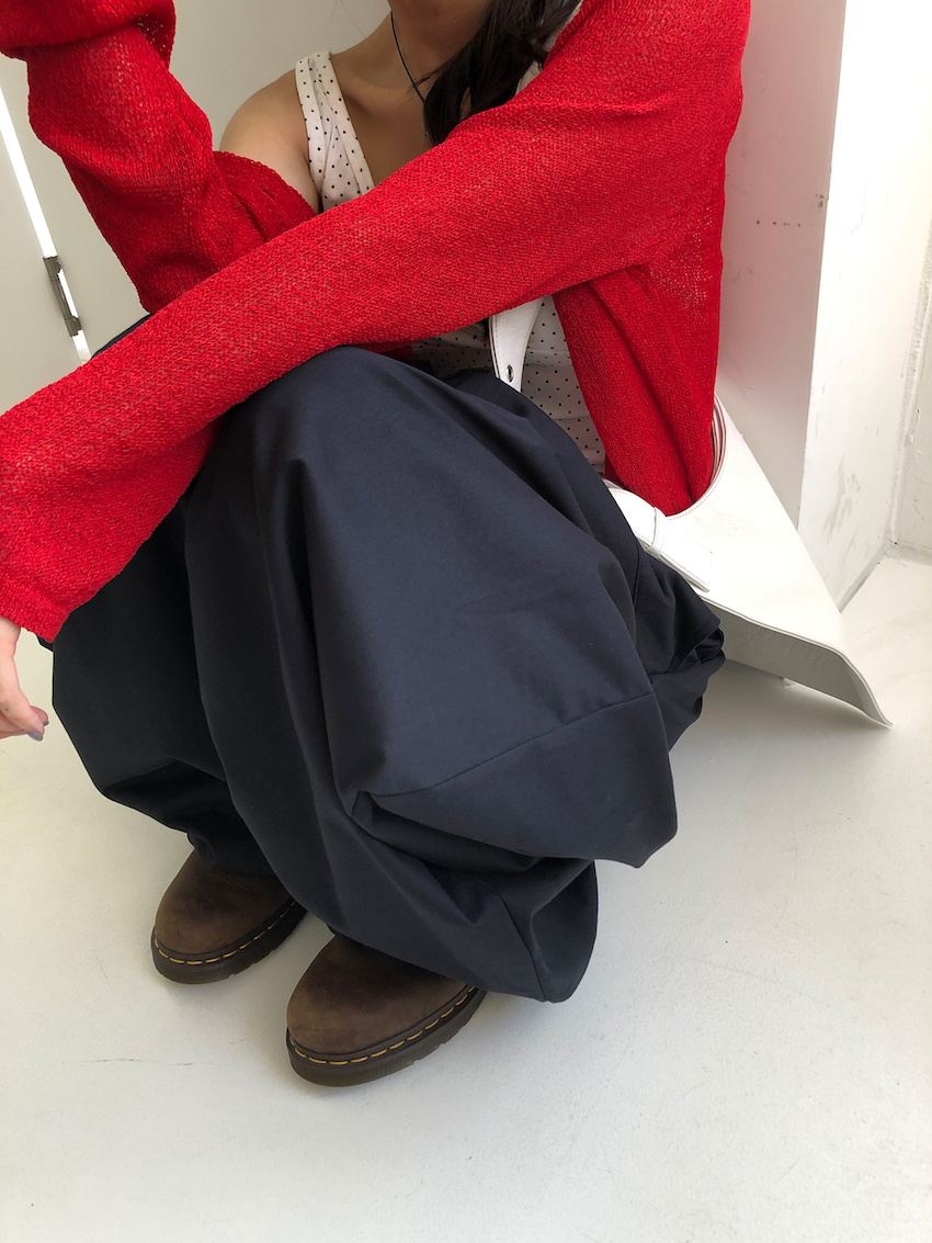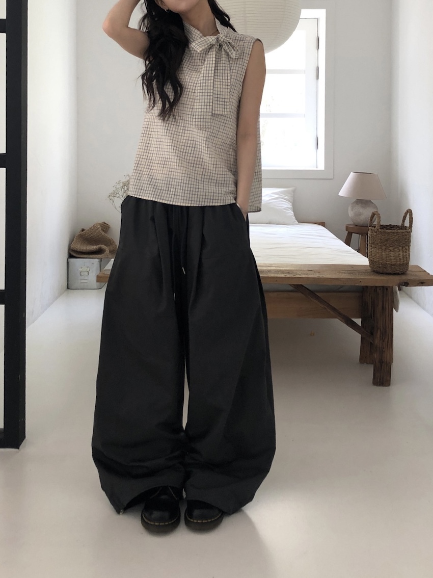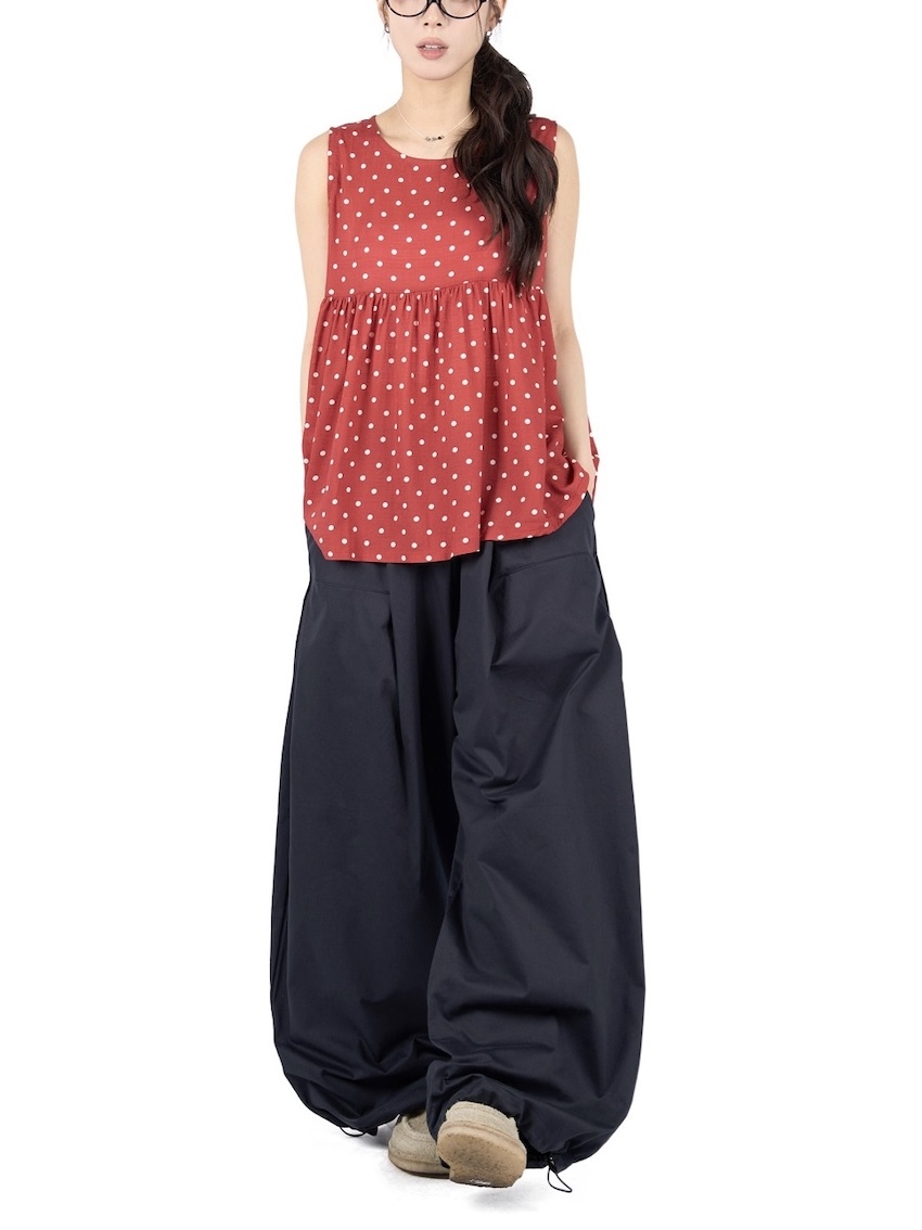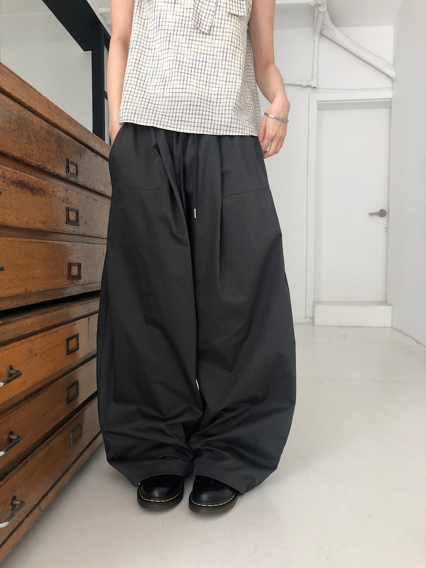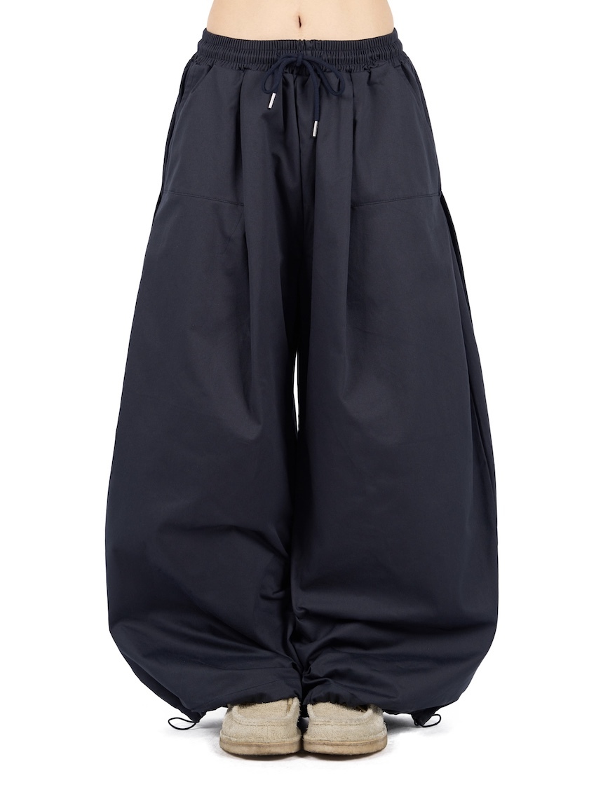 (UNISEX) relaxed-fit cotton trousers with side buttons and elastic waist in CHARCOAL/NAVY
