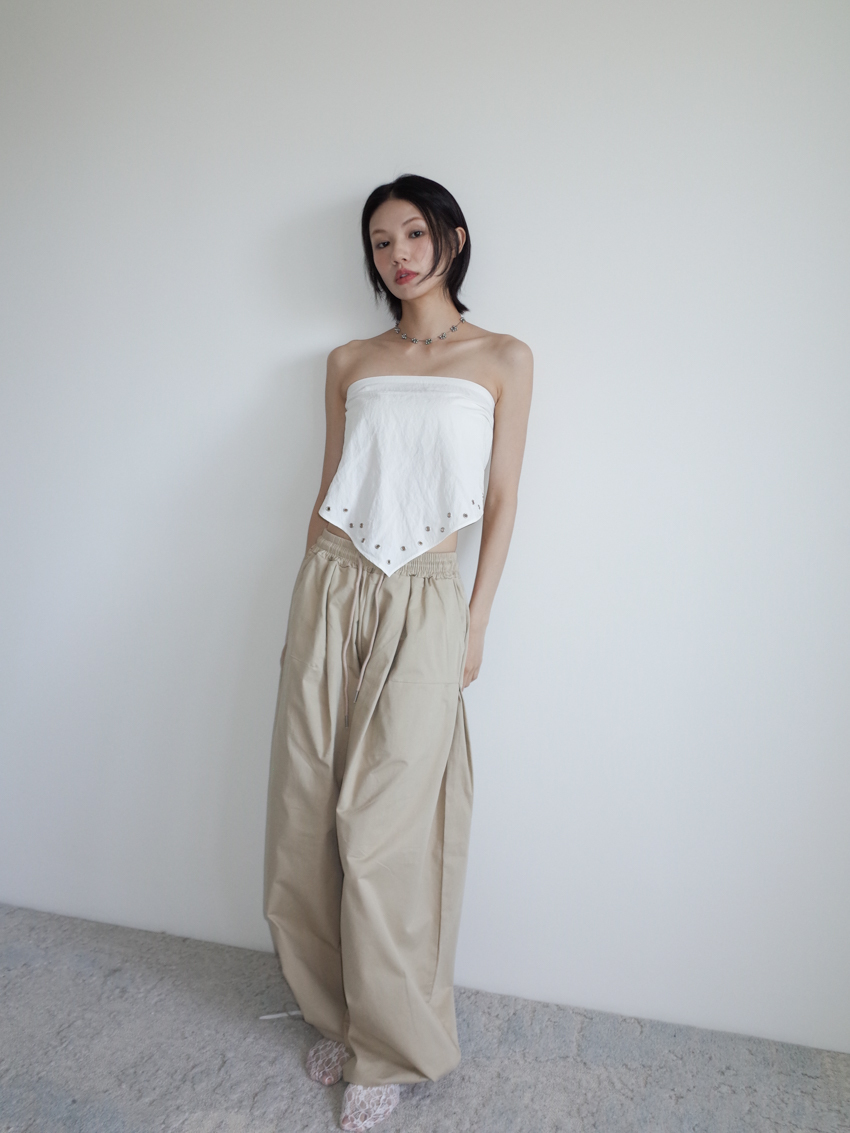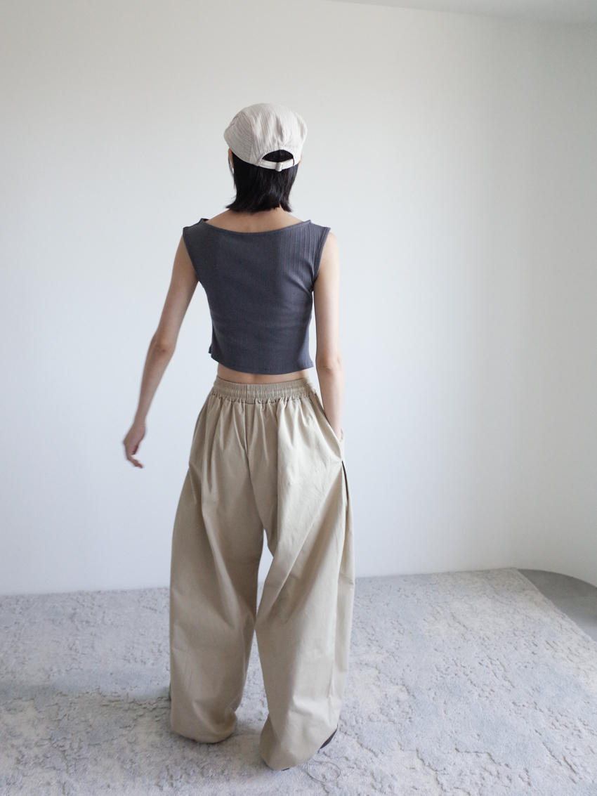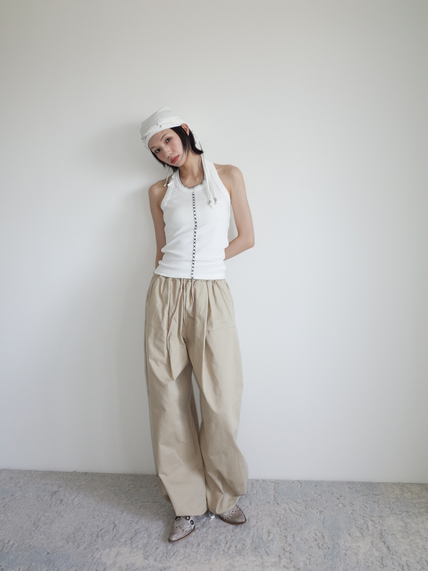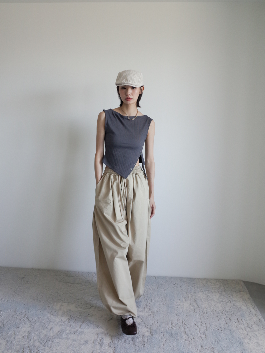 (UNISEX) relaxed-fit cotton trousers with side buttons and elastic waist in BEIGE