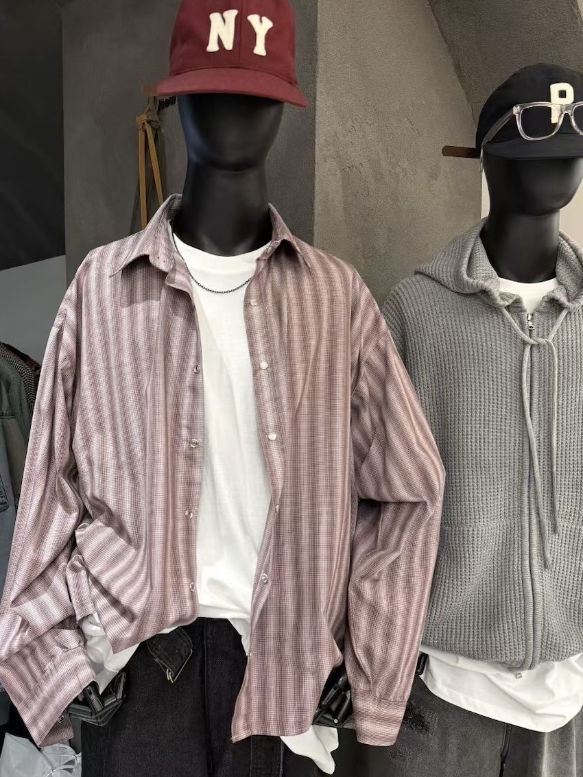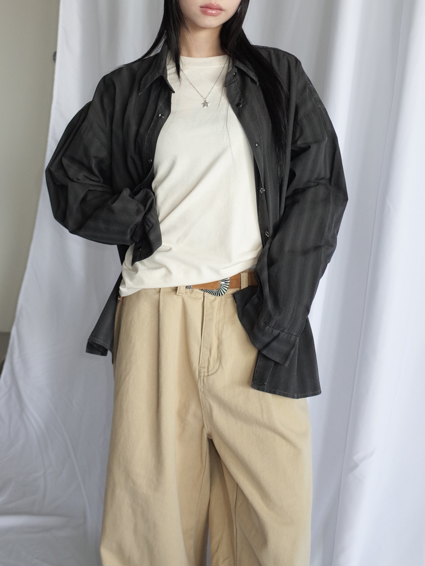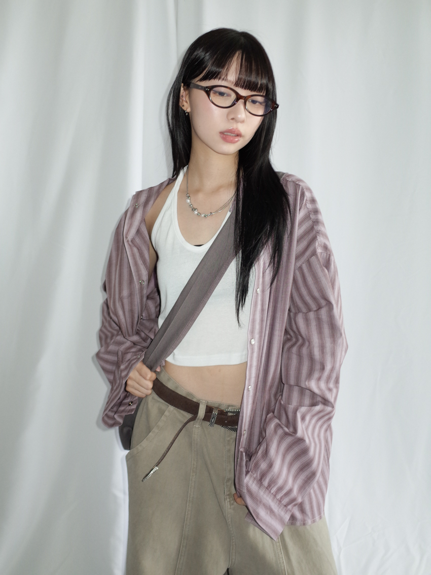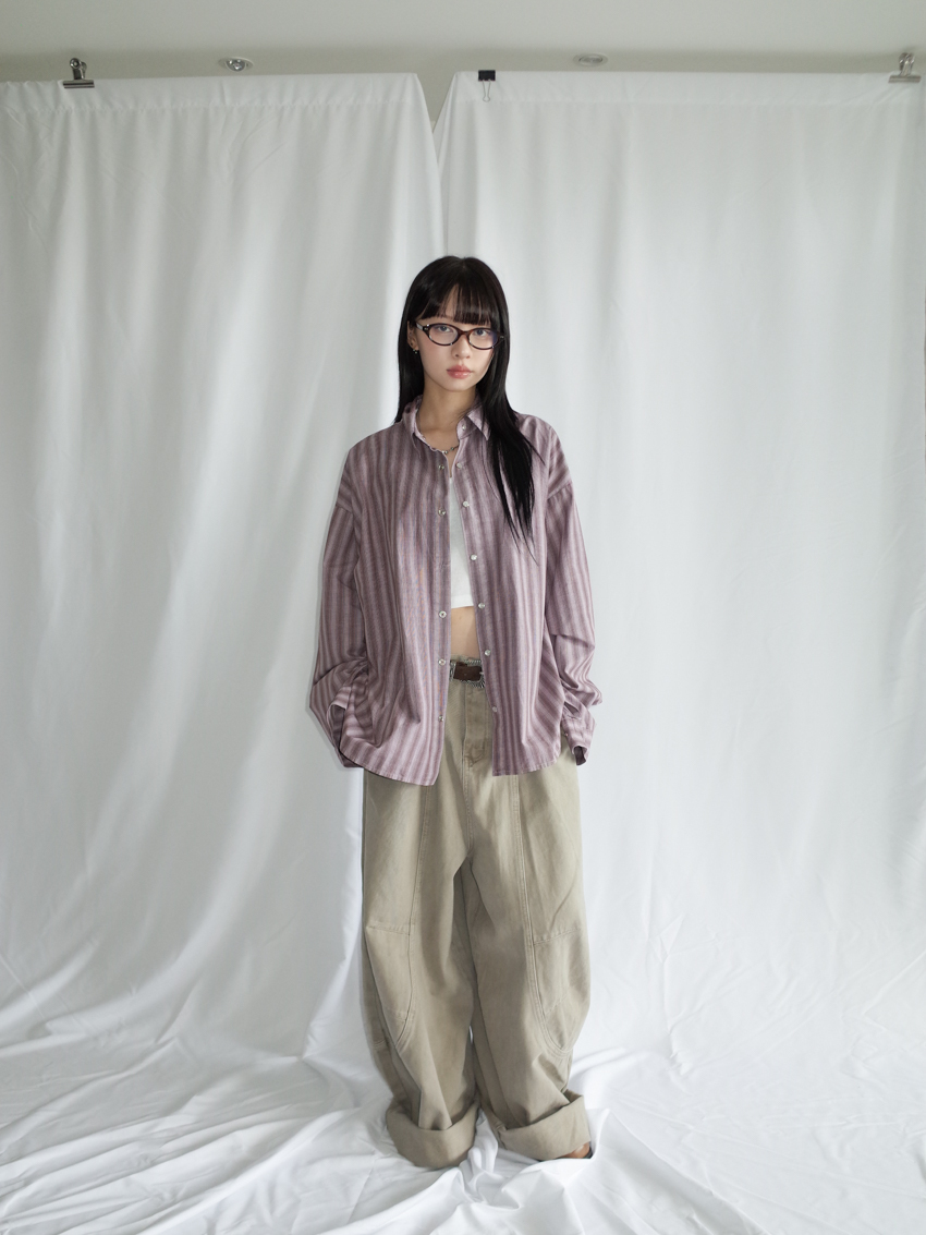 (UNISEX) structured brushed pinstripe check shirt