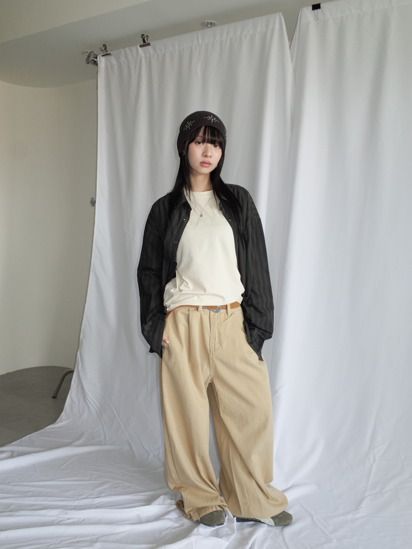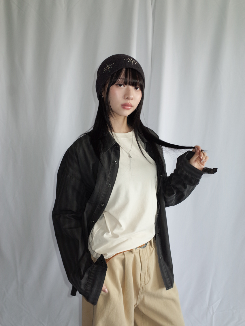 此款因製作過程中先上洗標才染色,因此黑色的洗標看不太清楚字