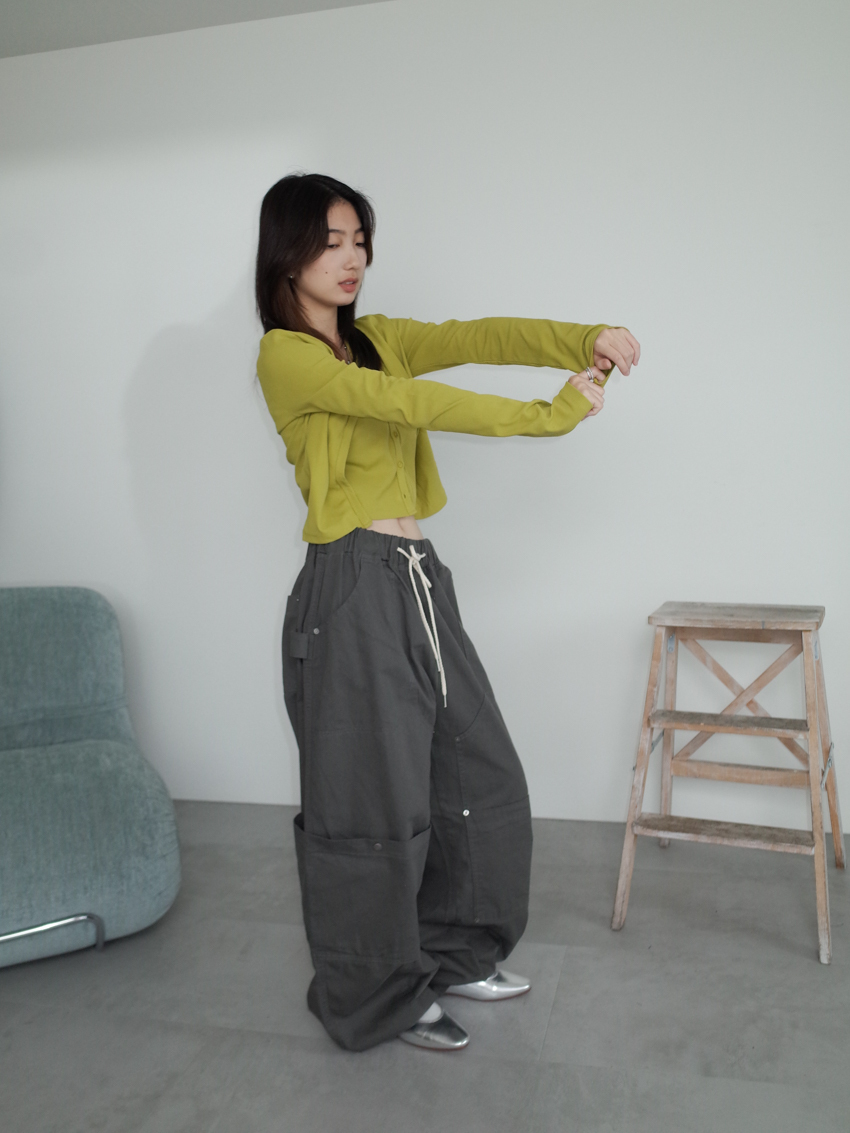 (UNISEX) utility cinch cargo trousers in CHARCOAL